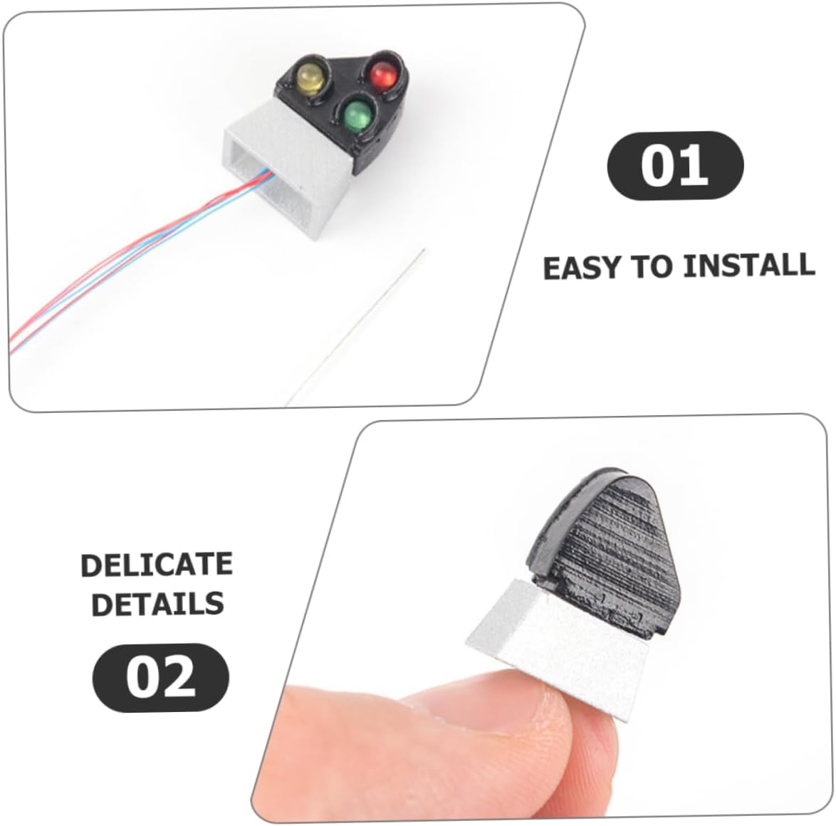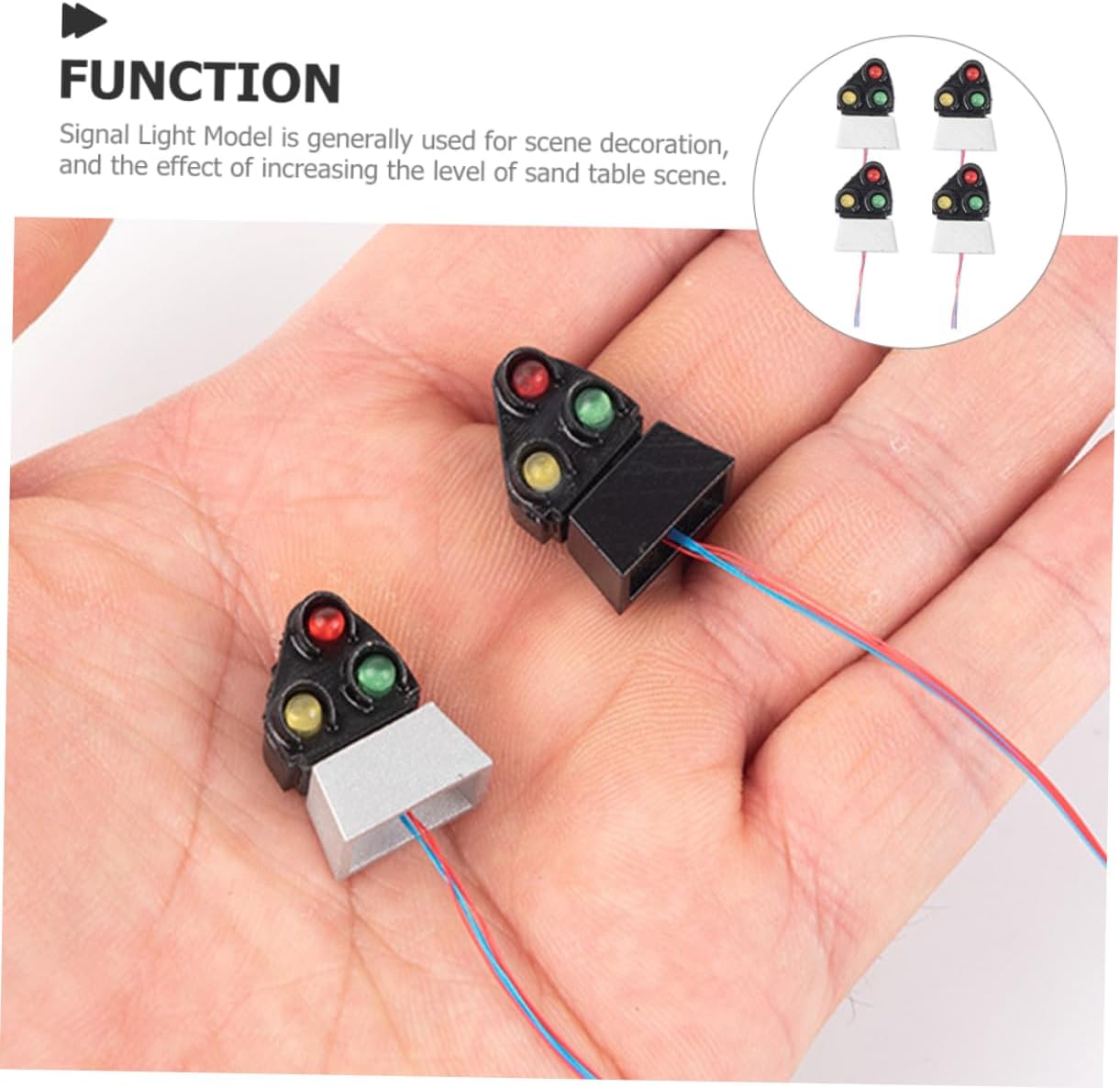 Decoro semaforico: ai dettagli: le luci di segnalazione del treno sono realizzate per essere altamente realistiche e precise. Tavolo da sabbia per bambini: display: le dimensioni in miniatura semplificano la visualizzazione delle luci in una varietà di ambienti. Lampada decorativa da tavolo color sabbia: costruita per durare, ogni luce è realizzata in abs e materiali in acciaio inossidabile per la massima durata. Decorazioni per semafori piccoli: ampie opzioni: 4 pezzi/set consentono flessibilità nel posizionamento delle luci nel modello. Mini fornitura domestica: presenta dimensioni compatte per l'uso del tavolo da sabbia. aggiungi calore e atmosfera di quotidiana.