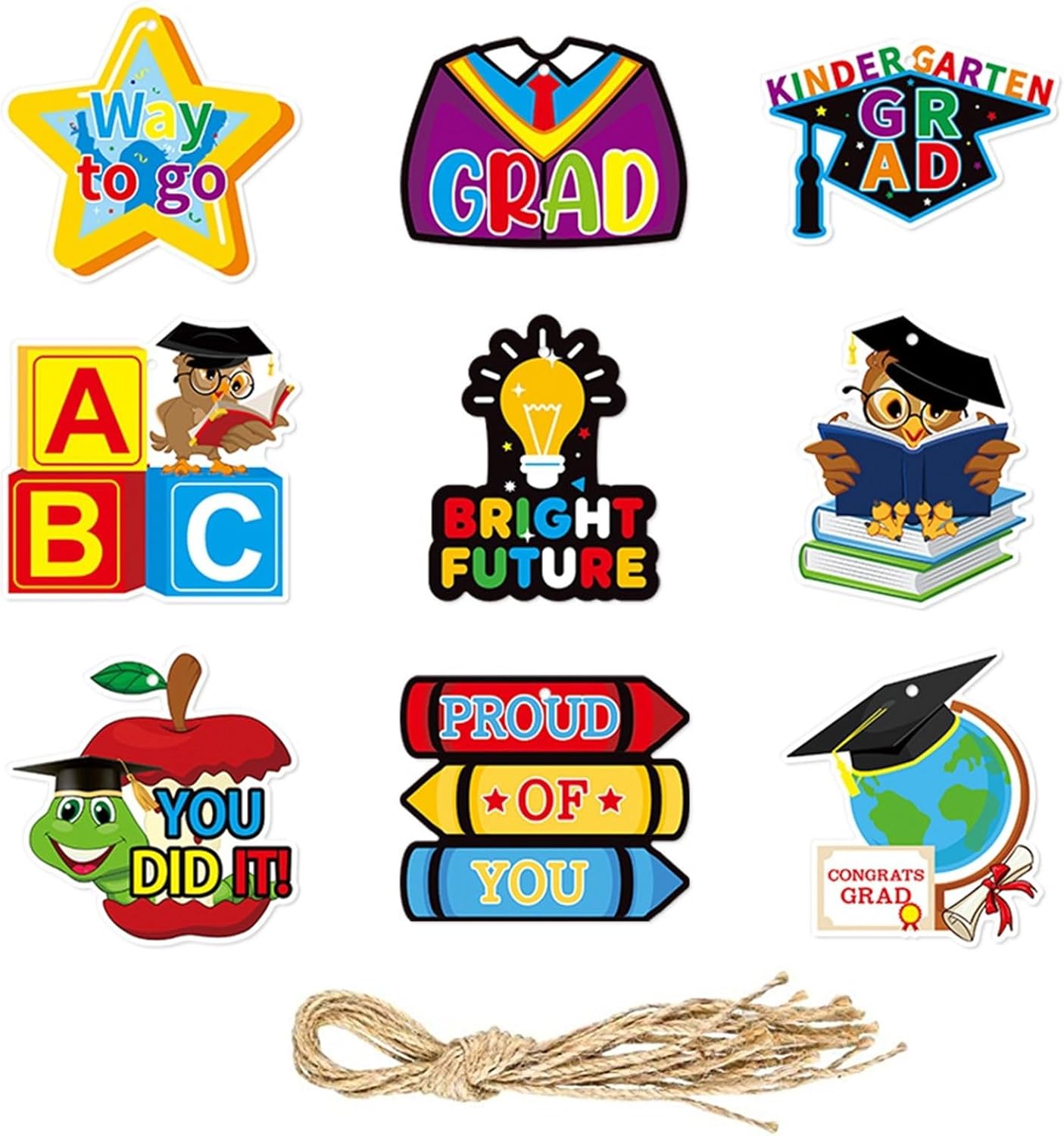Materiali, borse di laurea prescolare sono realizzati con materiali, è pieno di durata. Stampa chiara il colore è ricco e non sbiadisce facilmente la borsa di laurea prescolare con corda, facile da appendere. Ampia applicazione, le etichette per borse di laurea prescolare si applicano nelle feste di laurea in età prescolare all'asilo, classe per bambini di cerimonia scolastica 2025, attività di laurea prescolare, lasciando ricordi memorabili di laurea prescolare per i tuoi bambini, rendendo i tuoi bambini pienamente godere della felicità della festa La confezione include 9 cartellini per borsa di laurea prescolare Meraviglioso, dolce e caldo per amici, familiari e te stesso.