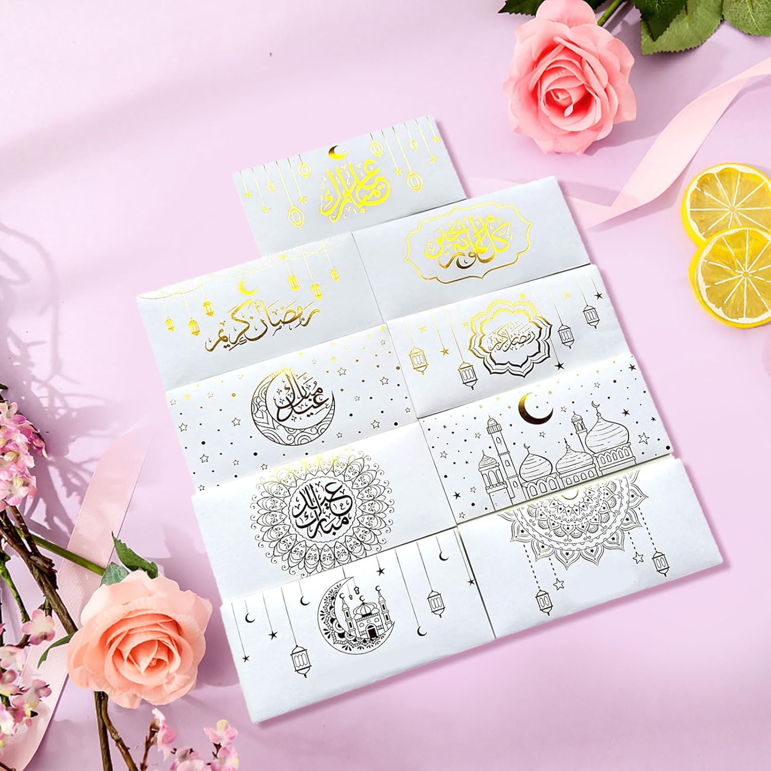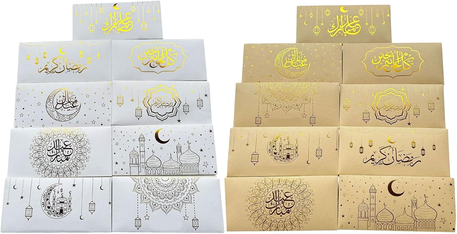 Migliora i tuoi doni con le nostre buste per festival eid, presenta lamine d'oro artigianali che migliorano la loro sensazione di lusso e lo rendono per la celebrazione dei musulmani come ramadan e festival eid. Realizzate in carta krafts, queste buste assicurano che resistano alle prove del tempo soddisfacendo tutte le tue esigenze di archiviazione. Adatte per gli appassionati di moda, professionisti del business, queste buste riflettono stili individuali e raffinatezza, rendendole un accessorio essenziale per ogni occasione. Perfettamente adatte per spostamenti quotidiani, riunioni di lavoro o shopping casual, queste buste consentono di mostrare eleganza e fascino senza sforzo in vari ambienti. Aggiungi un tocco di eleganza ai tuoi preparativi per feste con questi accessori per feste, design per completare qualsiasi stile di decorazione.