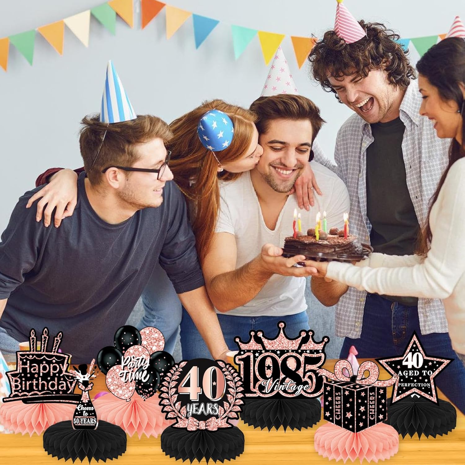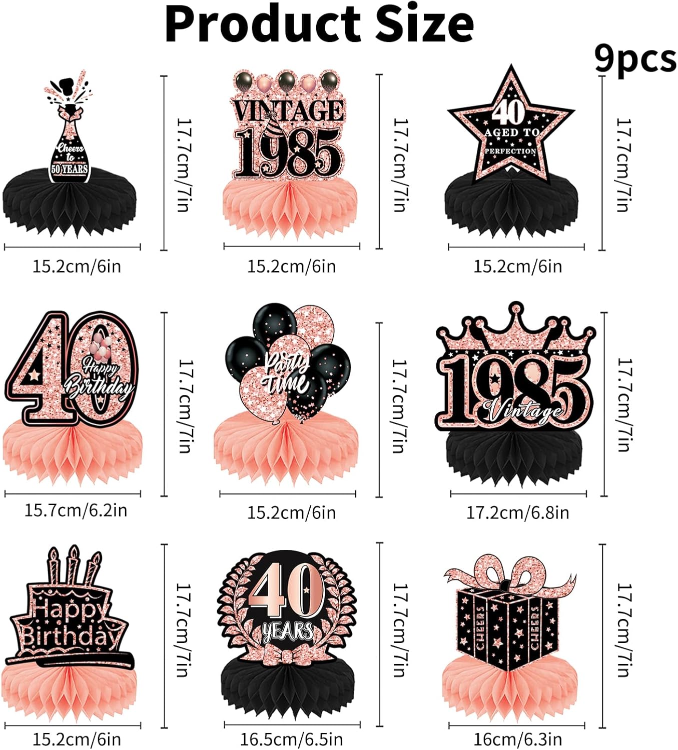 Materiale di qualità: i centrotavola per il 40° compleanno sono realizzati in cartone di alta qualità, atossico e inodore, sicuro ed ecologico, di alta qualità e spesso, robusto e durevole e può essere utilizzato con fiducia. Design squisito: i centrotavola a nido d'ape per il 40° compleanno adottano un design con stampa fronte/retro ad alta definizione, con motivi squisiti e chiari, colori vivaci e lucidi che non sbiadiscono facilmente. Questo esprime chiaramente che sono progettati specificamente per celebrare il 40 ° compleanno di qualcuno nato nel 1985. Contenuto della confezione: le forniture per la decorazione della festa di compleanno di 40 anni includono 9 diversi modelli di decorazioni a nido d'ape composte da oro nero e rosa, come champagne, torta di compleanno, confezione regalo, stelle, palloncini, corone, ecc. Questi disegni lucidi aggiungeranno un'atmosfera forte alla festa di compleanno e lasceranno un'impressione profonda. Facile da usare: ogni base decorativa a nido d'ape viene fornita con un adesivo, basta staccare l'adesivo e attaccarlo all'area fissa su un lato della carta, quindi espandere la palla a nido d'ape e infine attaccarla sull'altro lato del biglietto per ottenere una graziosa decorazione a nido d'ape, che è molto semplice e portatile. Decorazione di compleanno: il centrotavola a nido d'ape in oro rosa nero è un perfetto articolo decorativo per feste a tema compleanno, perfetto per decorare tavoli da pranzo, pareti, soffitti, torte, ecc., aggiungendo un'atmosfera gioiosa, adatto sia per uomini che per donne.