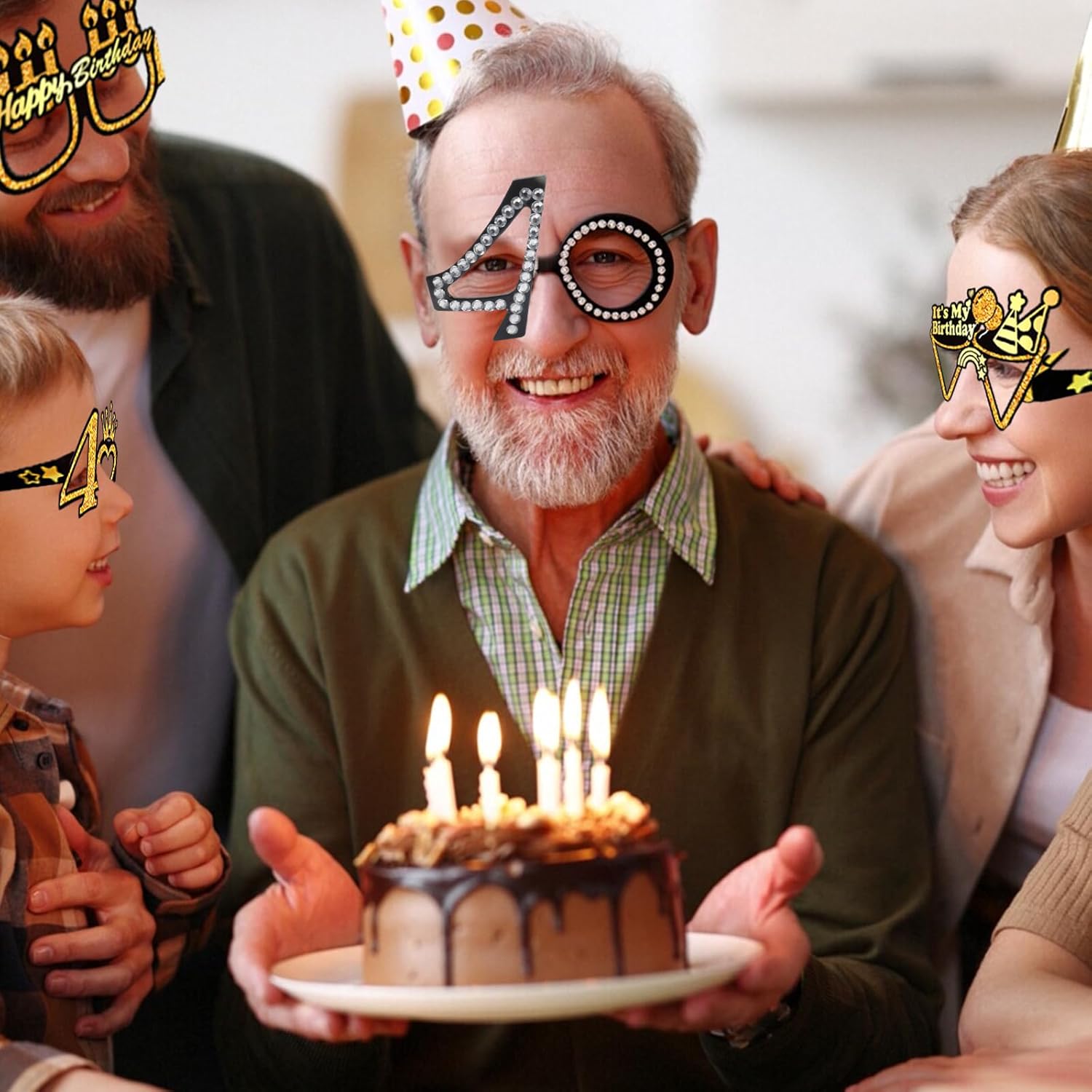 [Contenuto della confezione] Riceverai occhiali festa 8 bicchieri di carta e 1 bicchiere digitale a forma di diamante, che porteranno calore e gioia alla tua festa di compleanno [Qualità Premium] Occhiali compleanno realizzati in cartone di alta qualità, sono leggeri, resistenti, impermeabili e riutilizzabili. Il motivo è trasparente e non sbiadisce facilmente [Design Funzionale] Occhiali festa compleanno l'accattivante design a forma di diamante lo rende un perfetto oggetto fotografico. Le pose che assumerai con questo prodotto creeranno foto straordinarie [Creativo e Raffinato]Occhiali festa questi motivi creativi renderanno la tua festa ancora più memorabile [Applicazioni] Occhiali festa ideali per riunioni di famiglia, ritrovi con gli amici, ritratti personali e riunioni di famiglia