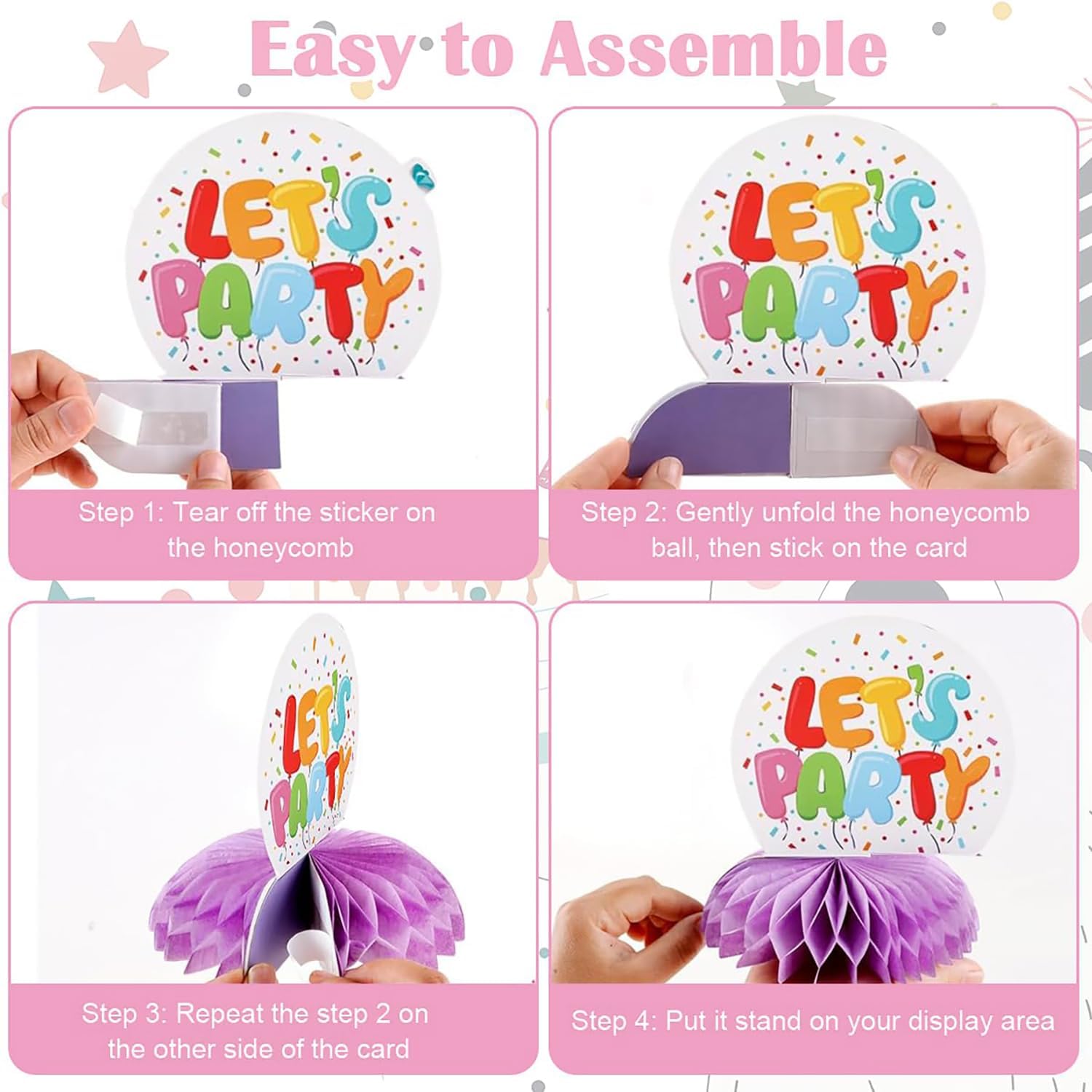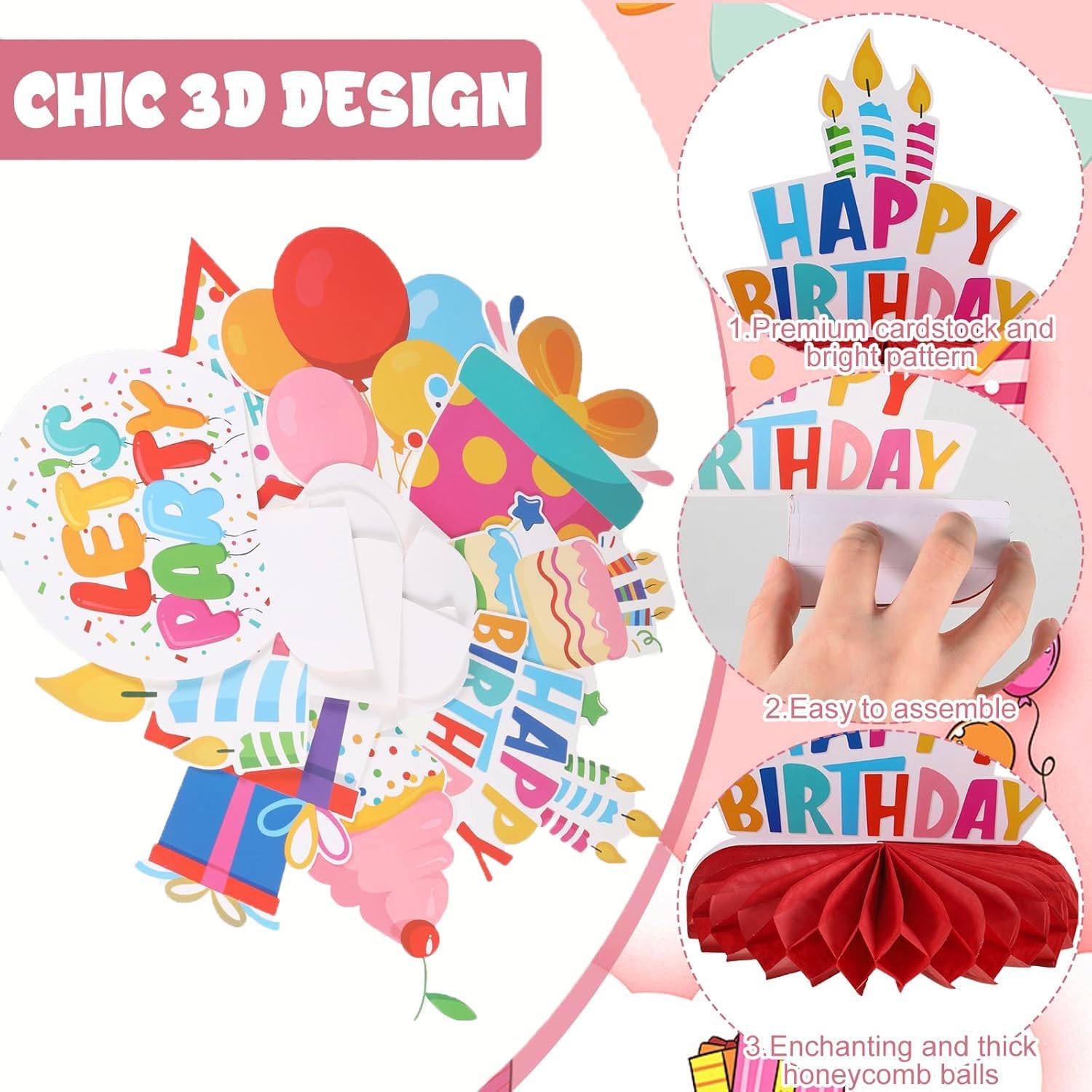 【Materiali di alta qualità】 Realizzato in cartone di alta qualità, resistente e con superficie lucida. Le basi dei centrotavola a nido d'ape sono realizzate in carta leggera finemente strutturata che si apre e crea un effetto tridimensionale, contribuendo alla stabilità complessiva. 【Facile da assemblare】 Basta staccare gli adesivi dalle sfere a nido d'ape e incollarle insieme per formare un nido d'ape. Molto facile da usare. Potete trovare i passaggi esatti nella nostra tabella dettagliata. I nostri centrotavola per la festa di laurea non sono solo decorativi, ma anche colorati e festosi. 【Design unico di saldatura 3D】La decorazione da tavola per il compleanno dei ragazzi è il punto forte di questa serie. Il suo design realistico e l'effetto tridimensionale la rendono una decorazione accattivante nell'ambiente della festa e aggiungono un fascino unico al vostro display da tavolo. 【Pacchetto incluso】 Riceverete 9 pezzi di decorazioni di compleanno in diversi design, che possono aggiungere diverse esperienze ed effetti alla vostra festa. Include elementi iconici del compleanno come candele, torte, palloncini, scritte 'HAPPY BIRTHDAY' e altro ancora. 【Un'ampia gamma di applicazioni】La decorazione da tavolo a nido d'ape è versatile e si adatta alle esigenze di qualsiasi gruppo di età. La decorazione da tavolo a nido d'ape è utilizzata per feste di compleanno, baby shower, feste di classe, feste di canto, decorazioni per feste di laurea e così via.
