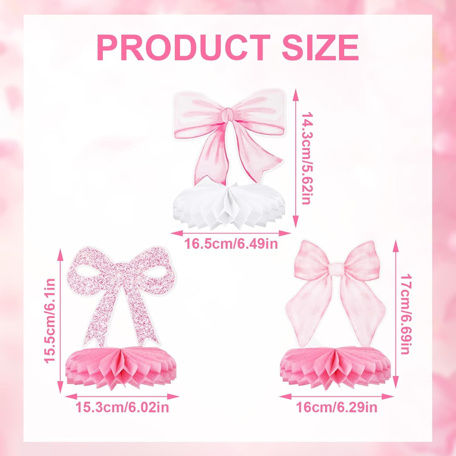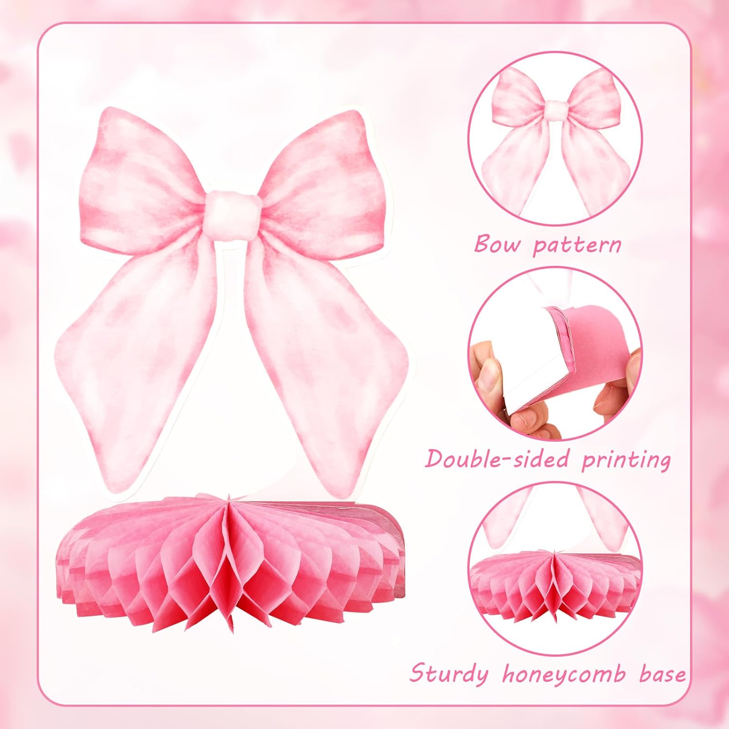 Contenuto del pacchetto: otterrai 9 pezzi di decorazioni di compleanno in prua e 9 pezzi di basi per gli usi e la sostituzione quotidiani.Puoi combinare liberamente questi archi a causa delle tue preferenze. Materiale premium: le decorazioni a sospensione di prua rosa sono realizzate in carta premium, che è duratura e riutilizzabile.Non facile da rompere o sbiadire, puoi mantenerlo bene per prolungare la vita di servizio. Ampia applicazione: queste decorazioni appese a prua rosa sono molto facili da decorare ovunque.Saranno belle decorazioni per docce nuziali, docce per matrimoni, feste di fidanzamento, ecc.Sono anche comunemente usati come feste di addio al nubilato. Design speciale: le decorazioni per feste di prua con robusta base a nido d'ape sono progettate in motivi a prua e stampa a doppia faccia.Sembra molto elegante e speciale. Come usare: 1. Strappare l'adesivo della palla a nido d'ape.2. Attaccare la palla a nido d'ape sull'area fissa sulla carta.3. Tira su 180 gradi e ripeti dall'altra parte della carta.4. Posizionalo sul tavolo.