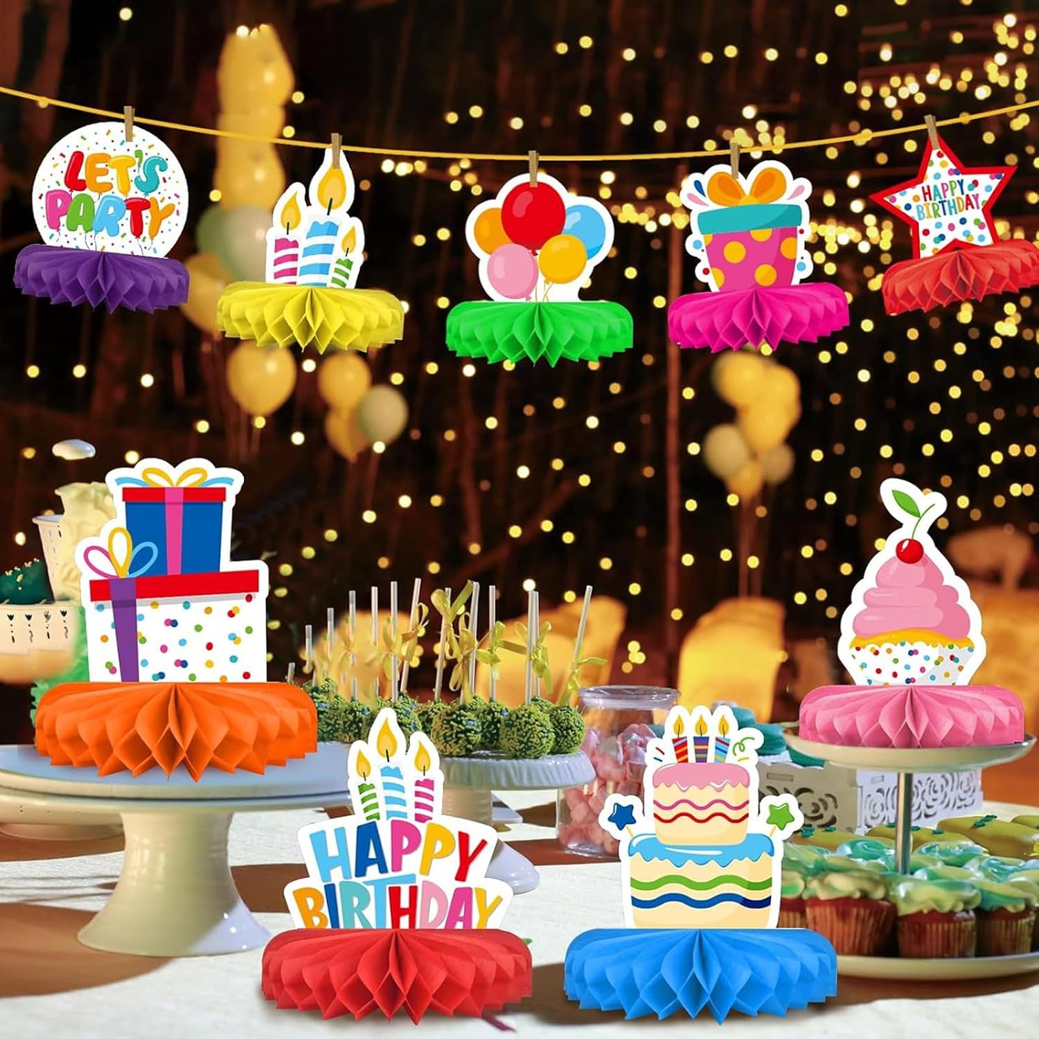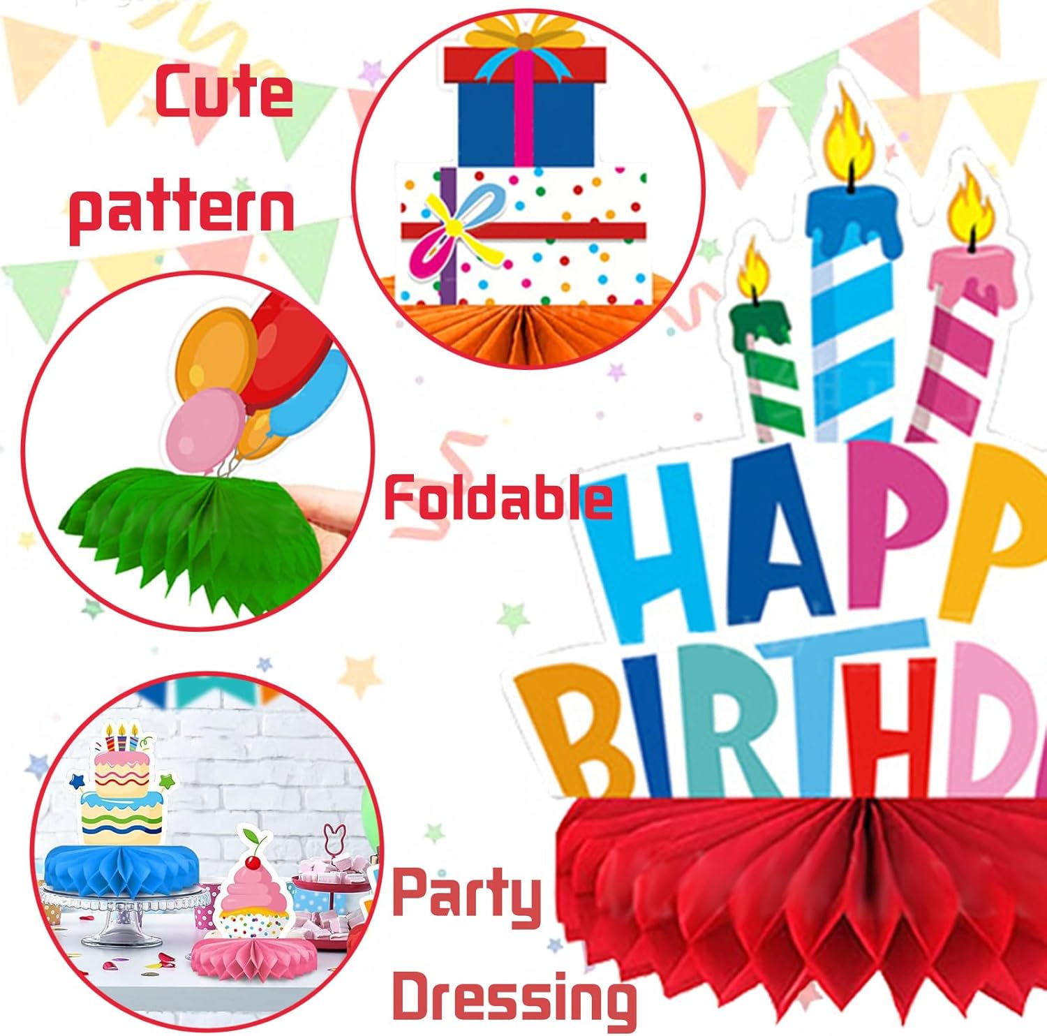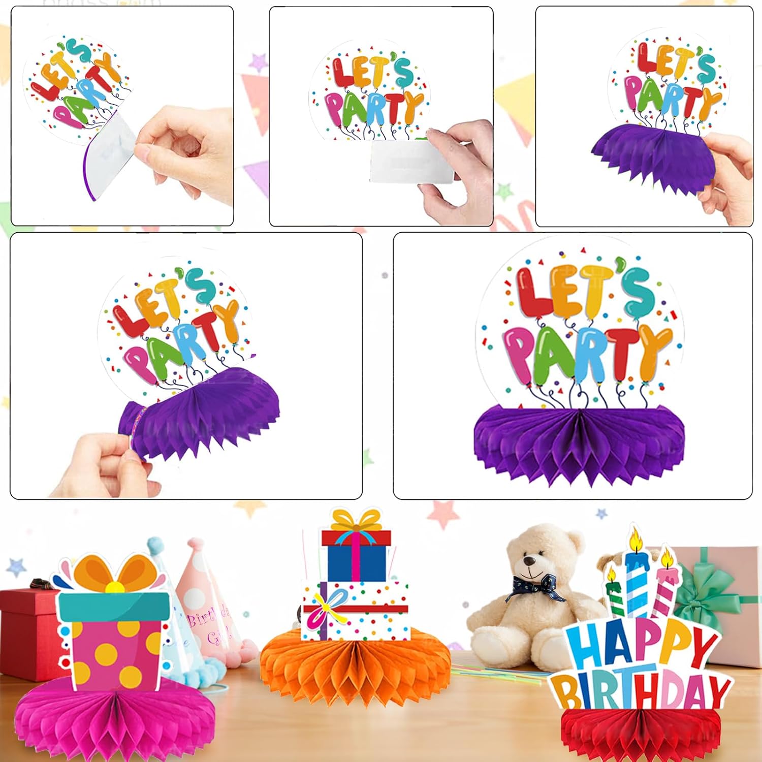 【Cosa Ottieni】Riceverai 9 pezzi di decorazioni per il compleanno in diversi design, che possono aggiungere esperienze ed effetti diversi alla tua festa. Contiene elementi iconici del compleanno come candeline, stelle, torte, palloncini, parole "HAPPY BIRTHDAY" e molto altro, perfetti per decorare la tua festa di compleanno e ideali per creare un'atmosfera di compleanno a tema 【Materiali di Alta Qualità】Questi centrotavola a nido d'ape sono realizzati in carta di alta qualità, e ogni decorazione a nido d'ape è realizzata con cura per garantire che i colori siano duraturi, lisci, durevoli e resistenti allo sbiadimento, adatti a molteplici usi e sempre freschi e nuovi 【Facile da Montare】Il set di decorazione centrotavola compleanno più facile da montare, basta incollare il nido d'ape e attaccarlo sul biglietto di compleanno, quindi strappare l'adesivo della sfera a nido d'ape e attaccarlo a un'area fissa su un lato del biglietto, quindi espandere la palla a nido d'ape, una bella decorazione da tavolo per feste di compleanno è terminata e puoi posizionarli ovunque tu voglia decorare 【Design Stampato su Entrambi i lati】 le nostre decorazioni per tavolo 3D a nido d'ape sono stampate su entrambi i lati, con stampa trasparente su entrambi i lati, garantendo che ogni decorazione aggiungerà fascino alle tue decorazioni di compleanno. Renderanno sicuramente le tue decorazioni di buon compleanno più eccitanti 【Ampie Applicazioni】I nostri topper da tavolo per il compleanno assicurano che la tua festa sia piena di colore e gioia, adatti a tutti i tipi di feste a tema compleanno, celebrazioni di anniversario, feste per bambini e così via. Da posizionare sul tavolo da pranzo, sul tavolino da caffè, sugli armadi, ma sono adatti anche per i vostri accessori e decorazioni per feste a tema