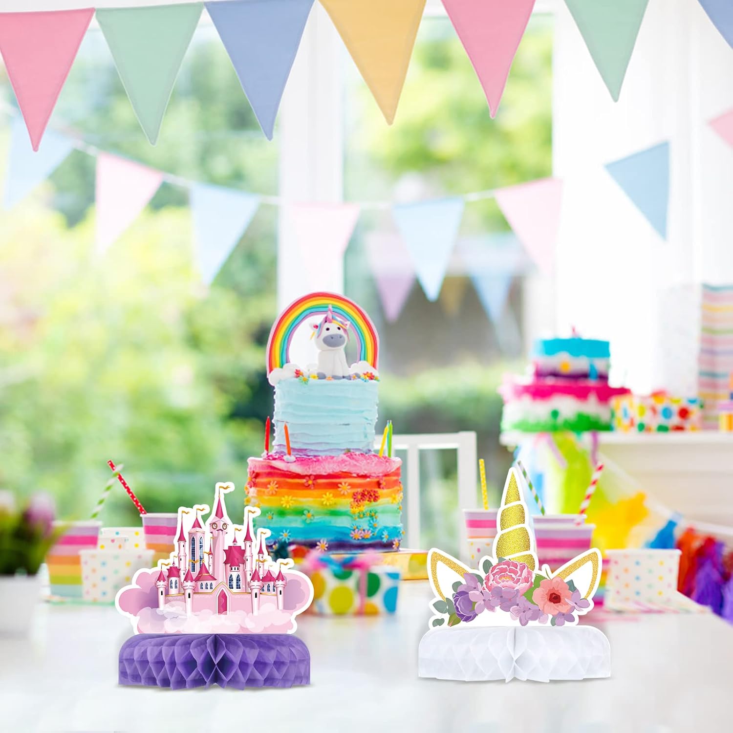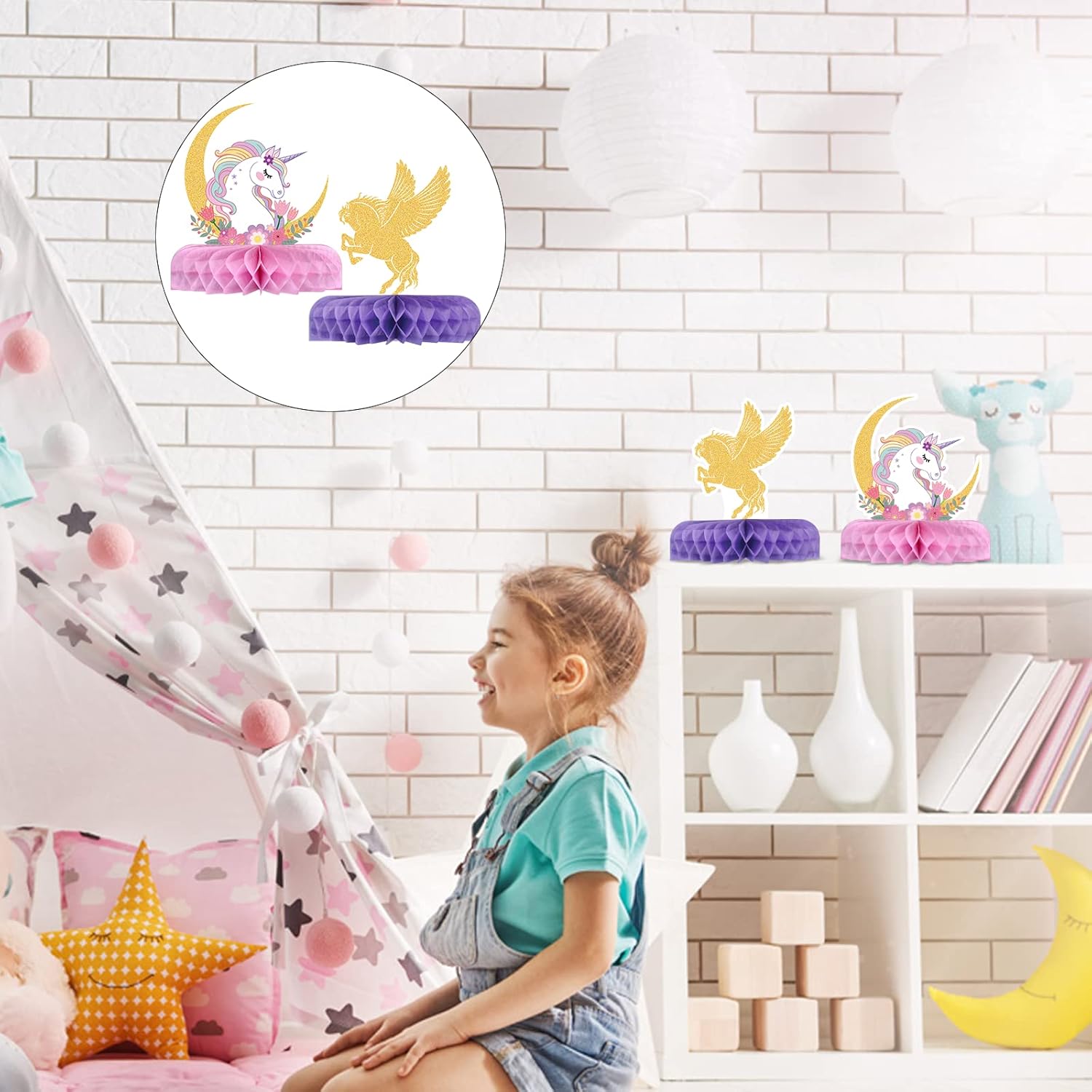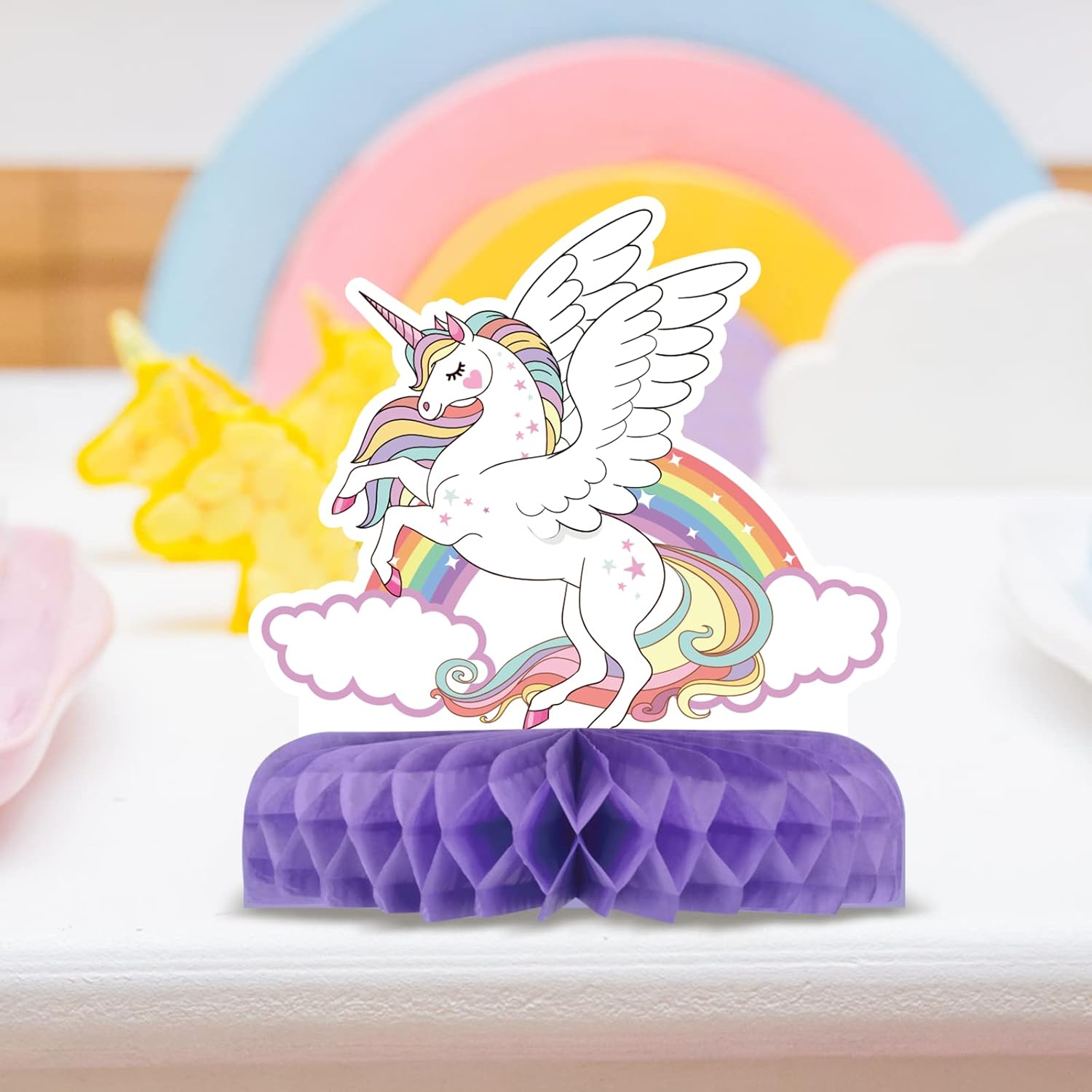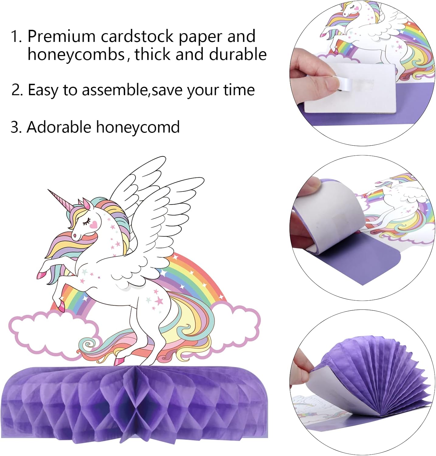 Set di decorazioni da tavolo con unicorno: riceverai 9 biglietti di carta con unicorno e 18 pezzi a nido d'ape (tra cui 6 bianchi, 6 viola, 6 rosa). Il design chic rende questo kit di decorazione da tavolo un'aggiunta impressionante alla festa a tema unicorno o alla festa di compleanno. Centrotavola a nido d'ape con unicorno 3D: decorazioni creative e innovative per la tavola, rendono il tuo tavolo per feste di compleanno con unicorno più sostanzioso e attraente quando esposto e ti offrono un effetto visivo di festa che i tuoi ospiti non possono metterlo giù! Sicuro e affidabile: questi centrotavola a nido d'ape con unicorno sono realizzati in carta di qualità, robusti, atossici e nessun odore strano, durevoli e riutilizzabili. Adottano una stampa digitale ad alta tecnologia che garantirà che i prodotti non sbiadiscano. Forniture per bomboniere a forma di unicorno: il centrotavola con unicorno squisitamente progettato con interessanti elementi unicorno e colori vivaci. Decora la tua casa e la tua festa con le nostre decorazioni a nido d'ape con unicorno, e sarà molto popolare alla tua festa di compleanno Facile da montare: ogni biglietto unicorno è stato indicato un'area per assemblare il nido d'ape, comodo da usare, è facile che puoi assemblare rapidamente queste forniture a nido d'ape e goderti il momento gioioso. Super facile per decorare la tua festa e risparmiare tempo.