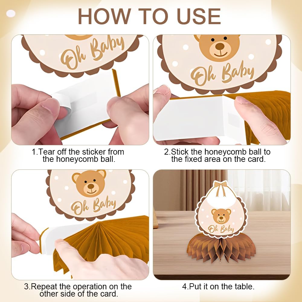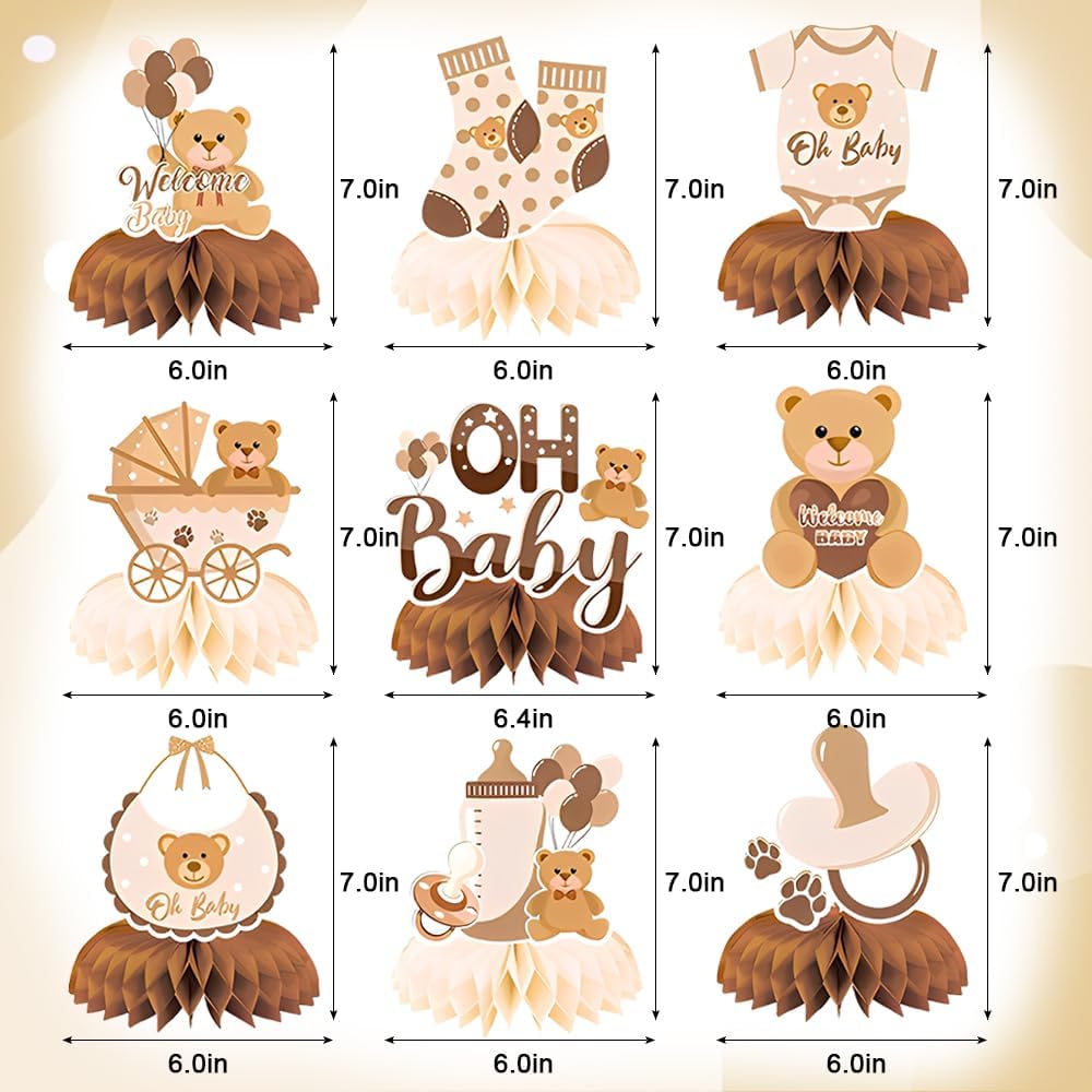 Contenuto della confezione: riceverete 9 decorazioni da tavolo con base a nido d'ape, perfette per decorare le feste per neonati e molto pratiche. Aggiungete atmosfera e divertimento alla vostra festa. Materiale: le nostre decorazioni da tavolo per compleanni sono realizzate in cartone spesso e sono molto belle da qualsiasi angolazione. Queste decorazioni da tavolo a nido d'ape aggiungono un tocco di colore a qualsiasi festa di compleanno e sono un must per le feste di compleanno. Design raffinato: ogni cartoncino decorativo ha un design diverso, tra cui orsacchiotti, biberon, arcobaleni e altri motivi. Ogni cartoncino contiene diversi elementi legati al battesimo, rendendoli decorazioni perfette per le feste di battesimo. Istruzioni per l'uso: le carte e le basi delle decorazioni da tavolo per feste di battesimo sono separate. Prendete una base e una carta, inserite prima la base a nido d'ape nella parte inferiore della carta, poi staccate l'adesivo su un lato della base a nido d'ape e incollatelo nella parte inferiore della carta, quindi incollate l'altro lato della base sulla carta. In questo modo avrete completato un set di decorazioni. Ampia applicazione: le decorazioni da tavolo a nido d'ape 3D sono adatte per decorare feste di compleanno, feste per neonati, feste di classe, concerti, feste di laurea e altre occasioni. Le decorazioni centrali a nido d'ape possono essere posizionate sul tavolo dei dolci, sul tavolo del buffet, sul tavolo dei regali e in altri luoghi.