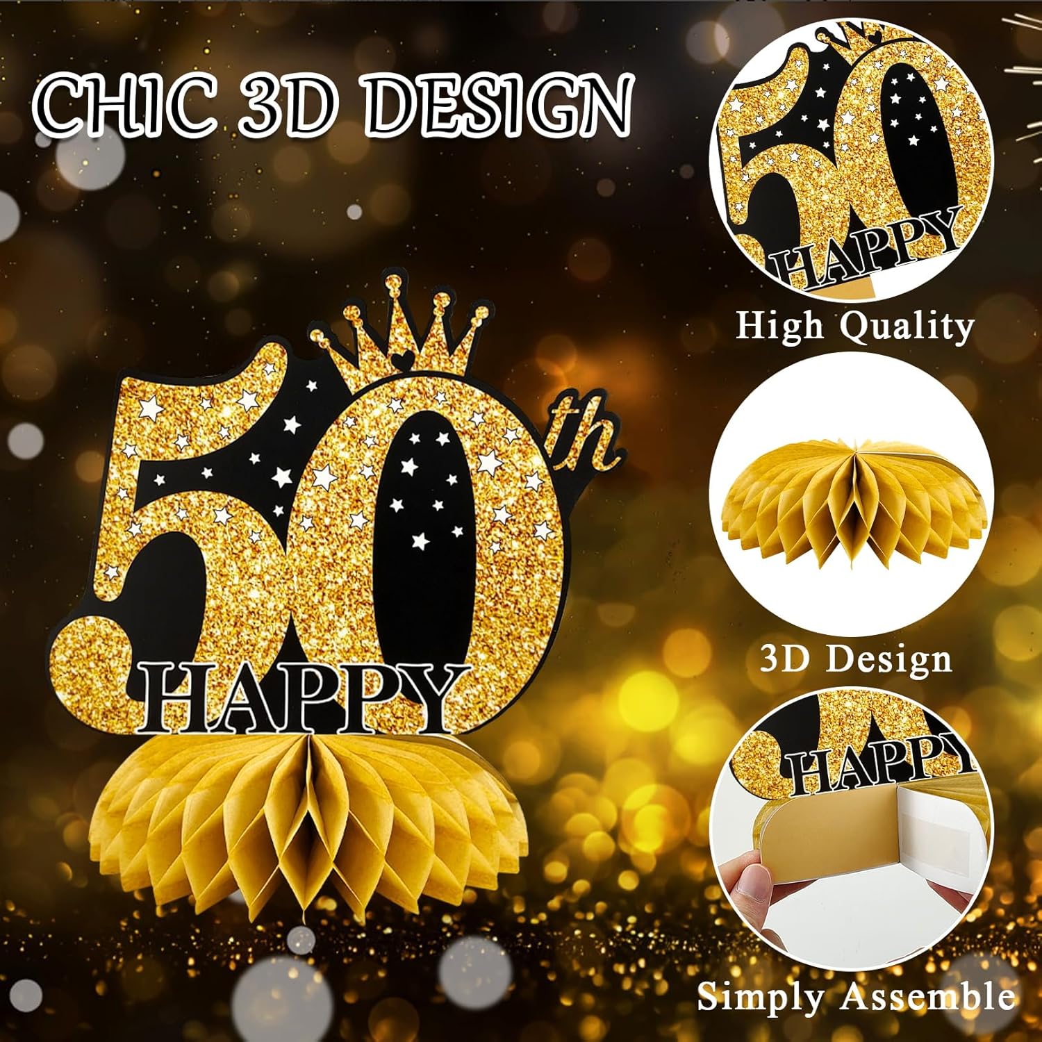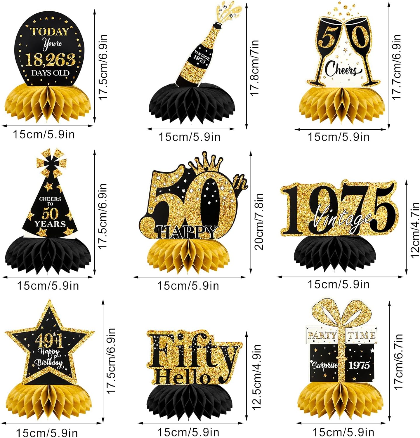 【Contenuto della confezione】: Riceverai 9 decorazioni a nido d'ape. Colori vivaci e bellissimi motivi rendono la tua festa di compleanno più attraente e aggiungono un'atmosfera di festa gioiosa 【Materiale di alta qualità】: realizzato in carta ecologica di alta qualità, il motivo è chiaro, non sbiadisce e non si deforma facilmente, la base a nido d'ape ha un supporto solido, durevole e può essere utilizzata a lungo. Perfetto per la decorazione della tavola 【Facile da usare】: strappa l'adesivo della decorazione a nido d'ape, apri la sfera a nido d'ape e attaccala sulla superficie del biglietto, ripeti sull'altro lato del biglietto, puoi creare una bellissima decorazione a nido d'ape. Molto facile da montare e decorare la tua tavola 【Design unico】: 9 diversi stili di decorazioni per compleanni, motivi di stampa 3D e disegni di testo ricchi e interessanti, abbinamenti neri e oro, squisiti e realistici 【Ampia applicazione】: molto adatto per feste di compleanno, anniversari, decorazioni per feste a tema, ecc. Può essere utilizzato come decorazione per la tavola di compleanno oppure puoi appenderli con clip come sfondo fotografico