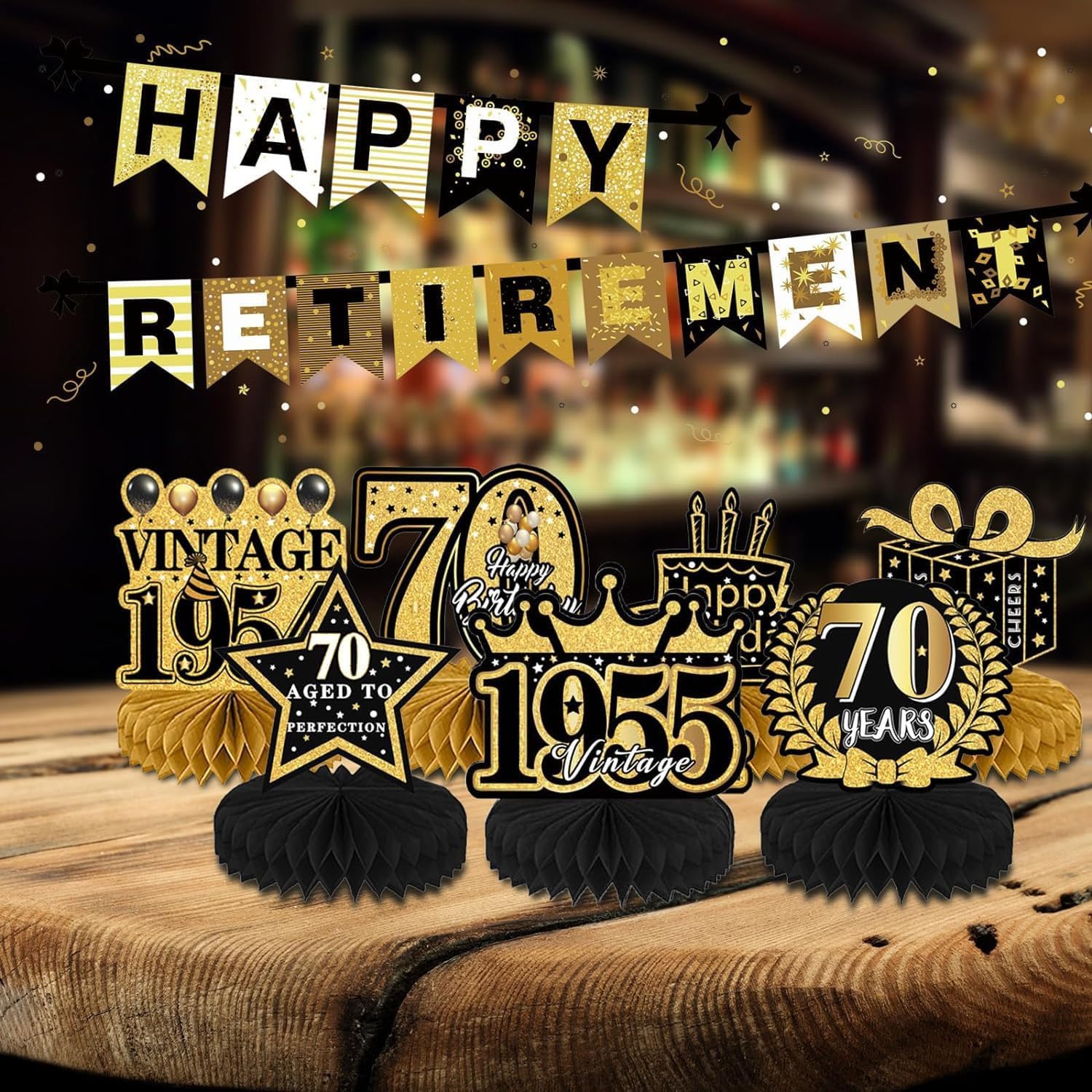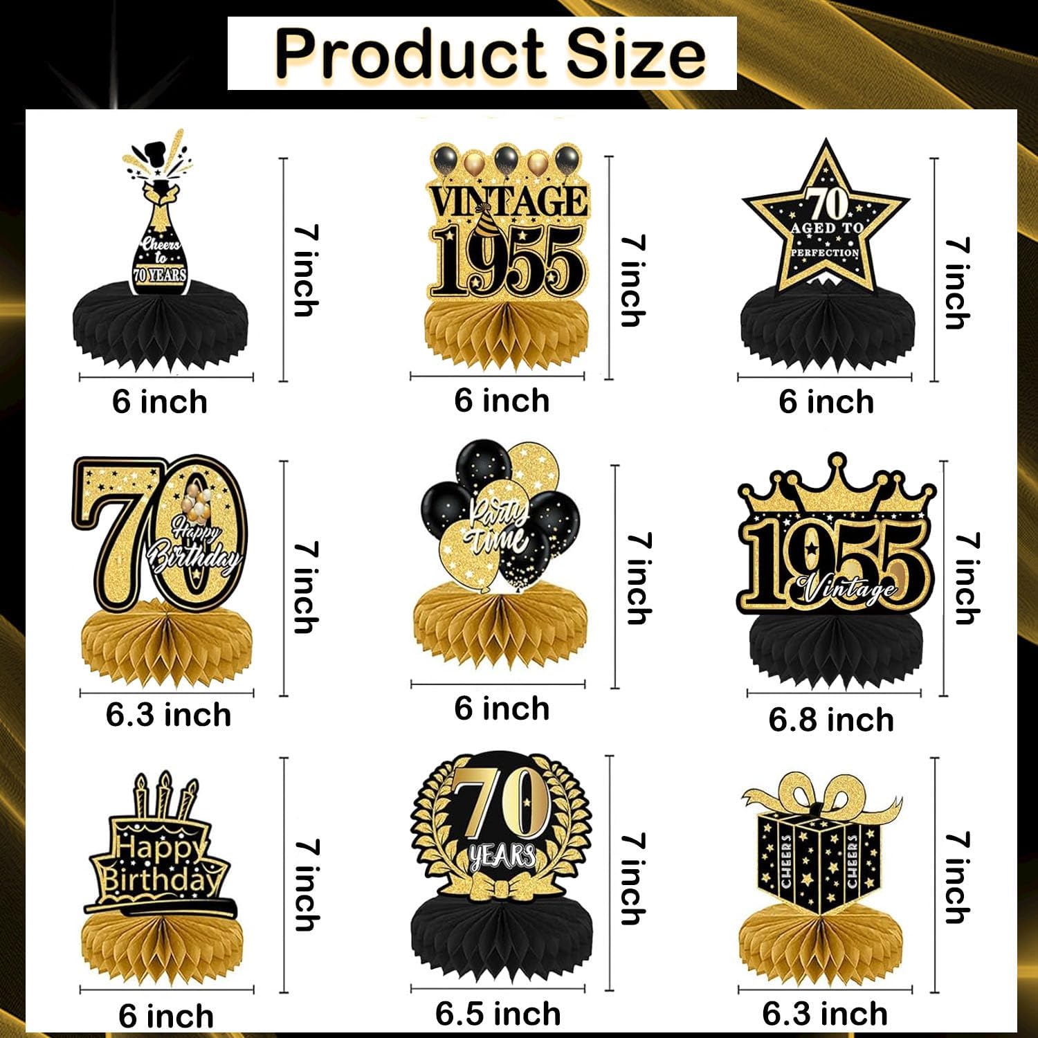 【Cosa riceverete?】- 9 pezzi di decorazione per 70° compleanno maschile a nido d'ape nero e oro (versione inglese). Include 9 pezzi di decorazioni a nido d'ape (stelle, torta, palloncini, vino, regali e decorazioni per il 70° compleanno). Queste decorazioni da tavola chic per il 70° compleanno miglioreranno l'atmosfera di una festa a tema e saranno sicuramente un successo per i vostri ospiti. 【Materiale di alta qualità】- Le decorazioni da uomo per il 70° compleanno sono realizzate in cartone di alta qualità, stampa chiara, leggera e resistente, non facile da sbiadire, robusta e non tossica, nessun odore, stampata in 3D. Perfetto per decorare la tua festa di 70° compleanno. Sarà una decorazione da tavolo durevole per la festa di compleanno. 【Facili da installare】- Le decorazioni per il 70° compleanno del ragazzo sono molto facili da installare. Fase 1: staccare l'adesivo della palla a nido d'ape; Fase 2: incollare la palla a nido d'ape sulla posizione fissa del biglietto; Fase 3: ripetere i passaggi precedenti sull'altro lato del biglietto; Fase 4: posizionare il biglietto sul tavolo; Fase 5: fatto. Pochi passi e avrete una romantica decorazione per la tavola di compleanno. 【70 anni decorazioni】- Queste decorazioni a nido d'ape sono disponibili in 9 diversi stili di forme di compleanno, con motivi vintage in nero e oro stampati sul fronte e sul retro, e molti elementi correlati stampati sulla superficie, che sono squisiti e realistici, creando una scena bella e sorprendente per aggiungere un'atmosfera di compleanno romantica. 【Decorazione di compleanno perfetta】- Queste decorazioni creative per la festa di compleanno sono adatte per le decorazioni della festa a tema del 70° compleanno. Puoi metterli sul tavolo per decorare o appenderli con le clip. Crea una festa di compleanno felice per te e rendi la tua festa di compleanno piena di atmosfera. Può anche essere usato come regalo per la famiglia, gli amici e i colleghi che non vedono l'ora di compiere 70 anni.