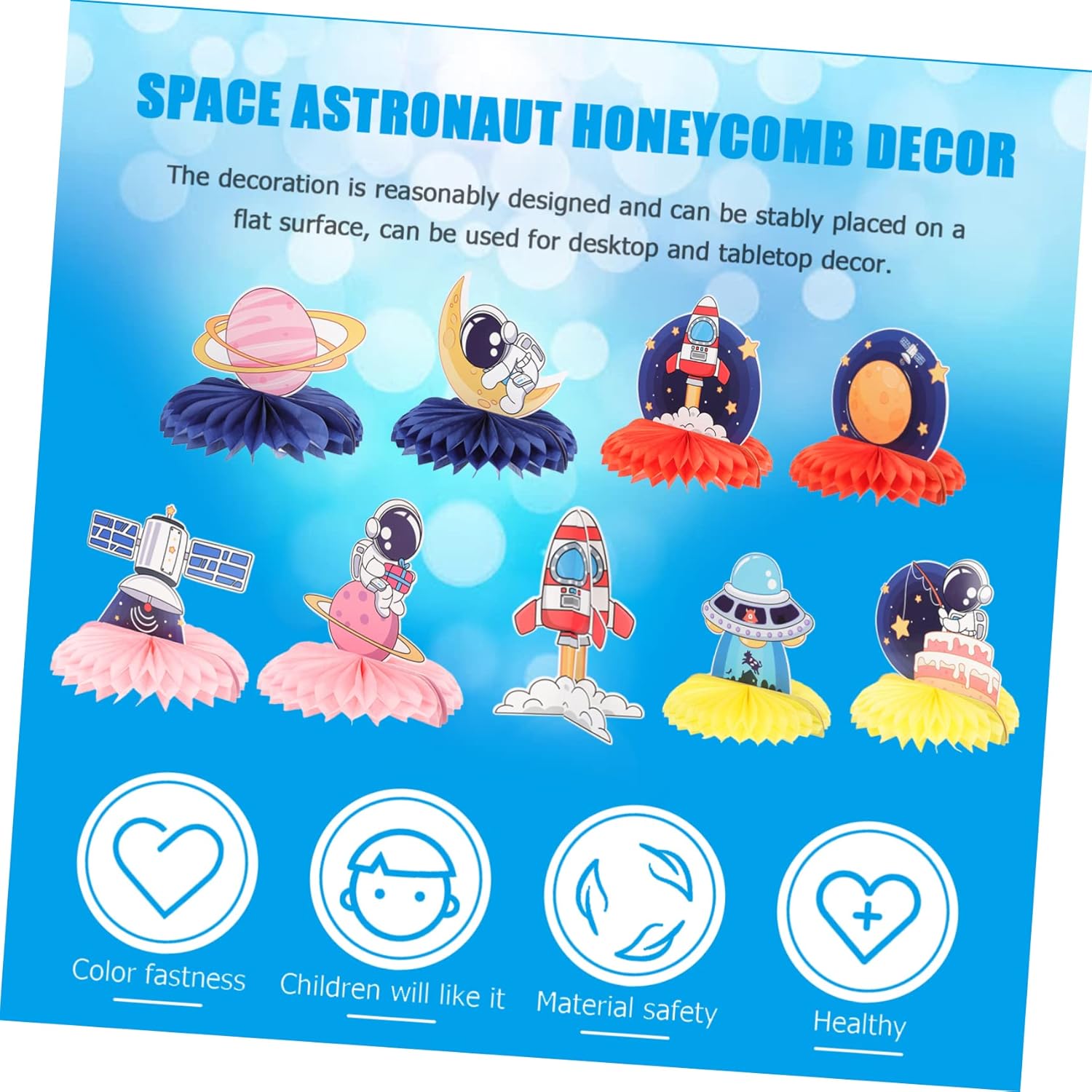 Decorazione a nido d'ape a tema spaziale: può essere utilizzata a lungo per decorare qualsiasi luogo desideriate, adatta per feste a tema, festival e festività, centrotavola a nido d'ape da tavolo Decorazione di compleanno a tema astronauta: presenta il design a nido d'ape di astronauta spaziale squisito e unico, rendendolo delicato e creativo, decorazioni spaziali Decorazioni da tavolo a nido d'ape: lavorazione raffinata e aspetto delicato, lo rendono bello, pratico e può essere utilizzato per la decorazione di feste, nido d'ape di astronauti spaziali Decorazioni spaziali: realizzate con una buona fattura, un trattamento superficiale delicato, una consistenza fine, una buona sensazione al tatto, possono contribuire a creare un'atmosfera felice e calda, decorazioni astronautiche Centrotavola a nido d'ape con astronauta: possono essere posizionati direttamente sulla scrivania o sul tavolo per la decorazione, buon effetto decorativo, decorazioni a tema spaziale