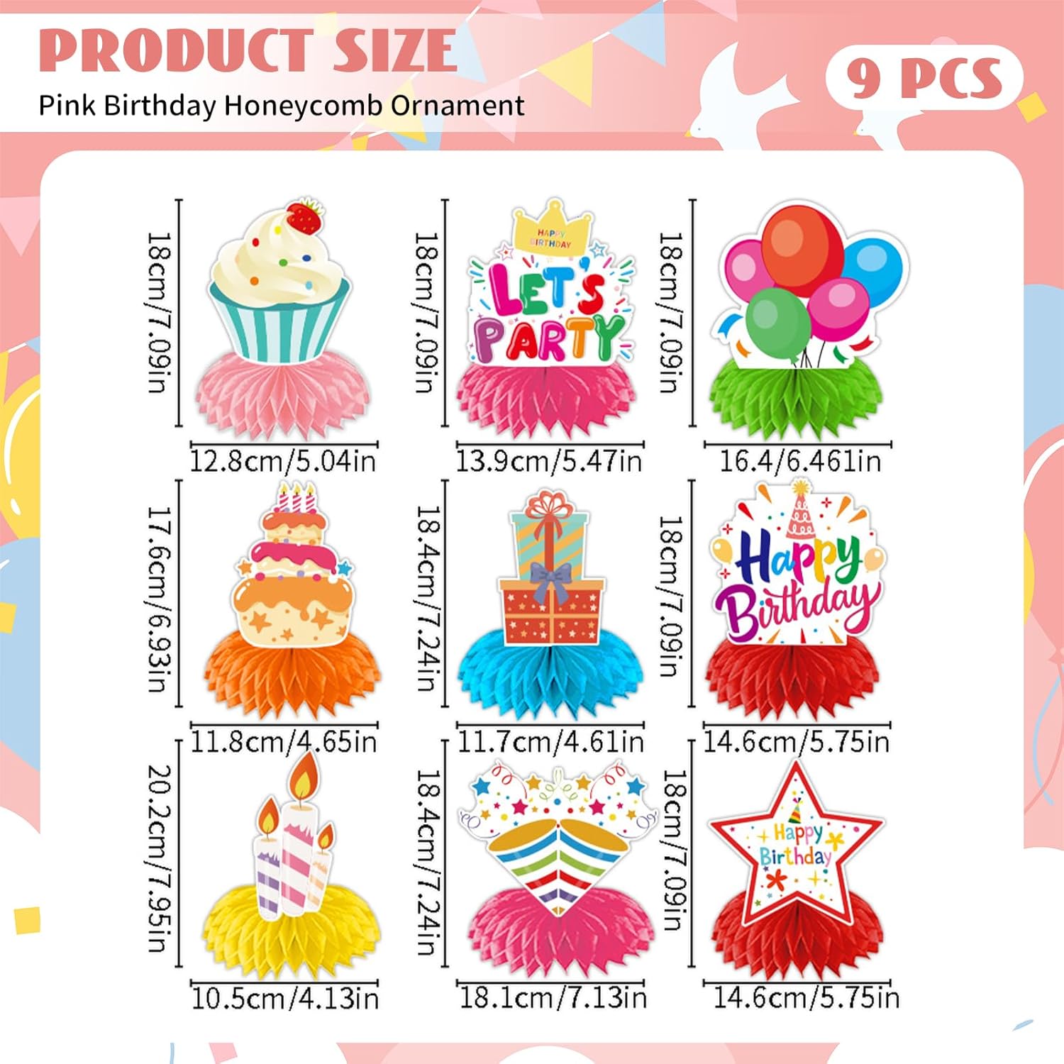 TRASFORMA L'ATMOSFERA FESTIVA: Dona alla tua prossima festa di compleanno un'atmosfera festosa con le nostre sfere a nido d'ape vivaci e colorate. Questi punti decorativi con deliziosi motivi e colori vivaci sono perfetti per feste a tema, compleanni di bambini o baby shower, creando immediatamente momenti indimenticabili ideali per le foto SET DI DECORAZIONI PER COMPLEANNO PERFETTO: Accendi la gioia con il nostro ampio set di 9 sfere a nido d'ape decorate con messaggi di 'HAPPY BIRTHDAY' e simboli come candele, palloncini, regali, stelle e torte. Queste decorazioni sono perfette per le tue feste di compleanno e immergono il tuo evento in un'atmosfera accogliente e festosa ASSEMBLAGGIO SEMPLICE: Dì addio allo stress delle decorazioni con i nostri articoli per decorare il compleanno facili da montare. Questi pezzi si assemblano in un attimo, permettendoti di risparmiare tempo prezioso e concentrarti totalmente sulla gioia della festa FESTEGGIAMENTI VIVACI: Scopri la stampa fronte-retro con le nostre decorazioni di compleanno Happy Birthday realizzate con cartoncino di alta qualità e spessore. Queste decorazioni da tavolo attirano l'attenzione da ogni angolazione e sono un elemento essenziale per la tua festa di compleanno, garantendo una festa a tema colorata e allegra VERSATILITÀ FESTIVA: Le nostre affascinanti decorazioni di compleanno non sono solo adatte per feste di compleanno dei bambini, ma ideali anche per diverse celebrazioni. Che si tratti di baby shower, festa per bambini o riunione di famiglia, queste decorazioni si adattano perfettamente e creano lo scenario ideale per ogni festa, lasciando un ricordo duraturo