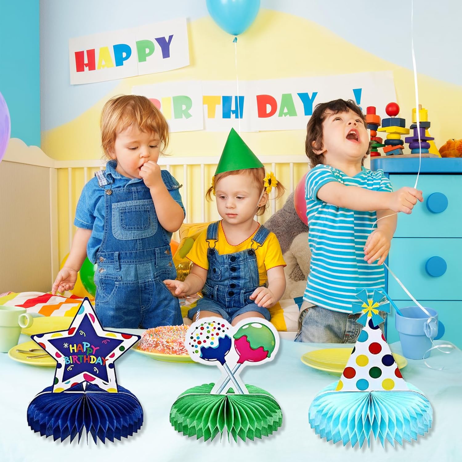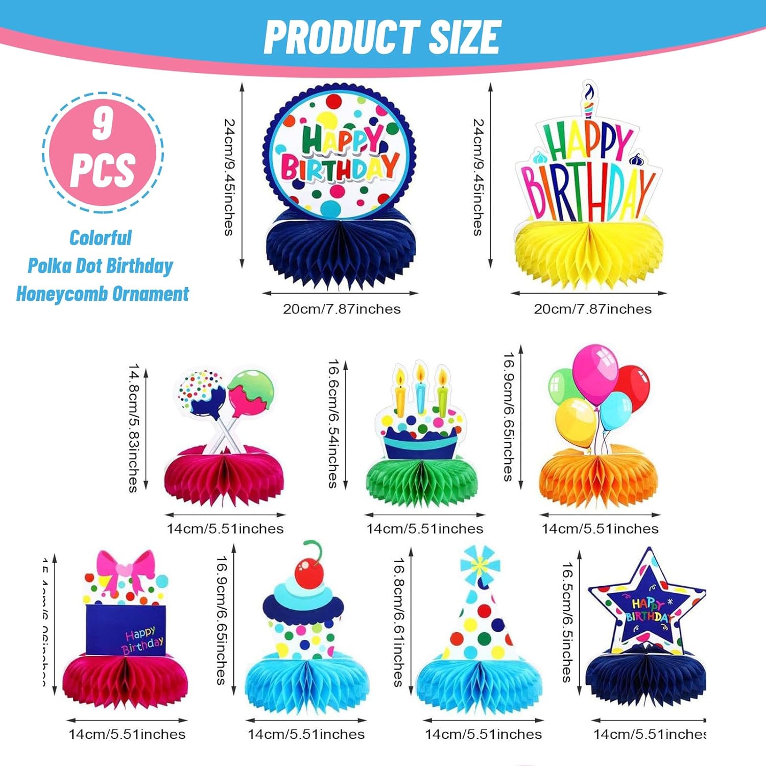 TRASFORMA L'ATMOSFERA DELLA FESTA: Dona alla tua prossima festa di compleanno un tocco festoso con le nostre vivaci e colorate sfere cellulari. Questi elementi decorativi con motivi dolci e colori vivaci sono perfetti per feste a tema, compleanni per bambini o baby shower, creando immediatamente momenti indimenticabili ideali per le foto SET DI DECORAZIONI DI COMPLEANNO COMPLETO: Scatena la gioia con il nostro ampio set di 9 sfere cellulari colorate, decorate con vivaci messaggi 'HAPPY BIRTHDAY' e simboli come candele, palloncini, regali, stelle e torte. Queste decorazioni si adattano perfettamente alle tue feste di compleanno, immergendo il tuo evento in un'atmosfera calorosa e festosa ASSEMBLAGGIO SEMPLICE: Dimentica lo stress delle decorazioni con i nostri articoli di decorazione di compleanno facili da montare. Questi pezzi si allestiscono in pochissimo tempo, permettendoti di risparmiare tempo prezioso e concentrarti sulla gioia della festa FESTEGGIAMENTI VIVACI: Vivi la ricchezza della tecnica di stampa su entrambi i lati con le nostre decorazioni Happy Birthday realizzate in cartone spesso di alta qualità. Queste decorazioni da tavolo cattureranno gli sguardi da ogni angolazione e sono una parte essenziale della tua festa di compleanno per garantire una festa a tema colorata e gioiosa VERSATILITÀ PER OGNI FESTA: Le nostre affascinanti decorazioni di compleanno non sono solo adatte ai compleanni per bambini, ma anche ideali per varie celebrazioni. Che si tratti di un baby shower, una festa per bambini o una riunione di famiglia, queste decorazioni si adattano e creano l'ambiente perfetto per ogni evento, lasciando un ricordo duraturo per anni