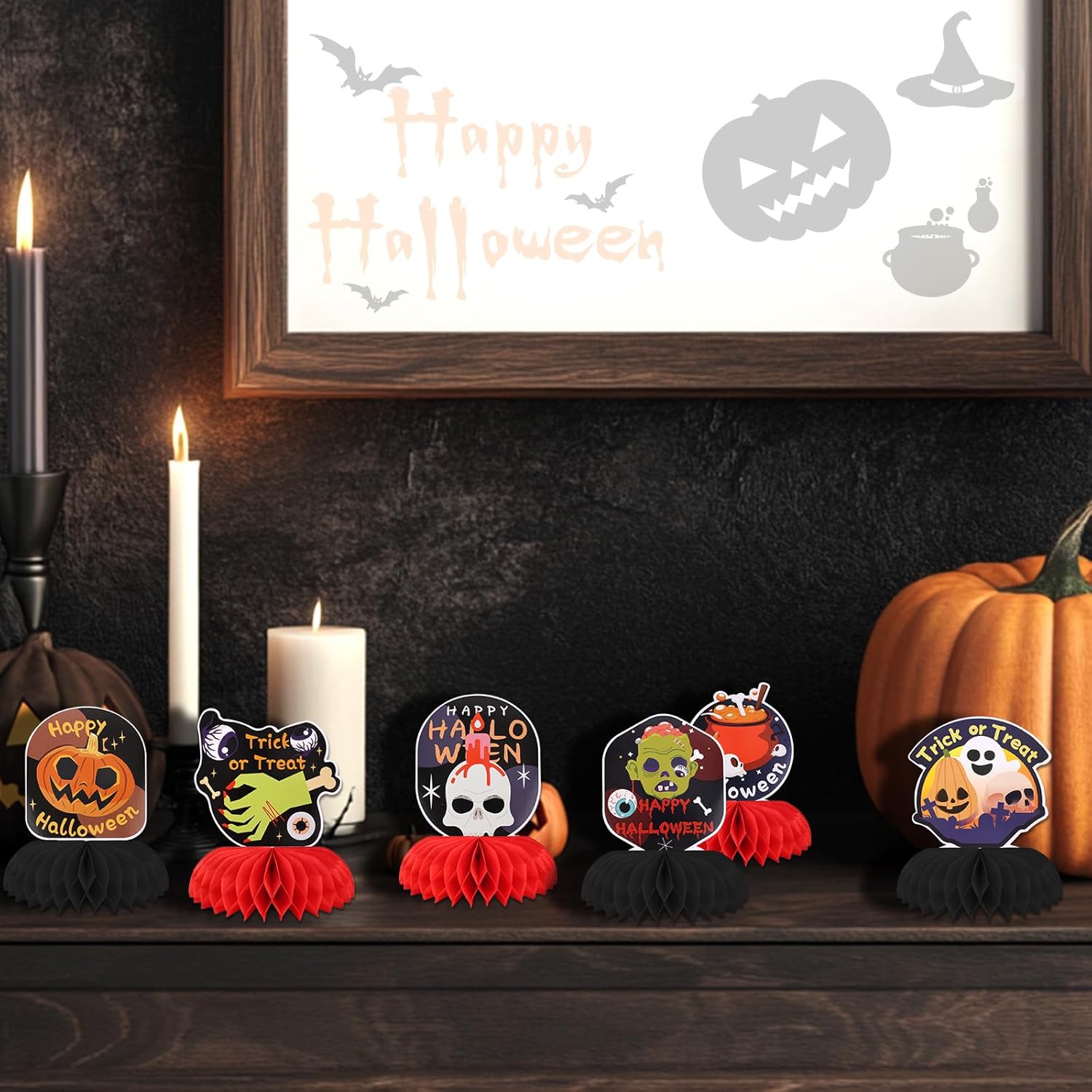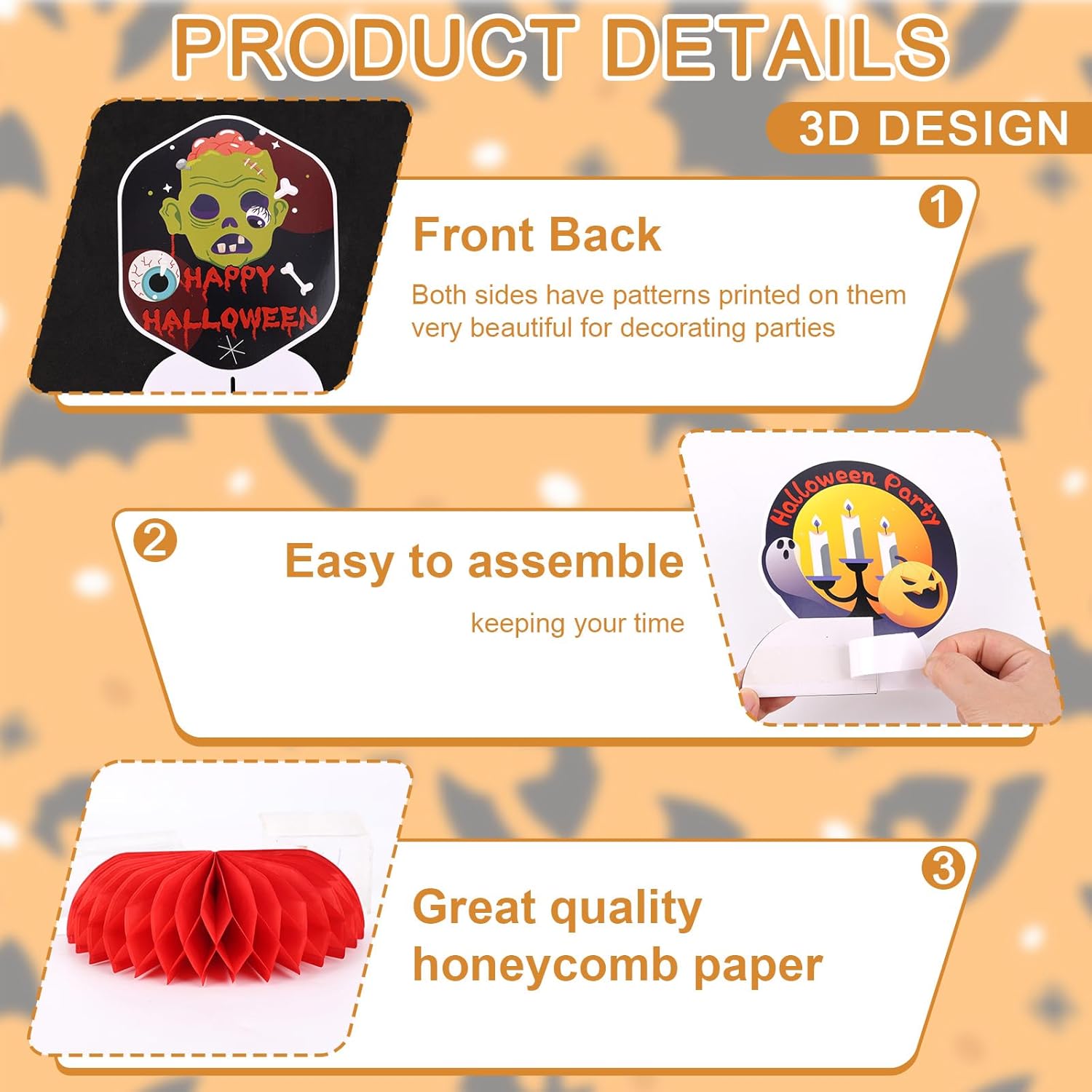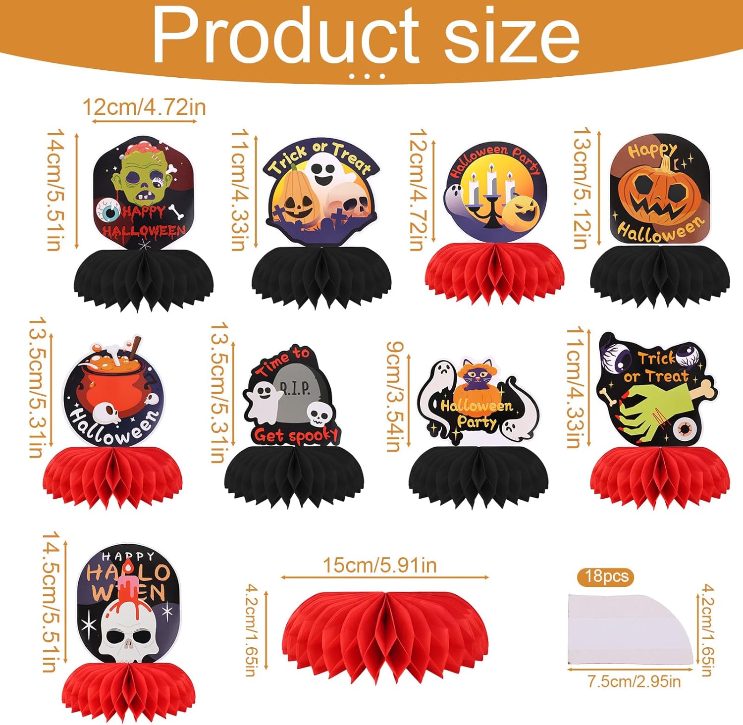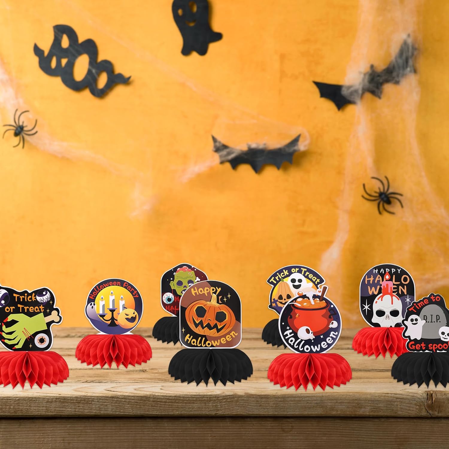 Quantità e stile ricca: riceverai 9 pezzi di centrotavola Halloween Honeycomb con icone classiche di Halloween come zucche, fantasmi e scheletri, abbastanza per la tua festa. Eccellente qualità: a base di carta, le nostre decorazioni da tavolo di Halloween sono resistenti, lisce, impermeabili e possono essere applicate per un tempo più lungo. Sono anche facili da conservare, permettendoti di riutilizzarli per le future celebrazioni di Halloween. Stile a nido d'ape accattivante: le decorazioni di Halloween presentano un design a nido d'ape, creando un effetto 3D che rende i tuoi centrotavola da tavola di Halloween più orribili e giocosi. Facile da assemblare: queste decorazioni per feste di Halloween sono semplici da configurare, rendendo i tuoi centrotavola di Halloween per tavoli facili e facili, non richiedendo strumenti o accessori aggiuntivi per impedirti di goderti la festa. Più occasioni: ideale per feste di Halloween, case infestate, aule o qualsiasi celebrazione inquietante. Queste vibranti decorazioni a nido d'ape trasformano istantaneamente tavoli, mensole o qualsiasi superficie piana in un display di Halloween festivo.