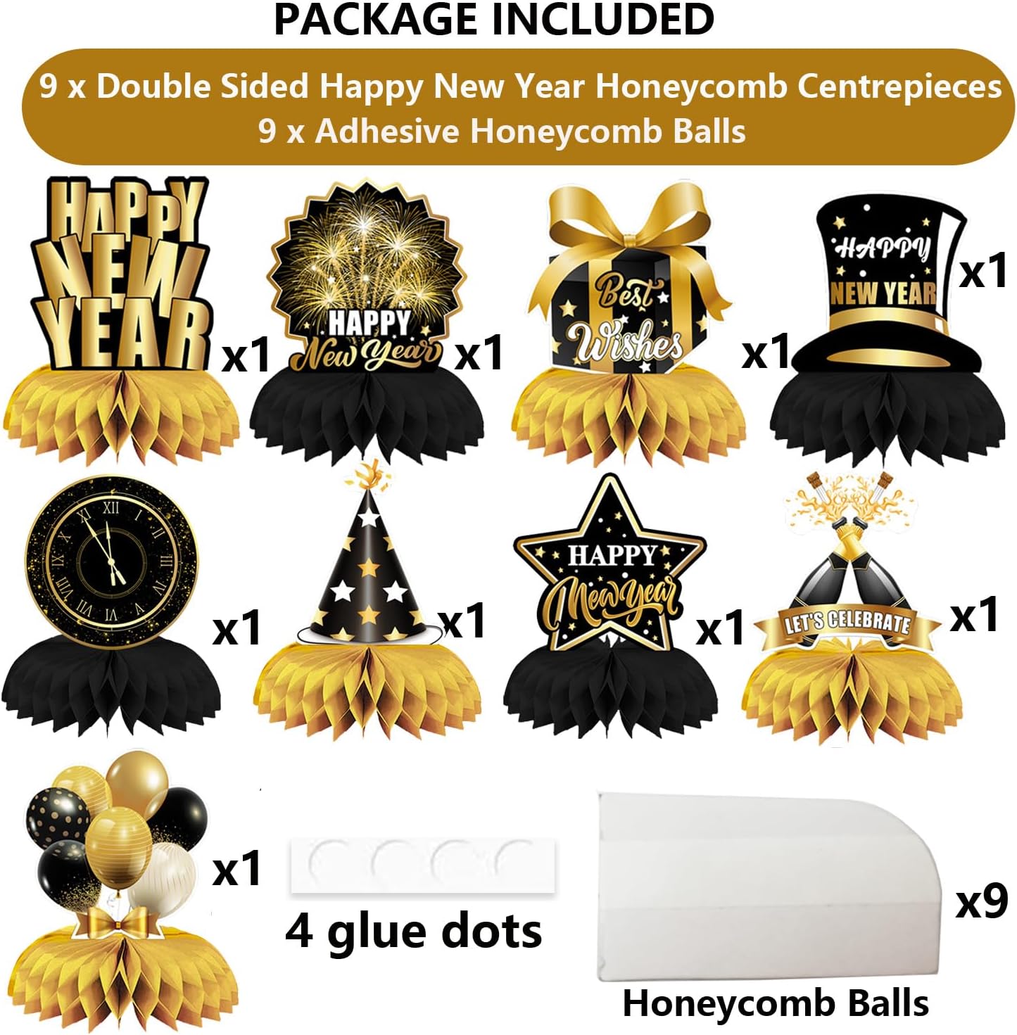 【Centrotavola di Capodanno】: riceverai 9 centrotavola di Capodanno a nido d'ape neri e gialli, tra cui 4 palline a nido d'ape nere e 5 palline a nido d'ape gialle. I ricchi modelli e testo degli elementi di Capodanno renderanno la tua festa di Capodanno più speciale e attraente, godendoti un momento più felice. 【Design fronte-retro ad alta definizione】: il centrotavola di Capodanno presenta classici cappelli e fuochi d'artificio di felice anno nuovo, regali di auguri, festeggiamo champagne, orologio e design di palloncini. Ogni disegno è stampato su entrambi i lati con l'elemento e il testo del nuovo anno. alta definizione, molto vivida, aggiunge una forte atmosfera alle decorazioni della tua festa di Capodanno 2026, rende la tua festa a tema di Capodanno piuttosto impressionante. 【Effetto a nido d'ape stereoscopico 3D, facile da montare】: ogni centrotavola di Capodanno viene fornito con 1 pallina a nido d'ape. Il design a nido d'ape può facilmente mettere il centrotavola sul tavolo. Basta strappare l'adesivo dalla sfera a nido d'ape, incollarlo su un'area fissa su un lato della carta, ripetere sull'altro lato della carta. Molto semplice, ti permette di risparmiare tempo e di decorare facilmente la tavola per la tua festa di Capodanno. 【Grandi dimensioni, materiali di buona qualità】: le nostre decorazioni per la tavola di Capodanno sono realizzate in cartone spesso, molto resistente e possono essere riutilizzate più volte. Superficie liscia e colore brillante, molto chiaro, senza sbiadimento. Ogni centrotavola a nido d'ape ha un diametro di circa 15,24 cm/6 pollici, molto dimensionale, di buone dimensioni per i tavoli e ha un aspetto efficace, lascia che i tuoi amici e la tua famiglia abbiano una decorazione creativa per la tavola di Capodanno. 【Grandi decorazioni per la tavola della festa di Capodanno】: i centrotavola del felice anno nuovo con un esclusivo design a forma di nido d'ape 3D, sono perfetti per la decorazione della tavola della festa di Capodanno a tema. Puoi posizionarlo sul tavolo da pranzo o sul tavolino per decorare la tua tavola e puoi anche appenderlo con una clip per decorare il soffitto o la parete durante la festa di Capodanno.