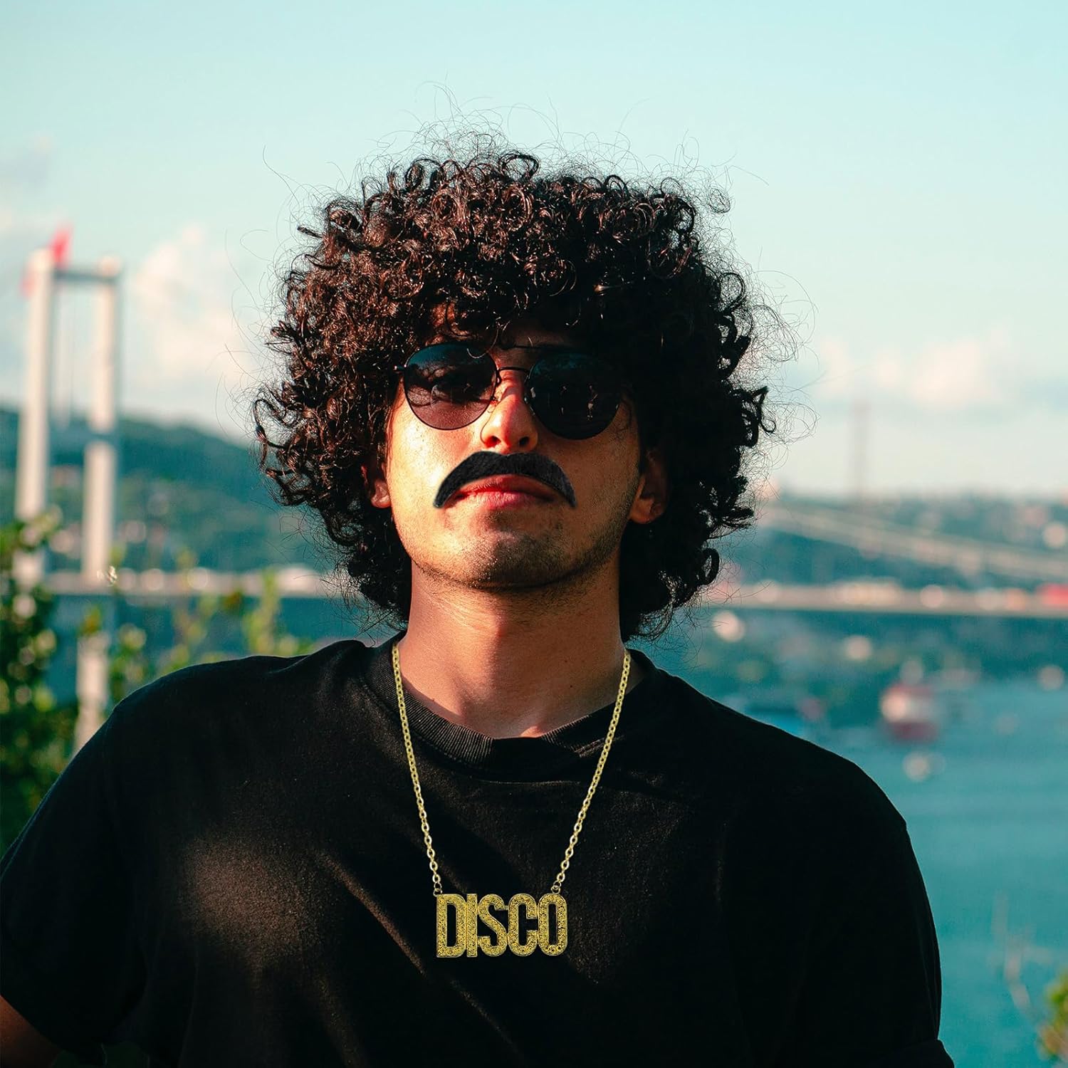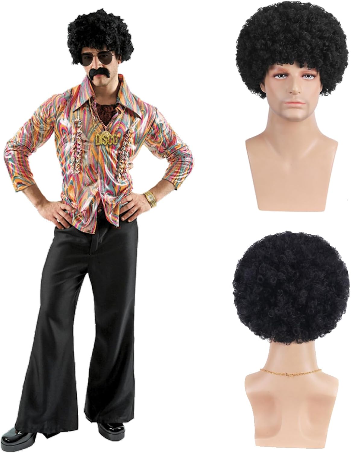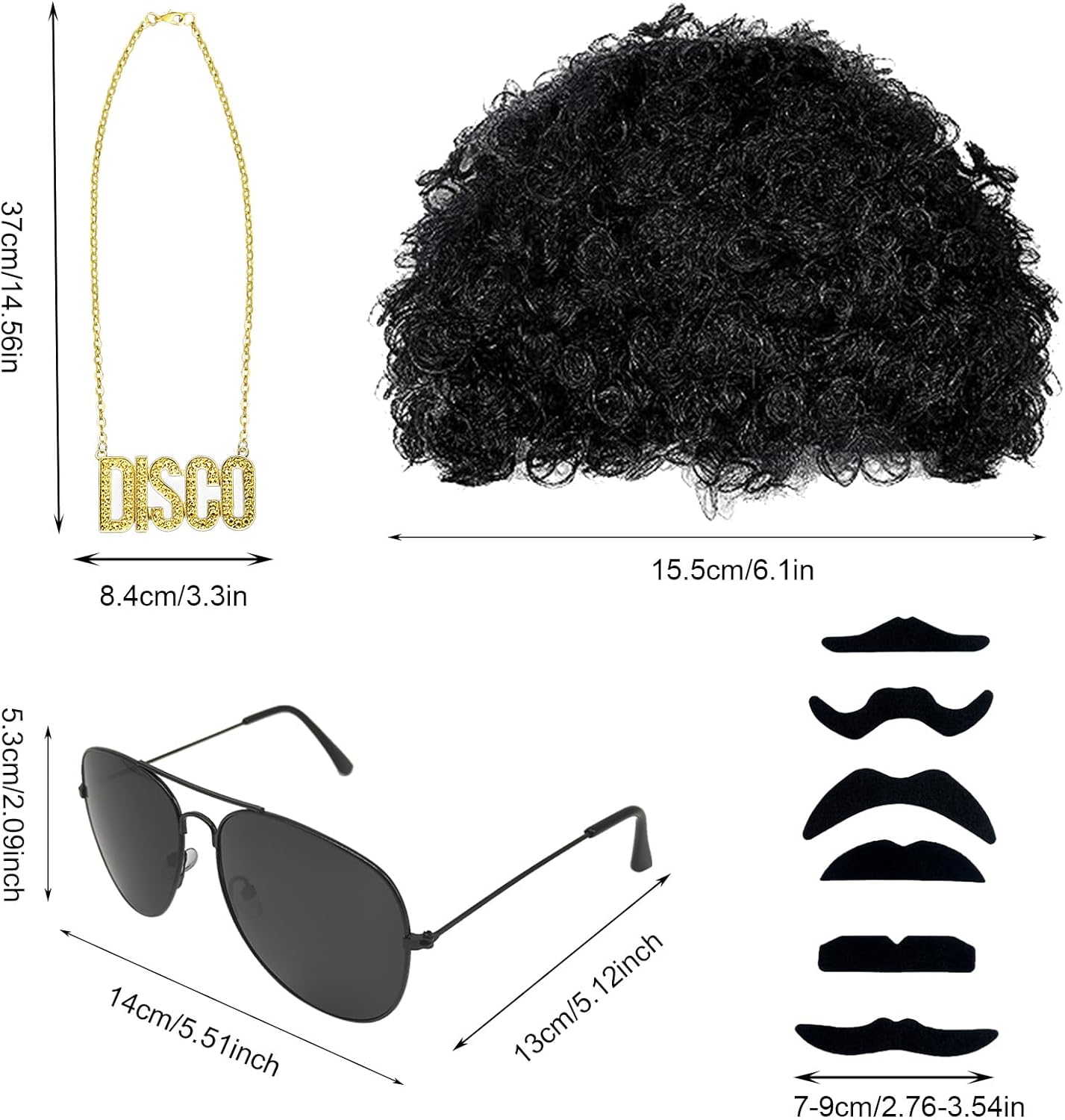 La confezione include: 1 confezione di parrucca afro jumbo funky nera, 1 paio di occhiali da sole hippie, 1 collana e 6 baffi. Questo pacchetto mostra uno stile anni '60 e '70 che si adatta alla maggior parte degli adolescenti e degli adulti Materiale di qualità: la parrucca afro originale e la collana sono materiali di qualità che garantiscono solidità e robustezza. Sembrano molto strutturati, di qualità e durevoli Adatto a tutti: la parrucca funky e gli occhiali da sole hippie sono adatti a tutti. Questi bizzarri set di costumi hippie sono un'aggiunta meravigliosa per le feste in maschera negli anni '60, '70 e '80, adatti alla maggior parte degli adolescenti e delle persone Ideale per le feste: è ideale per uomini, donne e adolescenti ed è una parte essenziale del tuo costume anni '60 o '70. Adatto anche per vari festival ed eventi, come abiti retrò, Halloween, feste scolastiche e feste Regalo adatto: molti adolescenti e adulti apprezzano gli accessori hippie trendy e retrò e sono ottimi regali. questi accessori hippie aggiungeranno meravigliose feste alle feste a tema degli anni '60, '70 e '80, questo abito hippie degli anni '60 era una buona scelta per uomini e donne