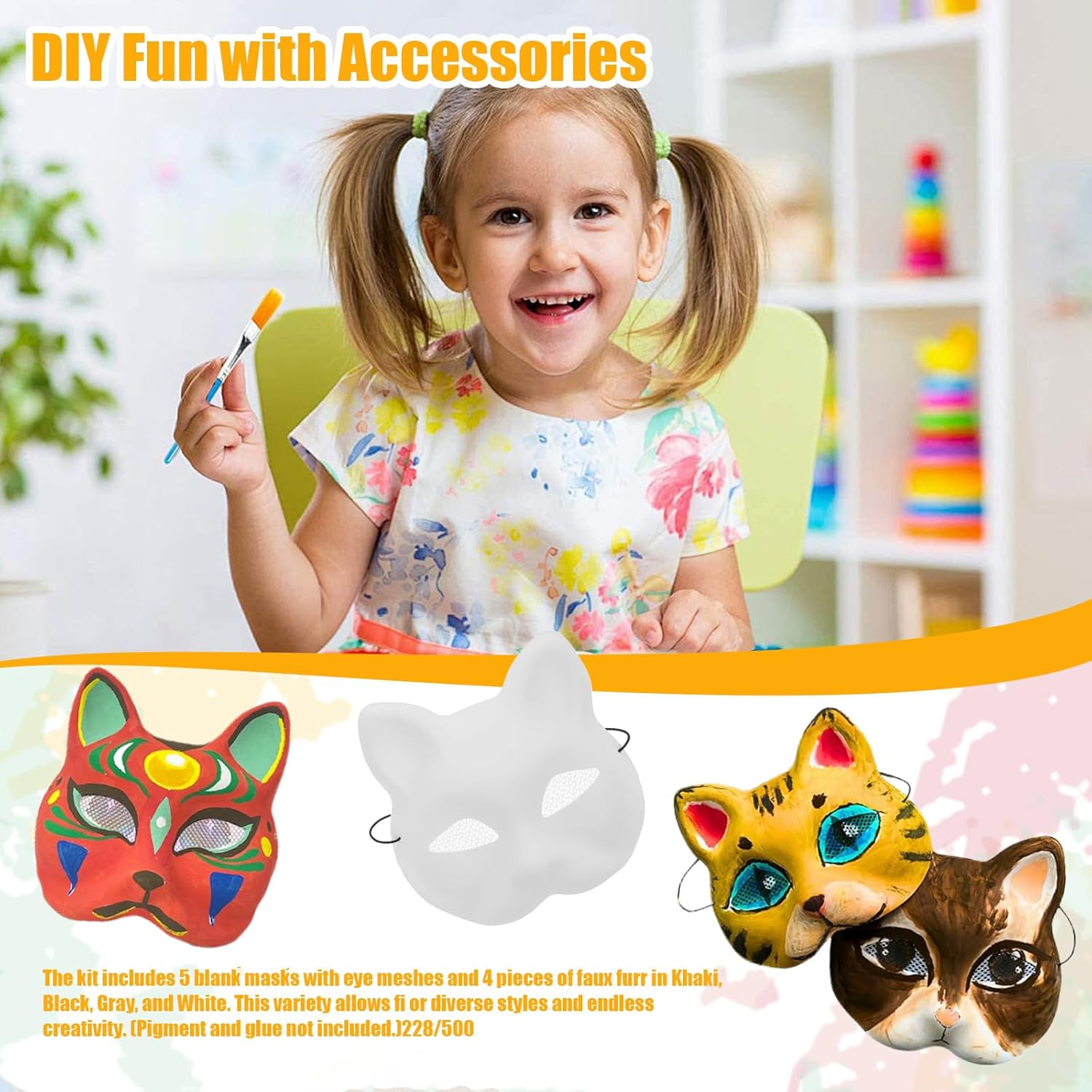 Creativo e pratico: misurare circa 7,3x7 pollici, le maschere si adattano alla maggior parte degli adulti e dei bambini..Il processo di creazione di maschere è un'attività interattiva divertente per genitori e bambini o amici..Fa anche un ottimo regalo per i familiari che amano progetti creativi. Materiali versatili: la nostra maschera di gatto Therian è realizzata in PVC leggero, garantendo comfort e durata..I pezzi di tessuto falsa in finto incluso sono morbidi e perfetti per l'uso di lunga durata nelle maschere di Halloween e negli accessori cosplay. Facile personalizzazione: la maschera esterna presenta tessuto di Furr Furr a pila lunga, maglia di tessuto per gli occhi e un foglio di feltro autoadesivo per i dettagli..Personalizza la tua maschera con vernice e altri abbellimenti per creare un pezzo unico che rifletta il tuo stile personale. Divertimento fai -da -te con accessori: il kit include 5 maschere vuote con maglie per gli occhi e 4 pezzi di finta furr in kaki, nero, grigio e bianco..Questa varietà consente diversi stili e infinite creatività..(Pigmento e colla non inclusi.) Perfetto per ogni occasione: che si tratti di un night club, da ballo, da bar, festa di addio al nubilato, festa di Halloween, festa sugli animali della giungla, serata di gioco, spettacolo teatrale o servizio fotografico, queste maschere per la volpe di gatto aggiungeranno divertimento e talento al tuo evento.