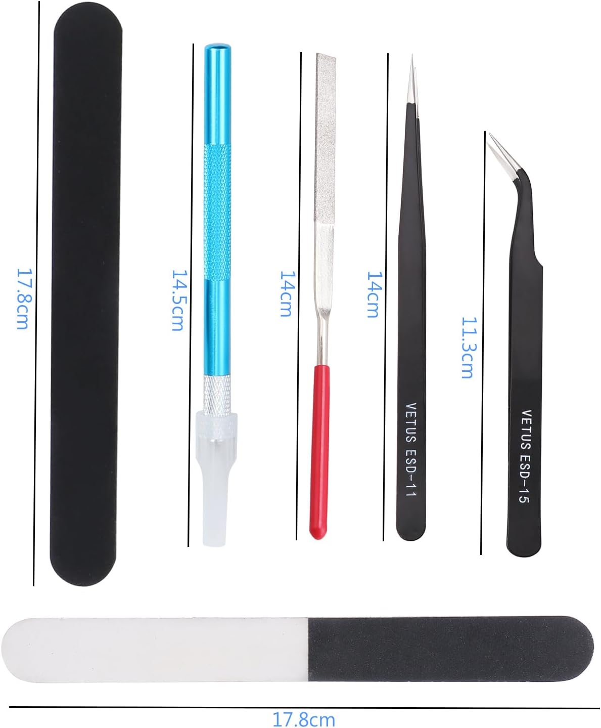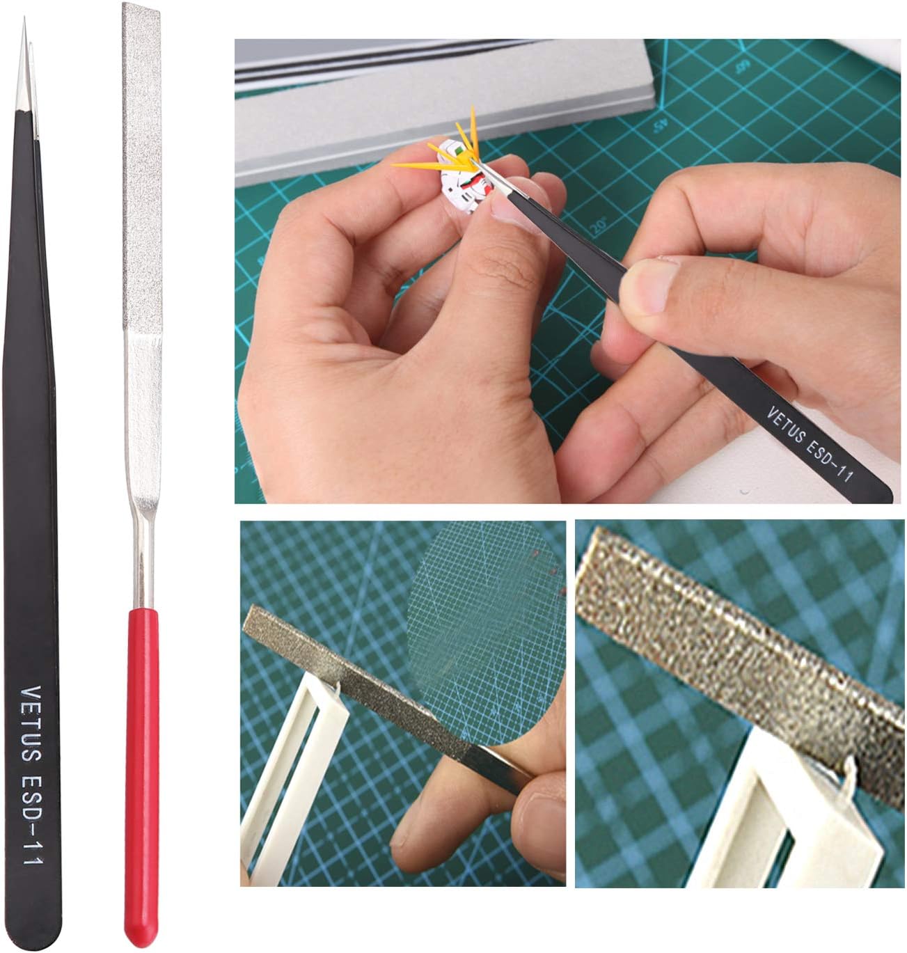 🧡【La confezione include】 1 pinza laterale, 2 pinzette, 1 lima, 2 bacchette lucide bifacciali, 1 taglierino, 1 taglierino di ricambio da 5 pezzi, 1 scatola trasparente. Soddisfano tutti i requisiti di base per i principianti. Gli articoli sono protetti da una scatola di plastica in caso di danni 🧡【Durevole】 Il perno del trimmer è saldamente fissato con un'elevata durezza. È antiscivolo e ha un cappuccio di sicurezza per proteggere la fresa. La fresa è realizzata in acciaio al carbonio e offre una lunga durata. Le pinzette sono realizzate in acciaio inox ad alta resistenza, sono antistatiche, acide, resistenti alla corrosione e antimagnetiche. Anche altri gradi sono di alta qualità. 🧡【Leggero e portatile】 Confezionato in una scatola di plastica e in una borsa impermeabile, può essere trasportato e conservato comodamente. È possibile portarlo ovunque e utilizzarlo in qualsiasi momento. 🧡【Ampia applicazione】Con il set di strumenti di base del modellatore, è possibile realizzare auto, robot, cartoni animati e altri oggetti artigianali. 🧡【Grandi doni】Se avete un amico che ama molto l'animazione, i cartoni animati e i modelli, o se è un principiante del modellismo, questo è anche un grande regalo. Il vostro regalo unico rappresenta il vostro amore unico!