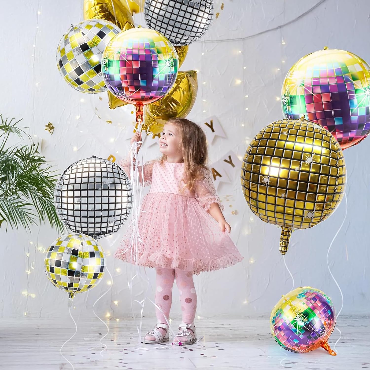 Materiale di alta Qualità: La palla da discoteca è realizzata in pellicola di alluminio, che ha una consistenza dura ed è più resistente all'usura e all'estrusione rispetto ai normali palloncini, e non è facile da rompere. Il materiale dei palloncini carnevale può anche prevenire efficacemente la rapida fuoriuscita di gas. Dopo il gonfiaggio, può rimanere pieno per molto tempo, rendendo più comodo organizzare in anticipo il luogo dell'evento Buone Dimensioni: La palla discoteca misura 28 pollici, ha un diametro di circa 37 cm quando è gonfia e pesa solo 13 grammi, il che è una buona dimensione. addobbi carnevale non è né troppo piccolo da non attirare l'attenzione, né troppo grande da non essere facile da organizzare e gestire. È molto comodo da appendere o tenere in mano Aspetto Unico: I palloncini personalizzati adottano un design a specchio laser, composto da tanti piccoli quadrati che formano una sfera, proprio come la classica palla sulla pista da ballo della discoteca. Disponibile in una varietà di tonalità, tra cui argento, colorato, oro, ecc., Addobbi Compleanno riflette una luce brillante sotto la lampada, creando un effetto visivo scintillante e dinamico, aggiungendo un'atmosfera unica a ogni occasione Facile da Gonfiare: I palloncini oro sono dotati di istruzioni chiare e facili da capire. Seguire i passaggi per trovare il foro di gonfiaggio, inserire la pompa dell'aria per gonfiare, premere delicatamente per verificare se è gonfio e pizzicare l'ugello dell'aria per tagliare lo spazio d'aria. Palloncini oro consente di completare facilmente l'operazione di gonfiaggio anche per chi lo utilizza per la prima volta, risparmiando tempo ed energie Ampia Gamma di Utilizzi: Le decorazioni festa sono adatte per la decorazione di matrimoni, feste di compleanno, Natale e altre occasioni festive. Può essere utilizzato anche come giocattolo per bambini e come premio nei giochi. I palloncini argento possono essere abbinati in modo flessibile a diverse scene: che si tratti di uno stile semplice o di un evento dallo stile più sontuoso, si integrano bene in esso