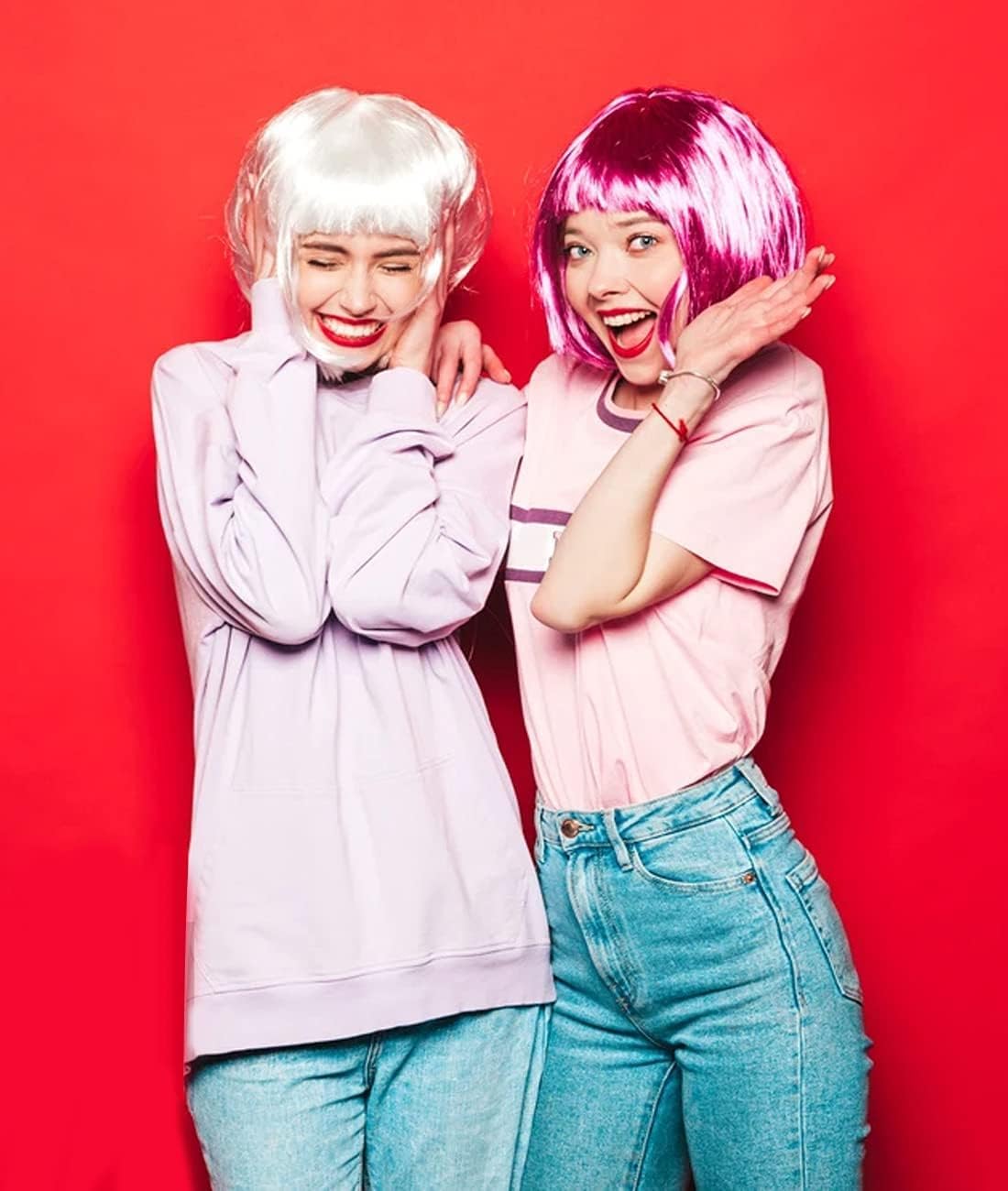 Featured Colorful Wigs:You will receive 9 short bob colored wigs in different colors, includes red wig,pink wig,blue wig, purple wig, orange wig,yellow wig, green wig, rose red wig and white wig, enough to meet your various needs Beautiful Wig: Each hair wig is built around a lightweight and adjustable netted cap, the wigs are made of polyethylene, durable and reusable, and you needn't worry about that they will do harm to your hair; Designed with a mesh sleeve inside, comfortable and breathable, equipped with a elastic band, you can adjust its size easily Versatile Wig Nets: Total 9pcs black mesh net wig caps,enough for your spare and replacement in daily.Each mesh wig cap have a closed design which help you wrap hair easily and quickly Amazing Gift:These colorful hair wigs would be perfect gifts for your girlfriend and female friends, especially ladies who are cosplay lovers. Furthermore, these fancy short bob hair wigs are suitable for both parties and daily life, you can wear them when you are attending cosplay parties,Christmas party or having Halloween costume, make your life more joyful Lifetime Guarante:We are so confident that you will love our party wigs for women that we are offering all customers a lifetime guarantee.If at any point you decide you are not completely satisfied with your wig pack,just drop us an email and we will refund 100% of the money