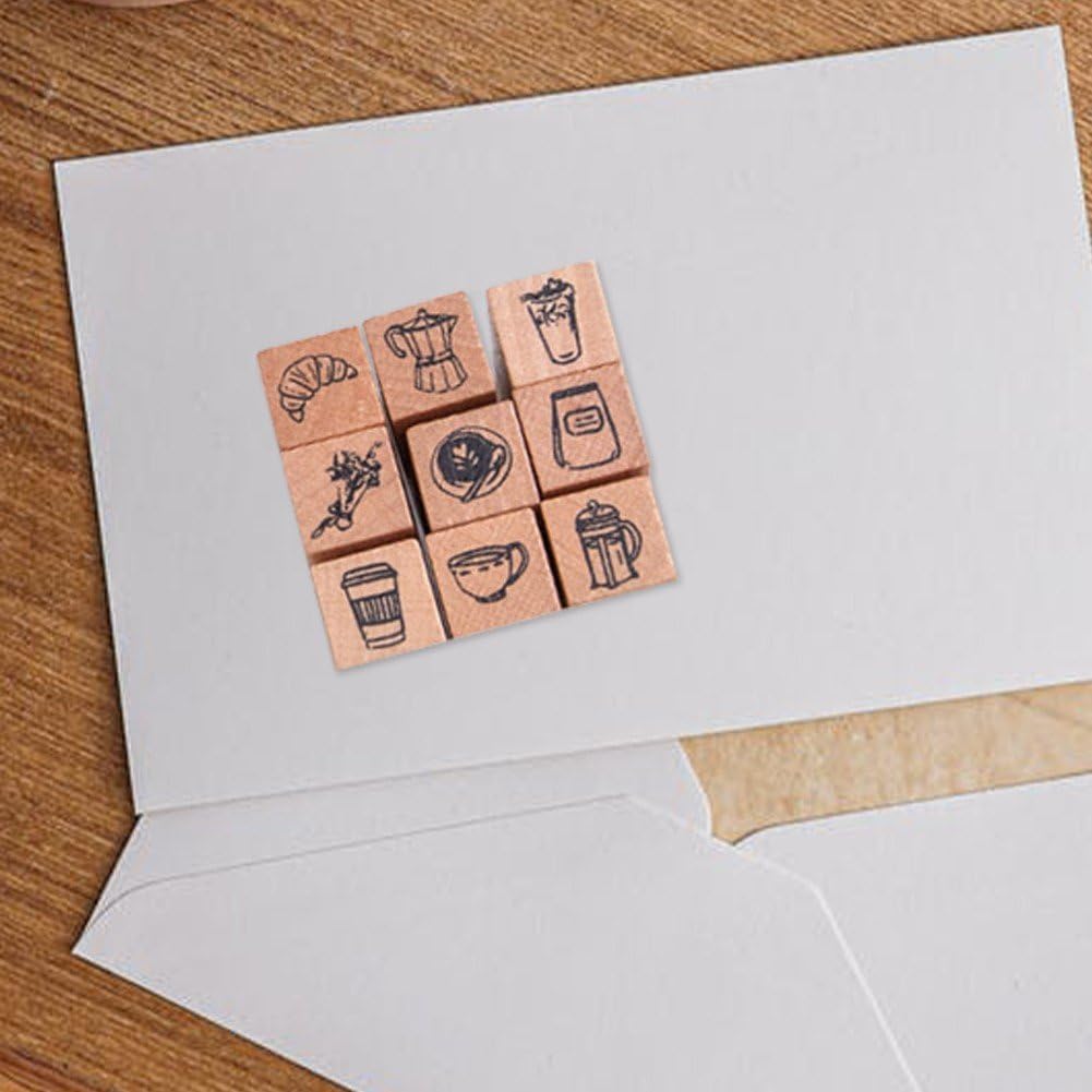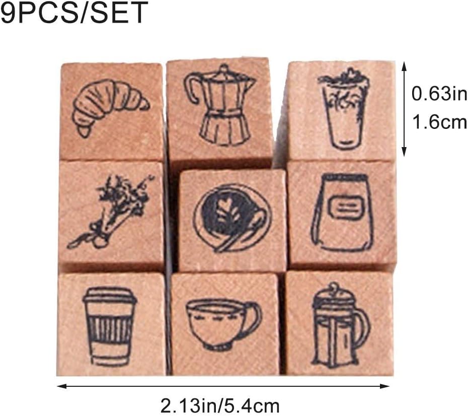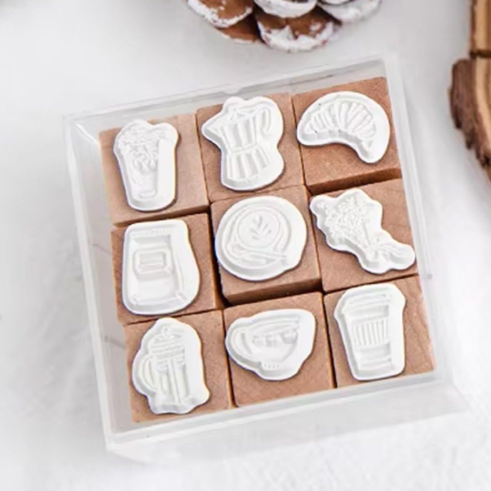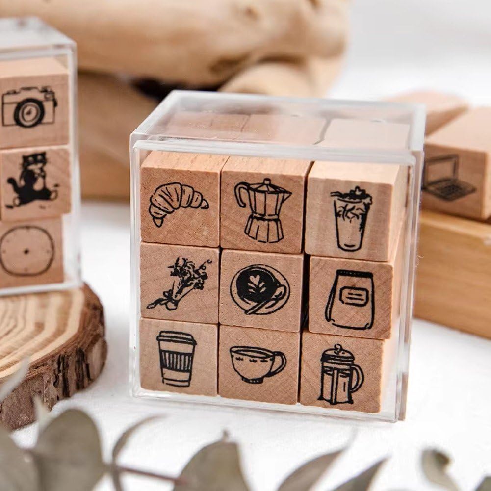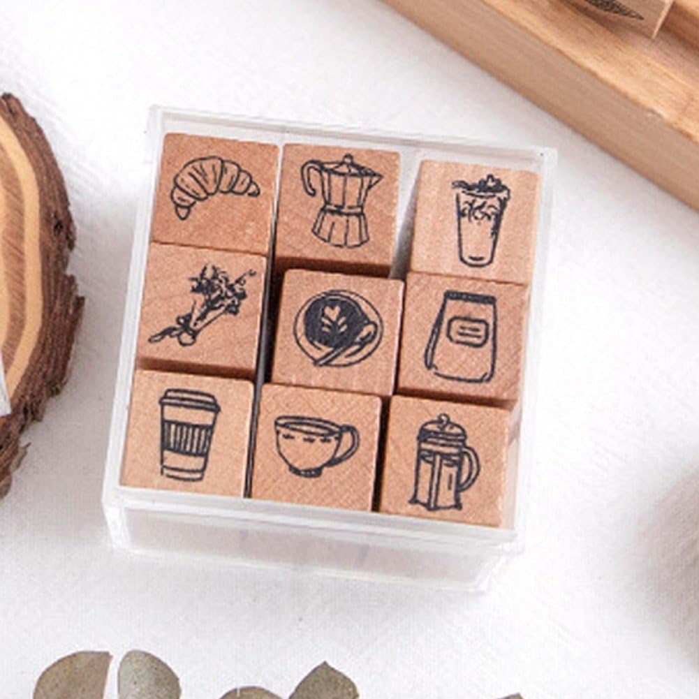 Mini disegni unici di cartoni animati: ogni set include 9 adorabili timbri in legno con affascinanti disegni per l'ora del caffè, perfetti per aggiungere un tocco al tuo diario, agenda o album. OTTIMO REGALO PER GLI AMANTI DELL'ARTIGIANATO: Splendidamente confezionato e irresistibilmente carino, questo set di timbri è un regalo meraviglioso per scrapbooker, studenti, insegnanti e appassionati di tutte le età. Perfetto per la pianificazione del diario: migliora il tuo calendario e le tue agende giornaliere con icone carine e mini illustrazioni. Ottimo per organizzare programmi, tenere traccia delle abitudini creando layout memorabili. Facile da usare e da riporre: le dimensioni compatte si adattano comodamente alla mano ed è facile da riporre in scatole o sacchetti artigianali. Ideale per l'inserimento nel diario, la creazione di biglietti e progetti ovunque tu vada. MATERIALI PREMIUM: Realizzati con legno naturale resistente e gomma di alta qualità, questi timbri garantiscono ogni volta impressioni nitide e pulite. Ecologico, costruito per durare!