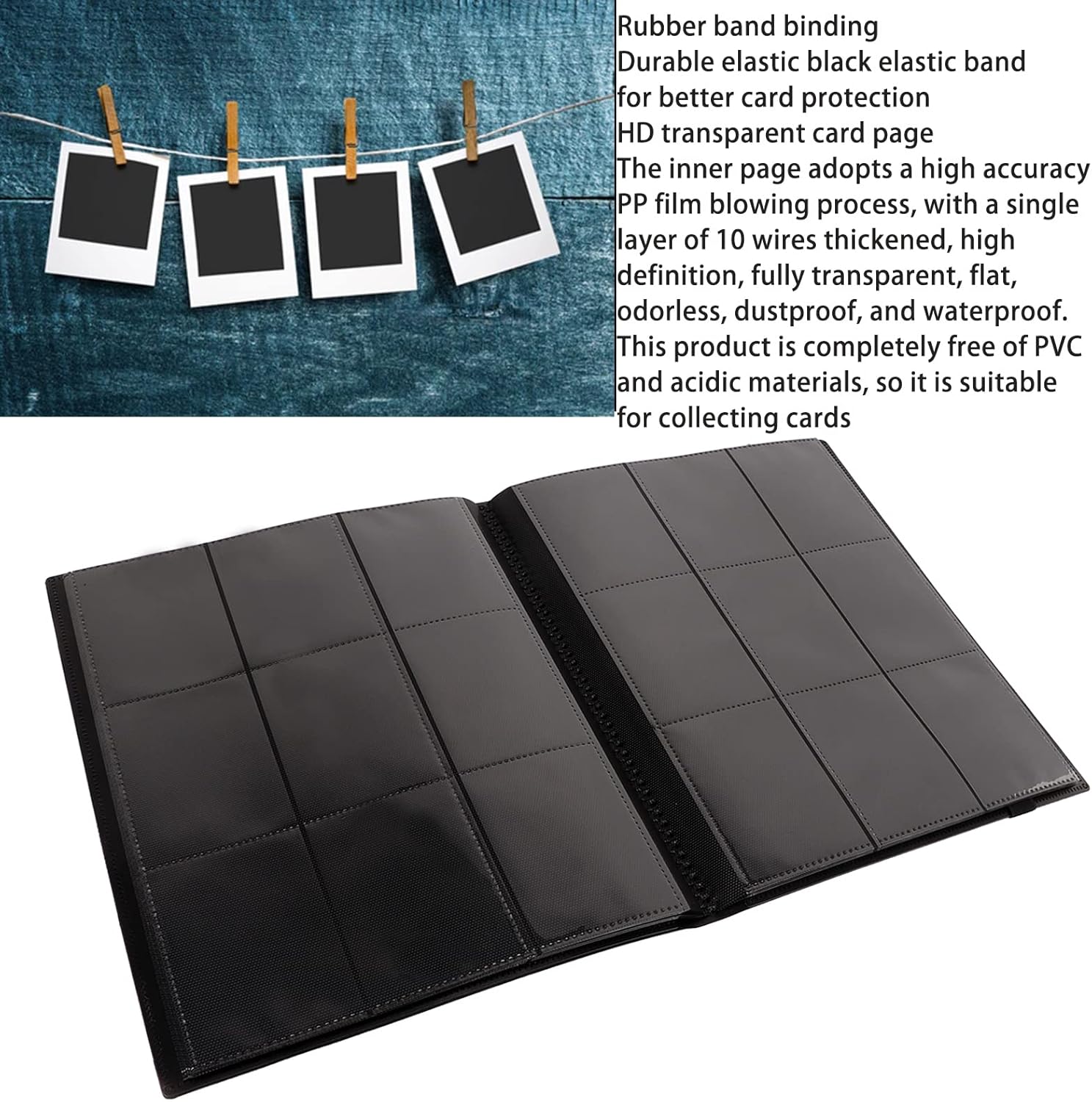 DURABLE MATERIAL: The card collection booklet is designed with a water proof and durable PP shell and transparent card sleeves, effectively preventing the cards from fading and breaking, while ensuring long-term strength. EFFECTIVE PROTECTION: This 9-pocket trading card binder offers excellent protection for your collection. It is water proof, scratch-proof, dust-proof, and loss-proof, ensuring that your cards stay safe and organized. It’s an ideal gift for collectors and enthusiasts of all ages. VERSATILE GIFT FOR COLLECTORS: The 9-pocket card binder is suitable for a variety of trading cards, including PKM transaction cards, sports cards like baseball and football, and other game cards. It is a thoughtful gift for children, friends, family, and collectors. IDEAL SIZE FOR STANDARD CARDS: Designed to hold cards up to 97x70mm in size, the card collection book is compatible with most standard trading cards, such as basketball, football, and baseball cards. It is the suitable fit for your diverse card collection. LARGE CAPACITY: With 9 pockets on each side and 40 sides in total, this card holder can store up to 360 cards. Its interchangeable card sleeves provide flexibility and ample space to accommodate a growing collection of cards.