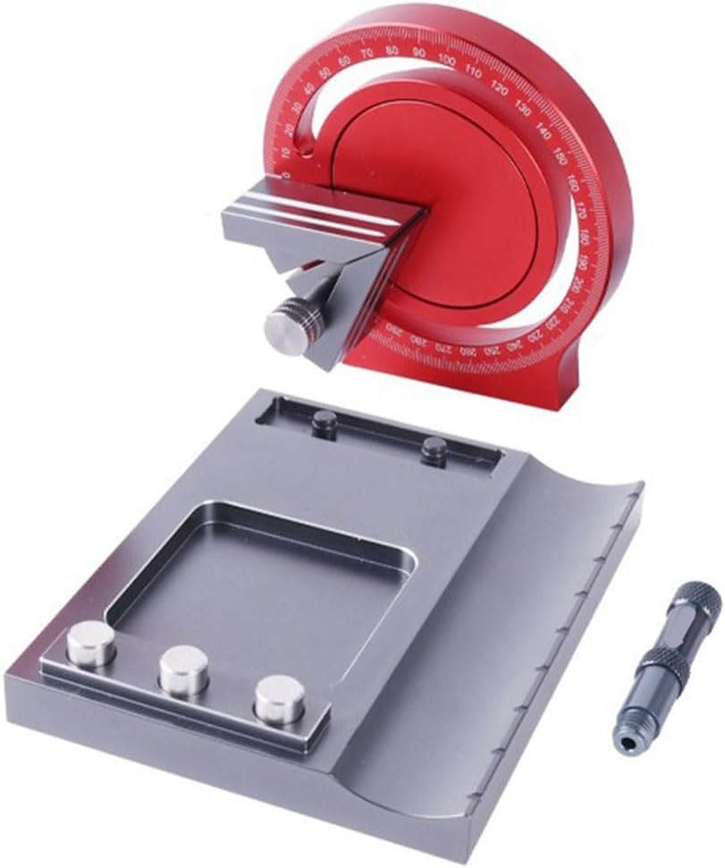 Regola il disco del costruttore, attacca la piastra e controlla con precisione in modo che la trasformazione sia più precisa. Allentare la vite della manopola in senso antiorario, rilasciare e spostare per regolare la. Allineare l'incisione dell'angolo e ruotare la manopola in senso orario per bloccarla. STRUMENTI AUSILIARI - AIUTI SOFISTICATI E FLESSIBILI - Il disco costruttore può essere ruotato di 320°. È realizzato in metallo, è durevole e resistente alla corrosione ed è contrassegnato per un allineamento preciso. AIUTO CON PIASTRE ADESIVE NEL PROCESSO DI COSTRUZIONE - Macchina angolare multifunzionale in metallo, durevole e resistente alla corrosione, dotata di deposito di colla, posizione del punto, con fissatore angolare rimovibile, progettazione ausiliaria e produzione di piastre di gomma, bella e pratica, il funzionamento del modello è più rilassato. Si possono creare diversi a seconda delle esigenze, la conversione è semplice, il builder disc può essere utilizzato indipendentemente, comodo e pratico.
