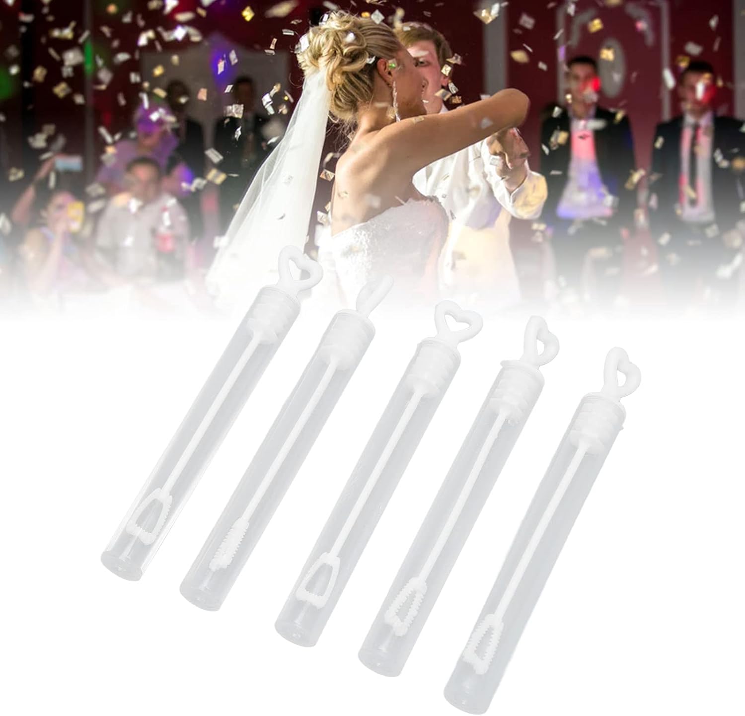 Bianco trasparente: queste bacchette a bolle sono bianche e trasparenti, il che è più conveniente per te vedere bolle rimanenti. Coperchio a forma di cuore: questi bastoncini a bolle sono progettati con coperchio a forma di cuore, che è carino e unico, facile da tenere. 96 pezzi: 96 pezzi di tubi a bolle sono confezionati insieme nella scatola, la quantità sufficiente soddisfa le tue diverse esigenze. Ampia applicazione: questi tubi a bastone da bolle sono ideali per celebrazioni per matrimoni, attività all'aperto, riunioni di famiglia, docce per matrimoni, regali per feste, anniversari, San Vale ntino, feste in piscina, compleanni a tema, ecc. Dimensioni portatili: questi contenitori a bolle sono piccoli e portatili, le dimensioni tascabili potrebbero essere popolari in ogni occasione.
