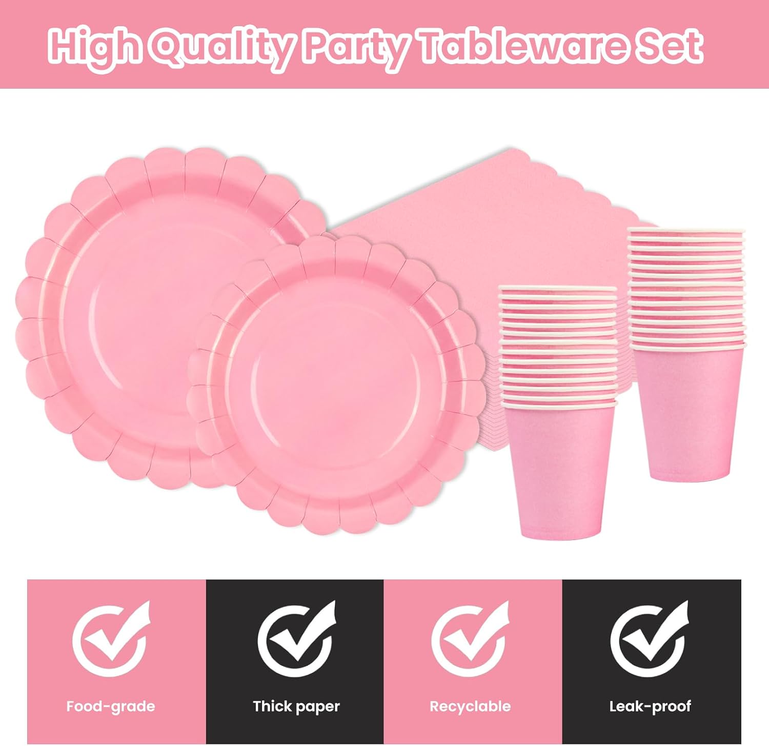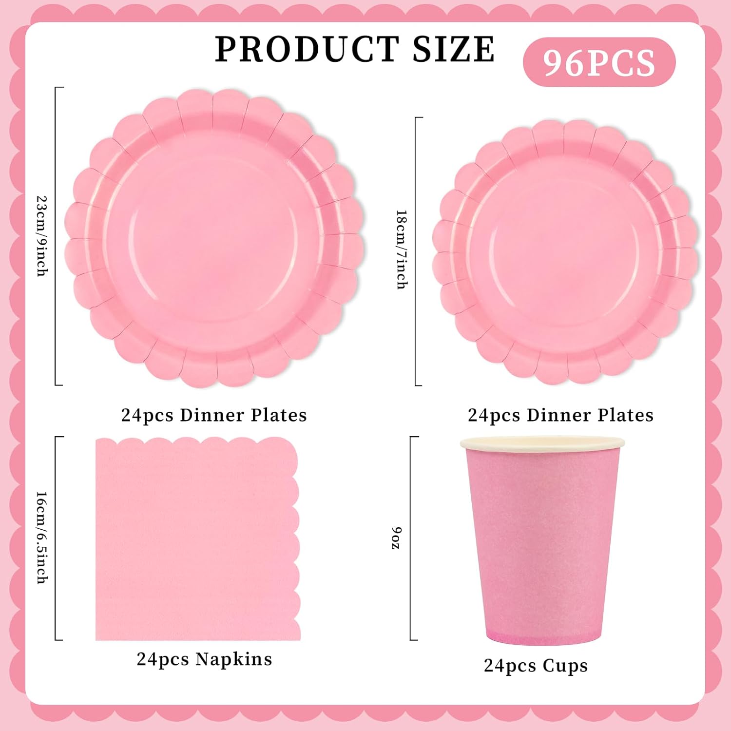 Set di 96 stoviglie per feste: questa decorazione di compleanno contiene tutto ciò di cui hai bisogno per fino a 24 ospiti: 24 piatti piani da 23 cm, 24 piatti da dessert da 18 cm, 24 tovaglioli, 24 bicchieri. Design elegante: i piatti di carta usa e getta sono dotati di bordi ondulati che aggiungono un tocco di eleganza e raffinatezza a ogni occasione. Le persone sono impressionanti. Materiale del piatto per feste: questo splendido set di stoviglie per feste è realizzato in carta pesante di alta qualità, che rende il set di stoviglie resistente, resistente all'ammollo, resistente al taglio e durevole. Realizzato in carta ecologica, sicura per la tua famiglia. Risparmiate tempo e godetevi la festa: nessuno piace pulire dopo una festa, motivo per cui abbiamo progettato questi piatti, tazze e tovaglioli usa e getta. Grazie alla carta riciclata, puoi buttarli via quando riordini dopo un evento o una festa. Risparmia tempo e senza sforzo. Passiamo più tempo con la nostra famiglia o i nostri amici. Adatto per ogni occasione: il set di piatti di carta e tovaglioli è adatto per tutti i tipi di feste, tra cui feste di compleanno, lauree, eventi sportivi, feste in piscina, feste di Natale, ecc.