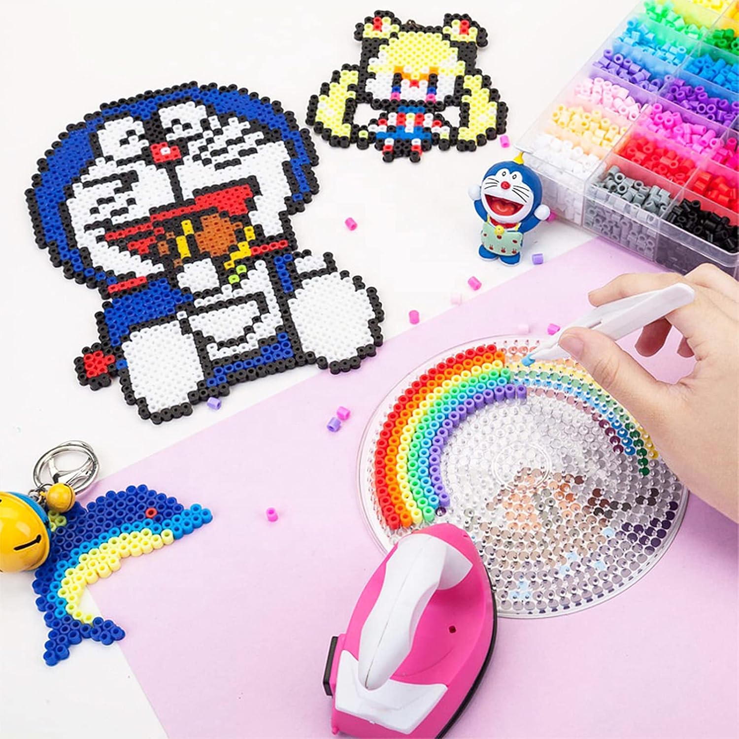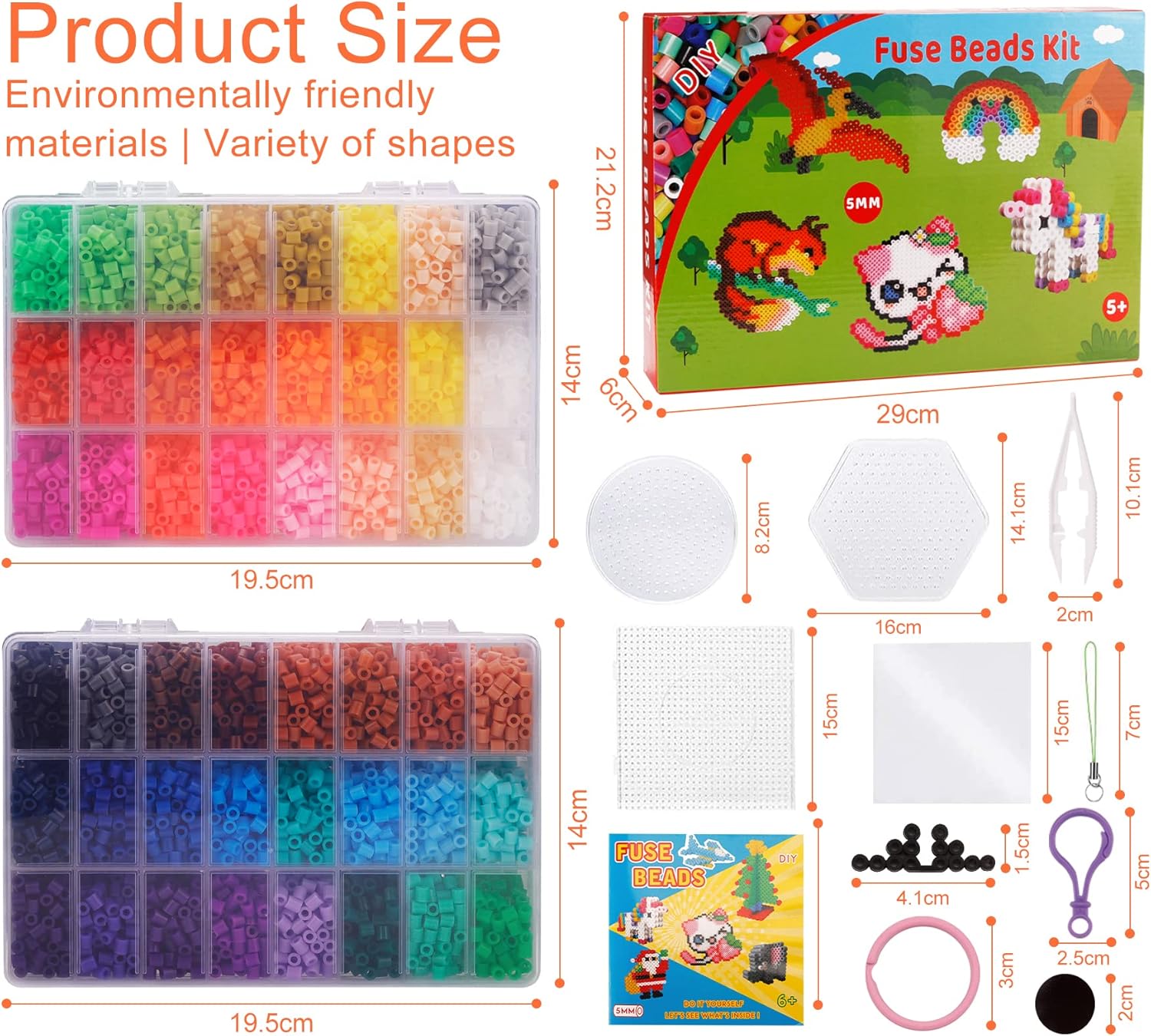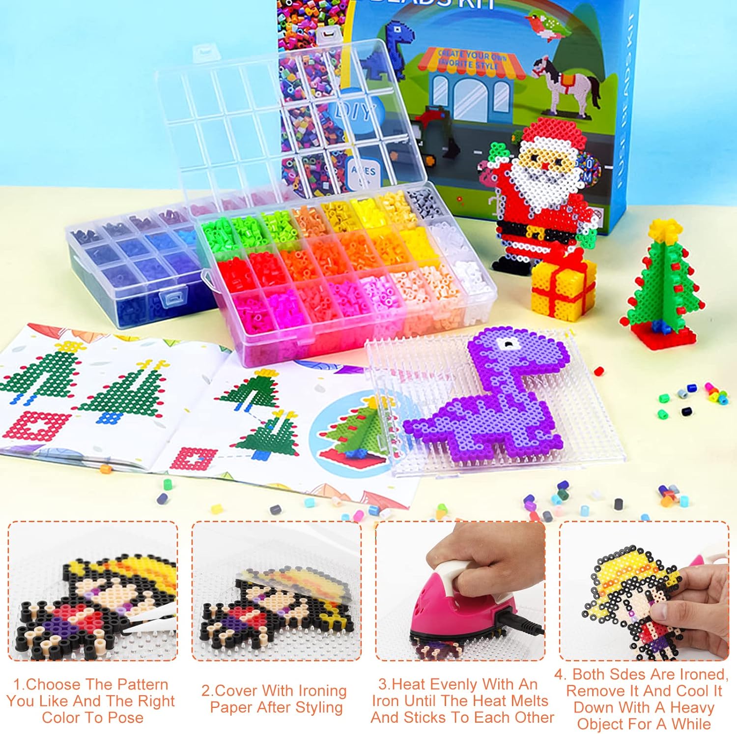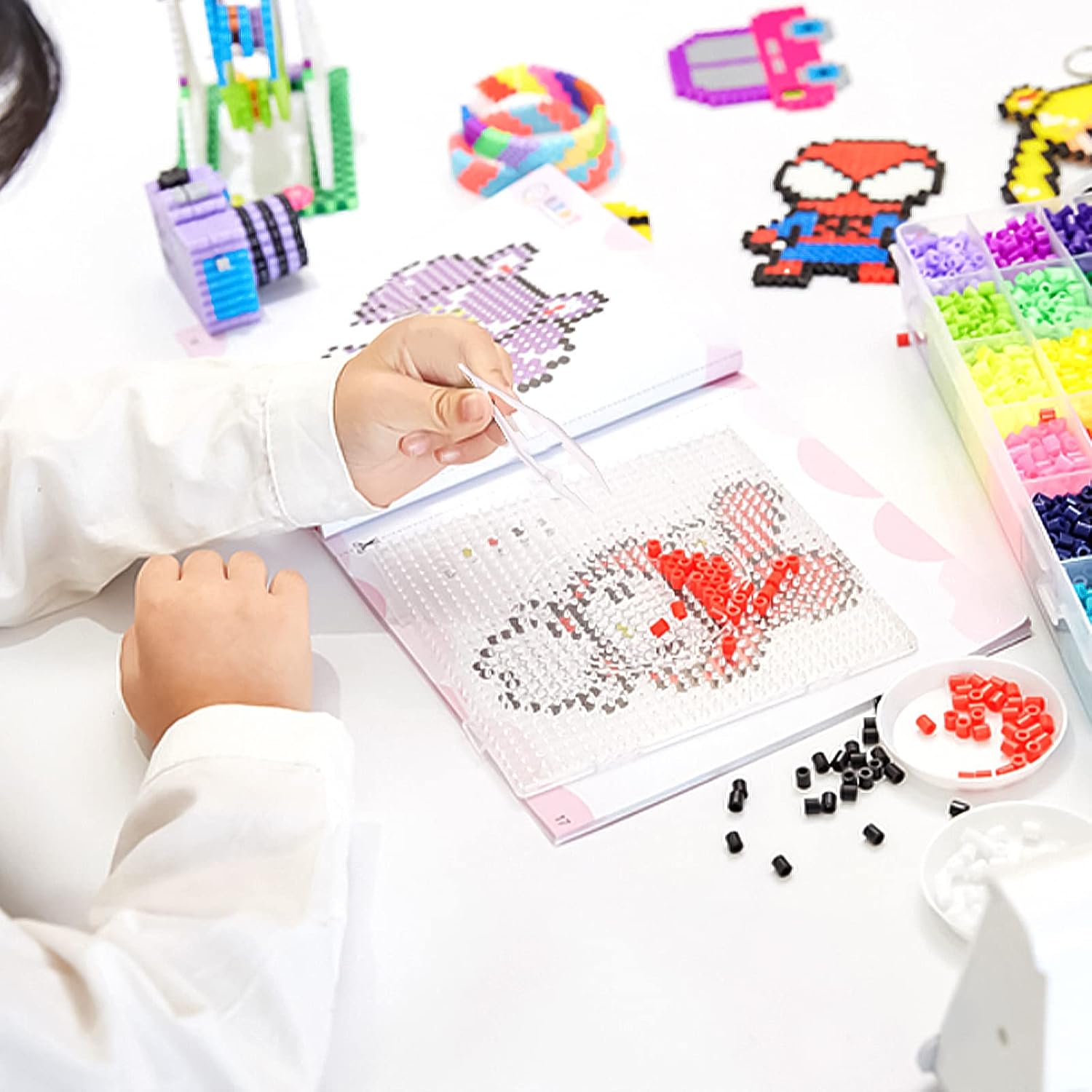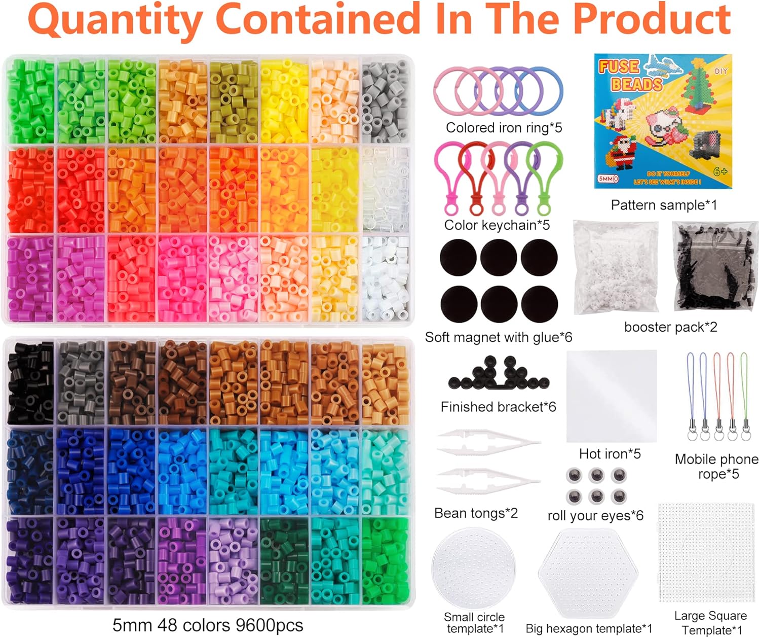 AMAYGA 48 Colori Perline a Fusibile, 9600 Pezzi 5mm Perline a Fusibile Set di Perline di Ferro per Artigianato per Bambini in Scatola Organizzatore, Kit di Perline a Fusibile con Motivo Brochure, Pannelli Forati, Carta da Stiro, Regalo per Bambini Trasparente, bianco