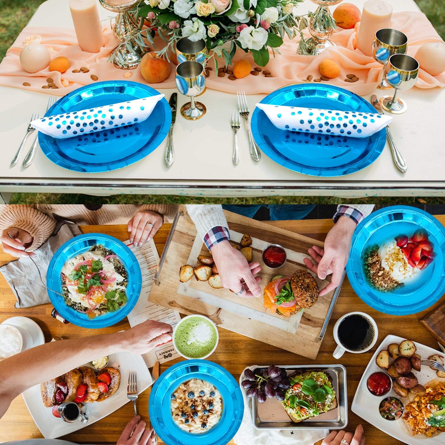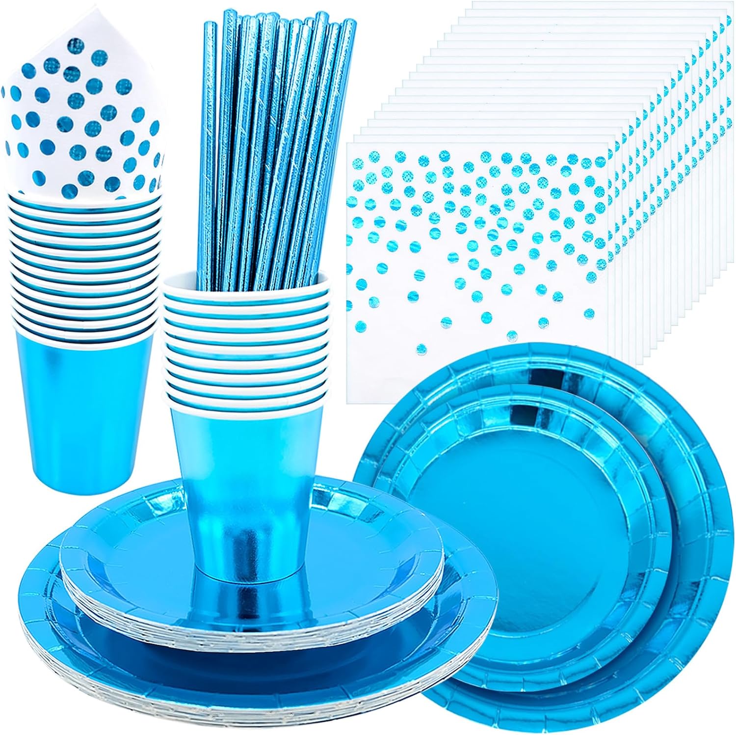 Facile da usare e smaltimento: le nostre stoviglie da festa sono eleganti e facili da usare. Dopo la festa, puoi facilmente smaltire il set di stoviglie di carta e non preoccuparti dell'inquinamento, poiché i nostri materiali sono ecologici. Ampia applicazione: adatto per feste di compleanno, matrimoni, Natale, anniversari, baby shower, Halloween, barbecue, picnic e altro ancora. Mix and match per creare l'impostazione perfetta della festa Materiale ecologico: le posate sono realizzate in carta biodegradabile, che è forte, durevole, sicura ed ecologica. Non facile da strappare, perfetto per quasi ogni occasione. Stoviglie di carta per banchetti: contiene 12 pezzi da 7 pollici, 12 pezzi di piatti di carta da 9 pollici, 25 tovaglioli, 25 pezzi di tazze e 25 pezzi di cannucce. Ideale per decorare il vostro supporto per dessert o tavolo da pranzo Set di stoviglie blu da 99 pezzi: elegante sfondo blu e delicato motivo a pois sui tovaglioli aggiungono un tocco unico alla vostra festa, utilizzabile anche come decorazione e si adatta a qualsiasi tema banchetto