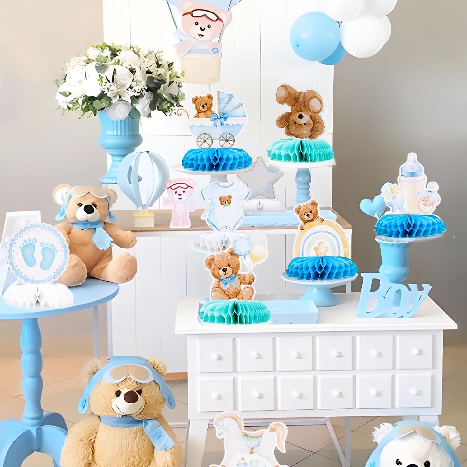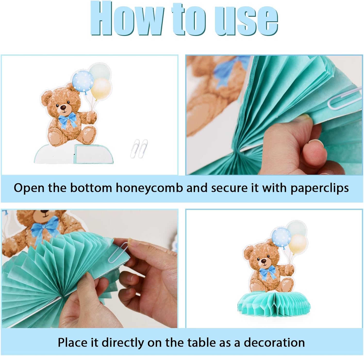 🐻【CONFEZIONE】: 9pz centrotavola battesimo bimbo con base a nido d’ape, a tema orsetto adorabile. 🍼【MATERIALE】: Decorazione battesimo bimbo realizzata in carta, leggero e facile da posizionare sul tavolo, con un bel effetto 3D. 🌈【FACILE DA MOMTARE】:Basta aprire la carta a nido d'ape, poi fermare i due lati usando la graffetta inclusa per formare una decorazione battesimo nascita tridimensionale per il tavolo. 💙【DESIGN RAFFINATO】: Centrotavola con una bellissima raccolta di elementi classici dell’orsetto per festa dei bimbi, nel colore blu vivace a tema, ideale per addobbare il tavolo, aggiungendo un’atmosfera calda. 👣【SCENE APPLICABILI】: Decorazione perfetta e addobbi classici per tavolo nel occasione battesimo bimbo, nascita, compleanno, decorazioni baby shower del bambino, gender reveal party decorations.