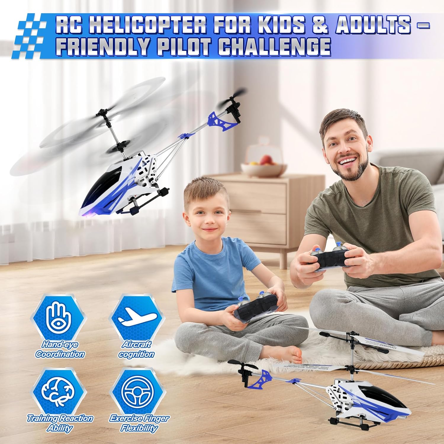 Prestazioni potenti con Turbo Boost: Questo elicottero radiocomandato è dotato di un pulsante dedicato per l'accelerazione turbo e di un telecomando a 2,4 GHz per un funzionamento stabile a lunga distanza. Che tu stia volando in ambienti interni o esterni, offre un controllo veloce e reattivo che entusiasma sia bambini che adulti. Dimensioni maggiori, divertimento più grande: Progettato con una fusoliera sovradimensionata, questo elicottero radiocomandato si distingue per la visibilità, la stabilità e la presenza in volo. La sua scala maggiore lo rende più facile da manovrare e più impressionante durante il volo – perfetto per chi vuole qualcosa di più di un semplice mini giocattolo. Volo stabile per tutti i livelli di abilità: Dotato di un motore di bilanciamento giroscopico e di un sistema di controllo a 6 direzioni, questo elicottero giocattolo garantisce un volo fluido e manovre precise. Ideale sia per i principianti che per i piloti esperti, rende il volo intuitivo e gratificante. Design sicuro e durevole: L’elicottero radiocomandato per adulti e bambini include eliche di ricambio per una sostituzione rapida e ricarica USB con protezione del circuito integrata per evitare il sovraccarico. Un’esperienza di volo sicura e duratura. Divertimento per bambini e adulti: Che tu lo regali come elicottero radiocomandato per bambini o lo utilizzi come hobby da adulto, questo elicottero versatile offre ore di intrattenimento. La luce LED frontale aumenta la visibilità notturna, ideale per momenti in famiglia o avventure aeree in solitaria.