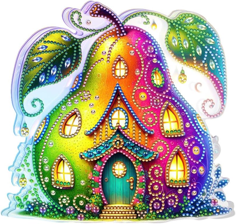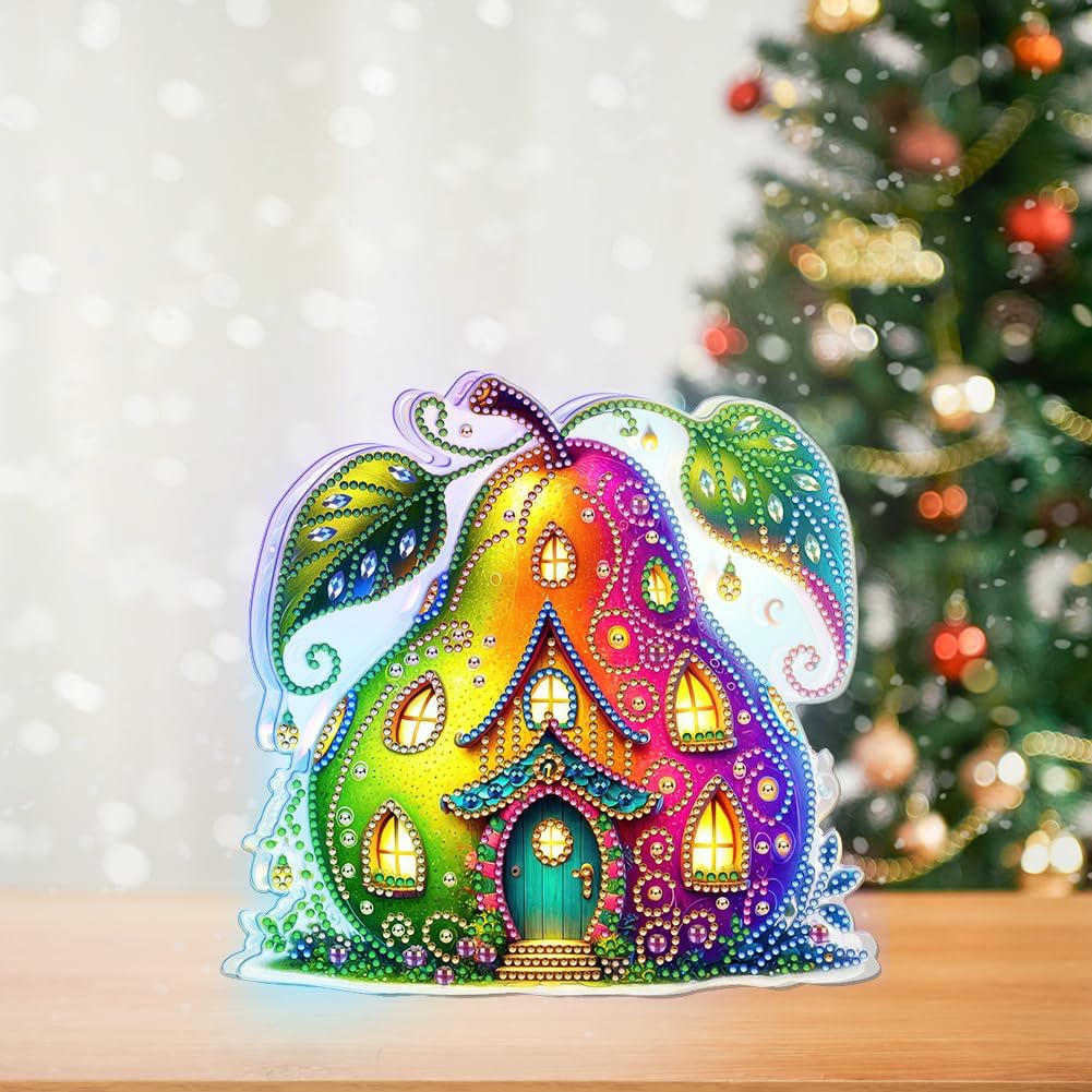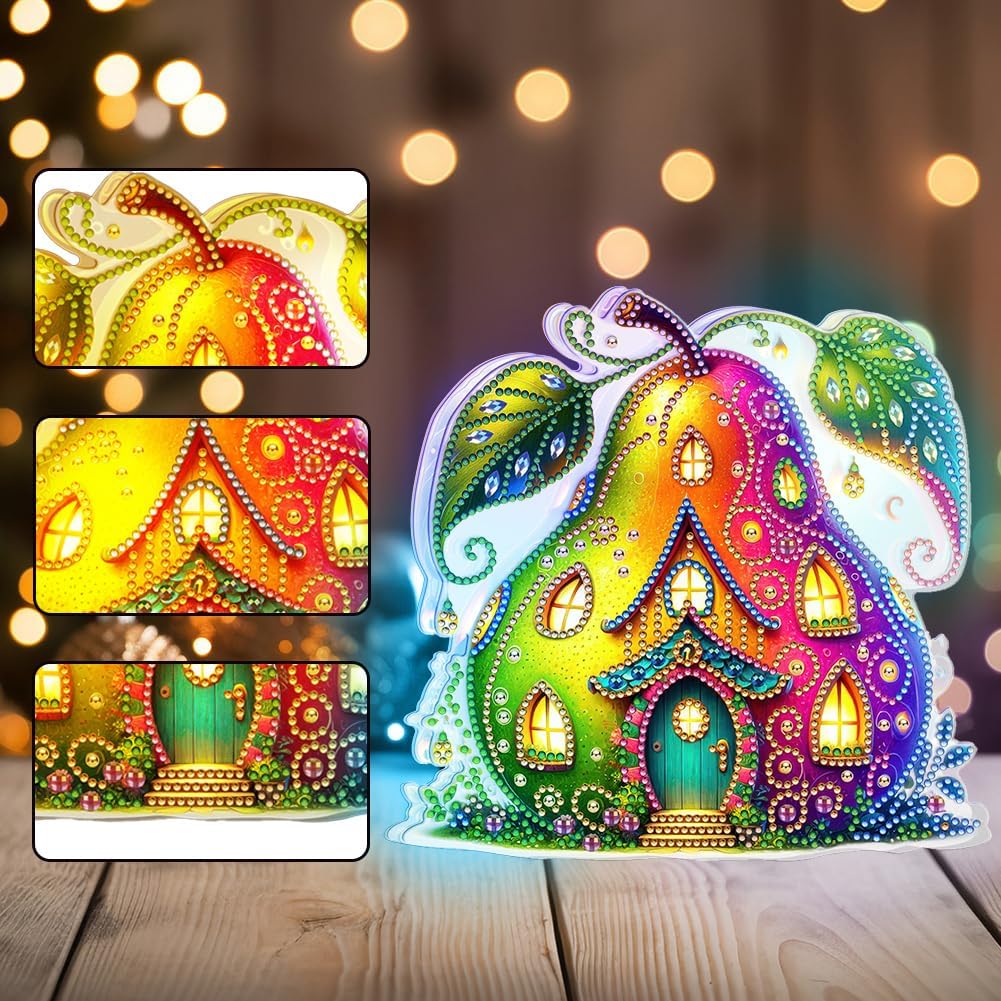 Lampada da comodino con pittura a diamante, forma speciale, a doppia faccia, casa della frutta, arte del diamante, ornamenti luminosi, lampada decorativa con diamante 5D fai da te