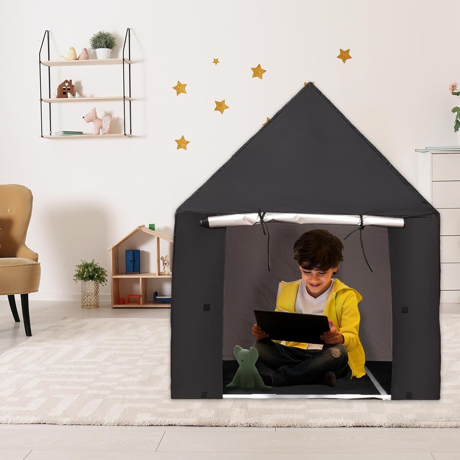 Facile da indossare: goditi un sonno migliore con il nostro letto blackouts Design affidabile: la tenda per dormire Black Out è costruita con tessuti Oxford pesanti e offre una durata senza danni o deformazioni per garantire un uso duraturo su cui puoi contare su cui puoi contare Facile da usare: consente a 1-2 bambini di muoversi per il comfort, garantendo al contempo un sonno riposante. Viene fornito con una porta alta e ampia cerniera per un facile ingresso e uscita Facile da riporre: assicura una memoria facile e veloce, progettato con un approccio salvaspazio per un facile trasporto AMPIA APPLICAZIONE: la tenda per dormire nera per la creatività e l'esplorazione offre un ambiente tranquillo e tranquillo, perfetto per i bambini per approfondire l'apprendimento e il gioco fantasioso