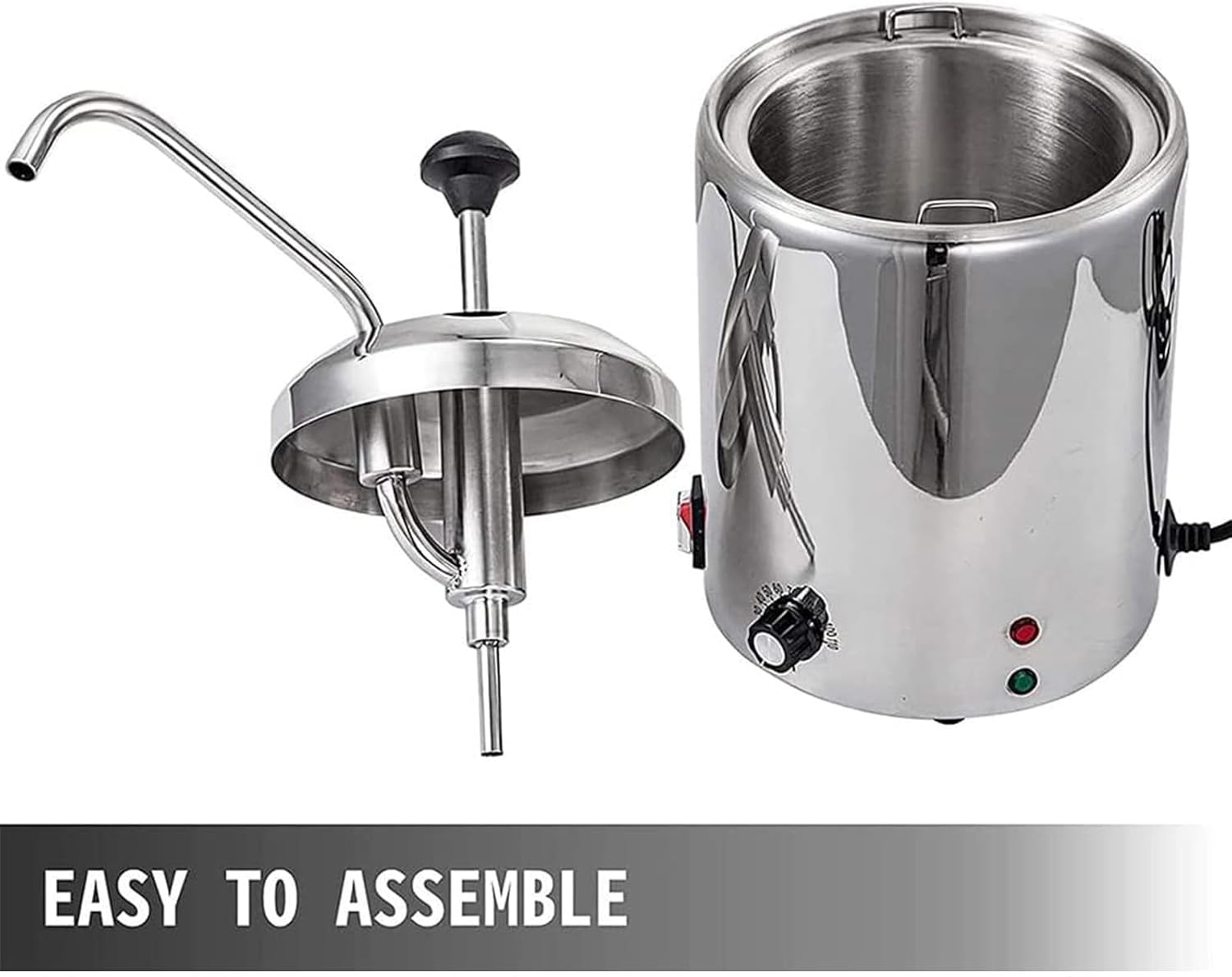 Grande capacità e produzione] - è incluso un serbatoio di riscaldamento da 2,5 litri, in grado di accettare una grande quantità di formaggio caldo o fondente. Una singola pompa può produrre 10-30 ml di fondente caldo alla volta. Ampia applicazione] - il riscaldatore per fondente caldo con pompa può essere utilizzato per sciogliere burro fuso, fondente, formaggio, caramello, topping al burro, peperoncino, fondente. Ampiamente usato in fast food, mense, stazioni di snack, ecc. Qualità premium] - questo distributore di caramelle calde adotta acciaio inossidabile per uso alimentare, con una superficie spazzolata. Tutte le parti a contatto con gli alimenti sono realizzate in acciaio inox 304. Facile da usare] - la pompa per salsa di formaggio è progettata con un pulsante rotante per una facile regolazione della temperatura. Con un intervallo di temperatura di 30-110 °C (86-230 °F). È progettato per mantenere caldi e pronti da servire i condimenti più popolari o i condimenti. Servizio: Se avete domande su questo prodotto, non esitate a contattarci, vi risponderemo entro 24 ore!.