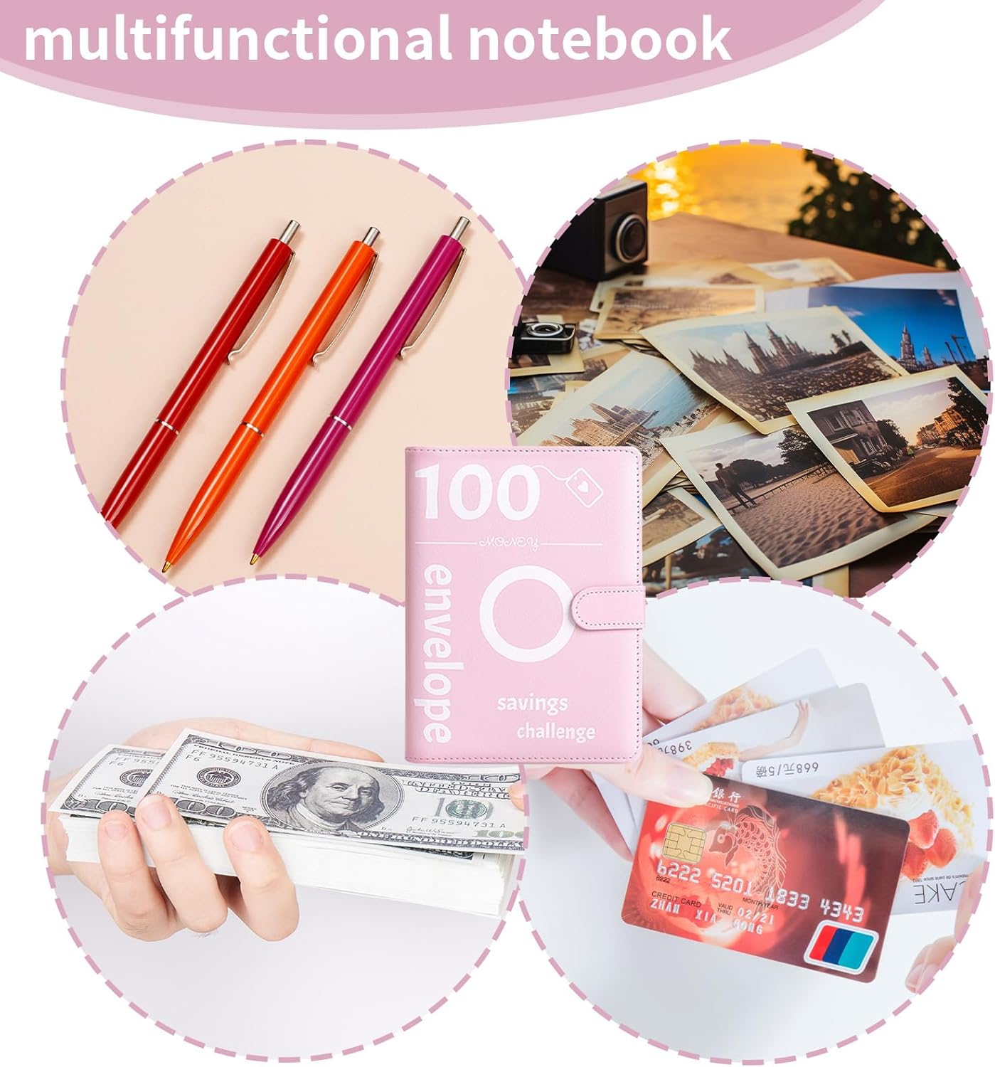 Materiale di Alta Qualità: Money binder italiano realizzato in pelle pu, atossica e innocua, può essere utilizzato con fiducia, ha una buona durata, protegge il contenuto all'interno del registro da danni, impermeabile e resistente alle cadute, processi di stampa e rilegatura squisiti, può mantenere un buon aspetto senza essere facilmente danneggiato durante l'uso a lungo termine Caratteristiche del Prodotto: Agenda risparmio soldi con buste in italiano in combinazione con il design moderno del registro, non solo mantiene la praticità delle sfide di risparmio, ma migliora anche l'esperienza dell'utente attraverso la flessibilità e la personalizzazione del registro, puoi vedere chiaramente I risultati della sfida e ricevere feedback positivi per aumentare la tua fiducia e la motivazione per raggiungere I tuoi obiettivi e coltivare buone abitudini Decorazione Fai da Te: Il libro del risparmio la partizione in PVC e il design del piccolo foro non sono solo utilizzati per immagazzinare denaro, ma forniscono anche uno spazio di decorazione personalizzato in cui è possibile aggiungere I propri tag, adesivi, foto, ecc, rendendo il registro più personalizzato e memorabile Facile da Usare: Challenge del risparmio il layout e il design sono semplici e chiari, facili da usare, comodi da trasportare e conservare, etichettati con numeri da 1 a 100, rendendo più facile per gli utenti organizzare e gestire le proprie finanze e piani di sfida, il pvc trasparente rende il contenuto chiaro a colpo d'occhio, rendendo facile da trovare e organizzare Scenari Applicativi: Libro risparmio soldi principalmente mirati agli obiettivi di sfida del risparmio, ma gli utenti possono usarlo in più campi in base alle loro esigenze personali, come la gestione della salute, il monitoraggio del lavoro, ecc, è uno strumento pratico quotidiano adatto per la gestione finanziaria personale, coltivando abitudini di risparmio e può anche essere dato come regalo agli amici