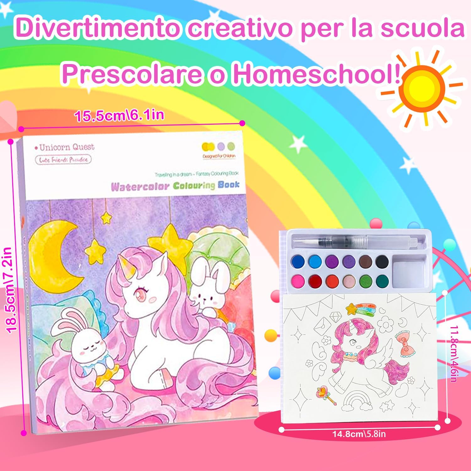 【Libri da Colorare con Acqua Bambini】Dipingi con l'acqua e prova un modo diverso di divertirti con la pittura! Questo libro magico da colorare acqua contiene 24 pagine a tema pony che stimolano l'immaginazione dei bambini e alimentano la loro creatività fin dalla tenera età, senza sporcare 【Design 3 in 1】Combina colori, pennelli e un libro da colorare tutto in uno! Realizzato in materiale spesso e che non sbava, questo album da colorare per bambini è perfettamente adatto ai più piccoli. Ogni pagina può essere facilmente strappata, consentendo a bambini e bambine di regalarle come bigliettini ai loro migliori amici 【Giochi da Viaggio Bambini】Questo libro acqua bambini magico misura 7,28 x 6,18 x 0,75 pollici, con pagine interne da colorare che misurano 5,86 x 4,64 pollici, rendendolo facile da trasportare e un ottimo compagno di viaggio. Tiene i bambini impegnati per ore in aereo, durante i lunghi viaggi o nei momenti di tranquillità a casa! 【Promuove lo sviluppo delle abilità】L'uso dei libro che si colora con acqua favorisce lo sviluppo delle capacità motorie fini e della coordinazione occhio-mano nei bambini. Questa attività artistica educativa migliora la concentrazione e l'espressione artistica nei bambini dai 3 ai 12 anni 【Il Regalo Perfetto per Bambini e Bambine】Che si tratti di un compleanno, una festa o una sorpresa speciale, questo set di magic water book è un regalo delizioso. Offre ore di divertimento e intrattenimento senza sporcare-la scelta ideale per ispirare i giovani artisti