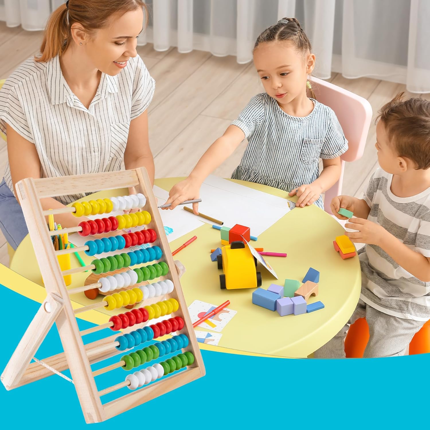 Perline scorrevoli lisce: ciascuna delle 10 file è dotata di perline facili da far scorrere, progettate per un movimento senza sforzo..Questa esperienza tattile migliora la coordinazione occhio-mano e le capacità motorie, intrattenendo i bambini mentre imparano. Robusta struttura in legno: realizzata in legno ecologico, la struttura garantisce che l'abaco resista al gioco energico..I bordi lisci e le superfici lucide offrono un'esperienza di apprendimento sicura per le mani dei più piccoli. Colori vivaci e accattivanti: progettato con perline vivaci e multicolori, questo abaco cattura l'attenzione dei bambini e incoraggia il riconoscimento precoce dei colori rendendo la matematica divertente e coinvolgente. Strumento educativo e versatile: perfetto per i bambini dai 3 anni in su, questo abaco aiuta a insegnare il conteggio di base, l'addizione, la sottrazione e persino la moltiplicazione..È un modo eccellente per sviluppare le prime abilità matematiche e il pensiero logico, fungendo anche da ottimo strumento per l'apprendimento dell'alfabeto e il riconoscimento dei modelli. Perfetto: ideale per compleanni, vacanze o preparazione scolastica, questo abaco è eccellente per gli studenti curiosi..È uno strumento educativo senza tempo che combina il gioco con lo sviluppo di abilità, incoraggiando l'esplorazione indipendente e la risoluzione dei problemi.