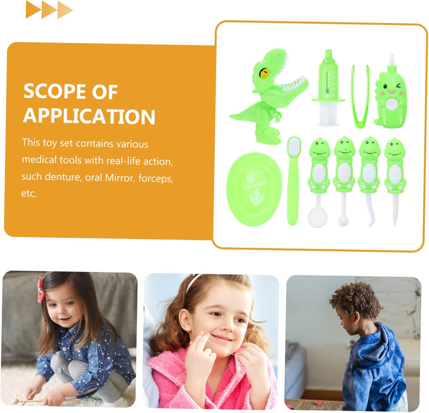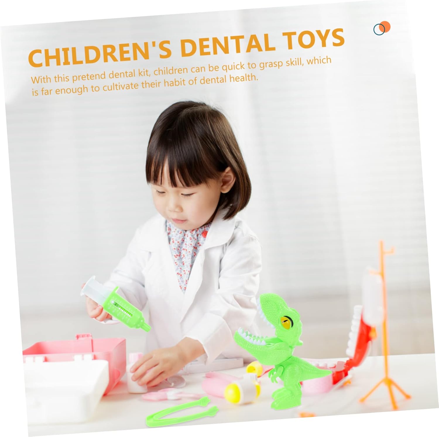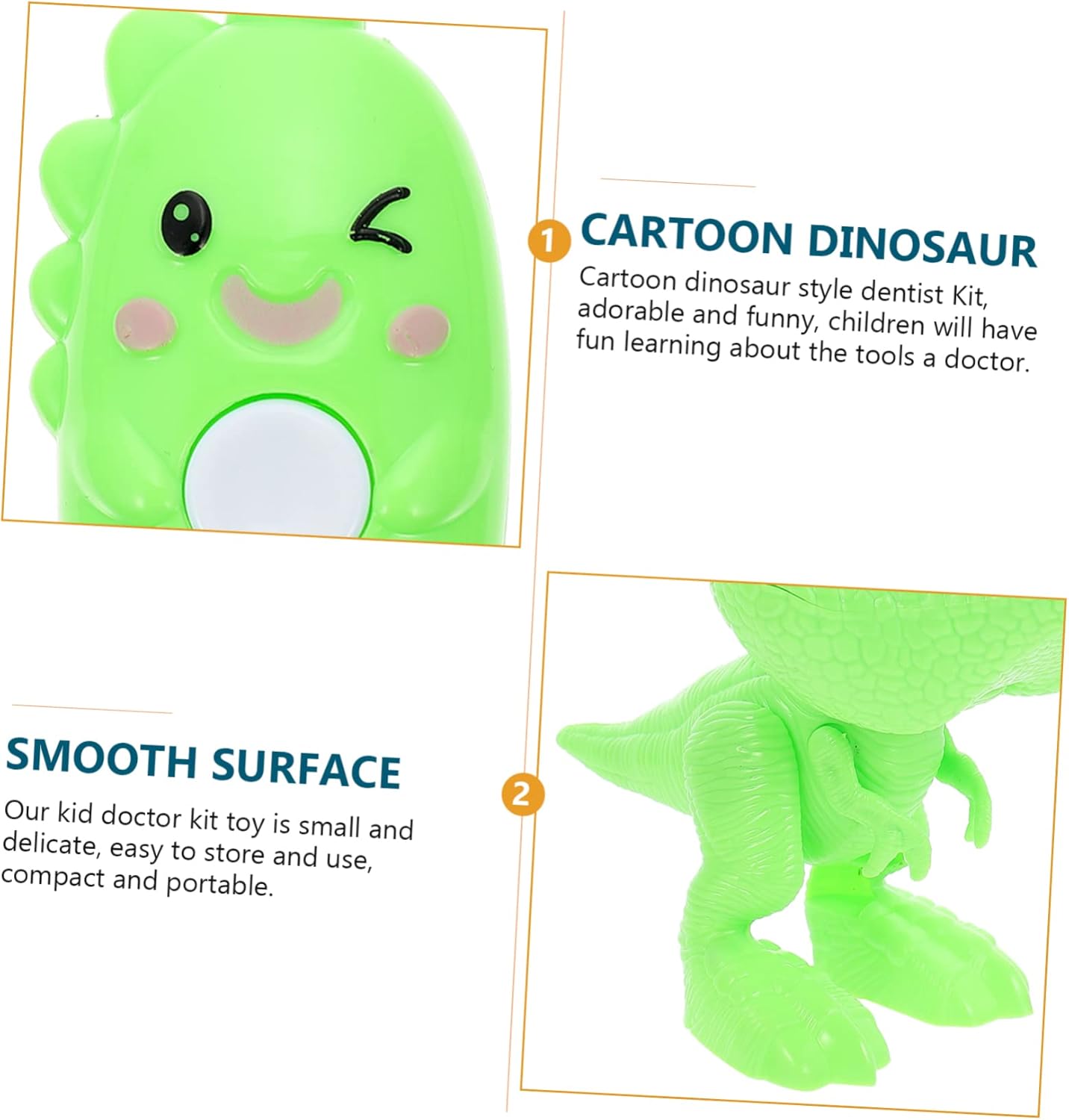 Giocattoli da dottore: aiutano a sviluppare l'empatia, a comprendere le responsabilità di un medico e a migliorare la coordinazione manuale e occhio-mano. Kit modello: aiuta i bambini a conoscere l'ospedale e a calmare le paure legate al medico mentre impegnano nel gioco di ruolo. Giocattolo da dottore: questo kit giocattolo presenta una forma di dinosauro unica ed è molto divertente con cui giocare, divertente per i bambini che giocano. per bambini: kit da dentista in stile dinosauro cartone animato, adorabile e divertente, i bambini divertiranno a conoscere gli strumenti di un medico. Strumenti per bambini: questo divertente kit da dentista dal design di dinosauro sarà più attraente per i bambini rispetto ai tradizionali giocattoli da dentista.