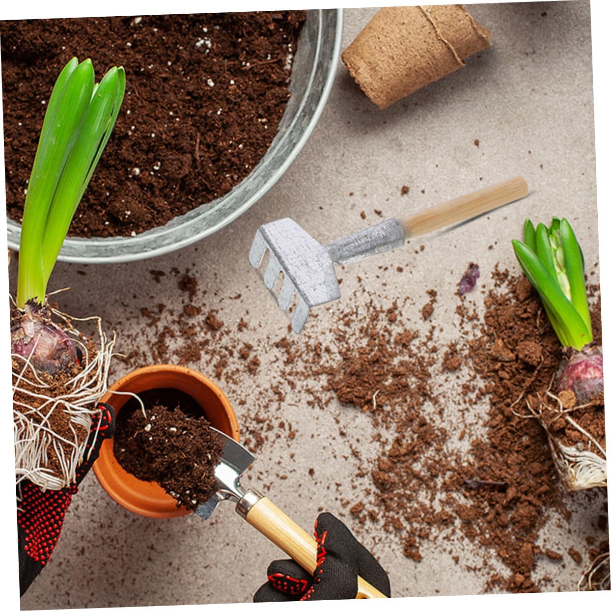 Piccolo rastrello da giardino: la forma realistica e la lavorazione pregiata conferiscono un'atmosfera maliziosa al giardino, micro ornamenti paesaggistici Strumento da giardinaggio: dotato di un design di modellazione di modelli artificiali, rende più divertente l'arredamento del tuo giardino esterno, attrezzi da giardino per esterni Kit di attrezzi da giardinaggio: dotato di capacità di resistenza alla rottura, questo grazioso è molto durevole, grazioso di attrezzo Decorazione modellante con rastrello: e texture semplici per creare un senso di realtà alla scultura, riempi il tuo giardino di divertimento, piccolo rastrello Mini attrezzi da giardino: leggeri, compatti, portatili da usare, posizionare e portare con sé, puoi sperimentarne la praticità, strumento di decorazione