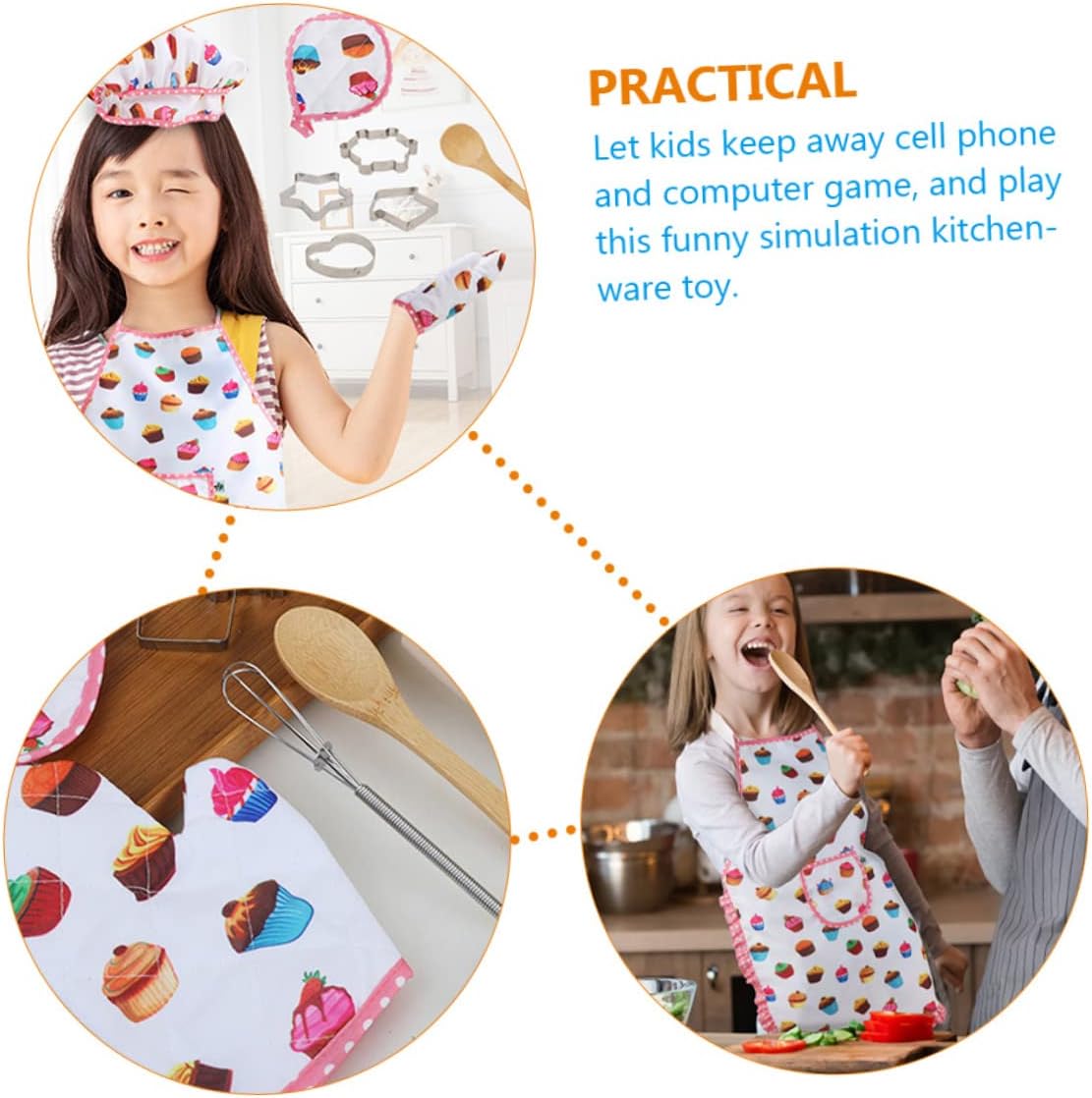Cappello da chef e grembiule per bambini: potresti inviare questo completo da chef per bambini ai tuoi bambini come regalo e saranno felici e apprezzeranno. Giocattoli da cucina: il kit di giocattoli simulati per stoviglie consente ai bambini di essere dei bravi bambini che lavorano sodo. Grembiule da cucina per bambino: il giocattolo da cucina è sicuro per i bambini, rendi felice il tuo piccolo chef nella sua casa da gioco. Grembiule da bambino e cappello da cuoco: creativo e divertente, questo giocattolo di simulazione di utensili da cucina porterà un'infanzia felice ai tuoi bambini. Giocattoli finti da cucina: ha un design divertente e creativo, che ne garantisce popolarità e praticabilità tra i bambini.