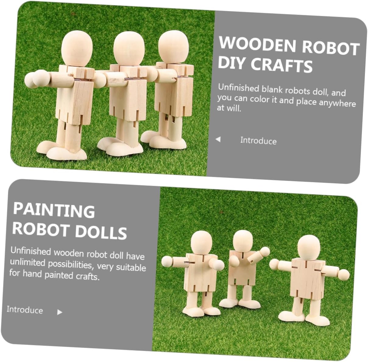 Piccole bambole di legno - realizzate in robusto materiale di legno, sicuro da usare, molto interessante, ornamento di legno Decorazioni fai da te in legno: un fantastico fai da te per te, i tuoi amici, la tua famiglia, ecc., perfetto per graffiti, pittura e disegno, robot in legno fai da te Giocattoli in legno per dipingere: il design semplice e adorabile a forma di robot rende queste bambole in legno adatte perfettamente all'uso decorativo, bambola vuota Decorazione di progetti artigianali: puoi colorare e disegnare liberamente motivi sulla superficie del legno per creare decorazioni uniche, artigianato di robot in legno Modelli di robot di bambole di legno: il kit di bambole di legno è un meraviglioso per le persone che amano collezionare questo tipo di artigianato, figure di legno regolabili con giunzioni