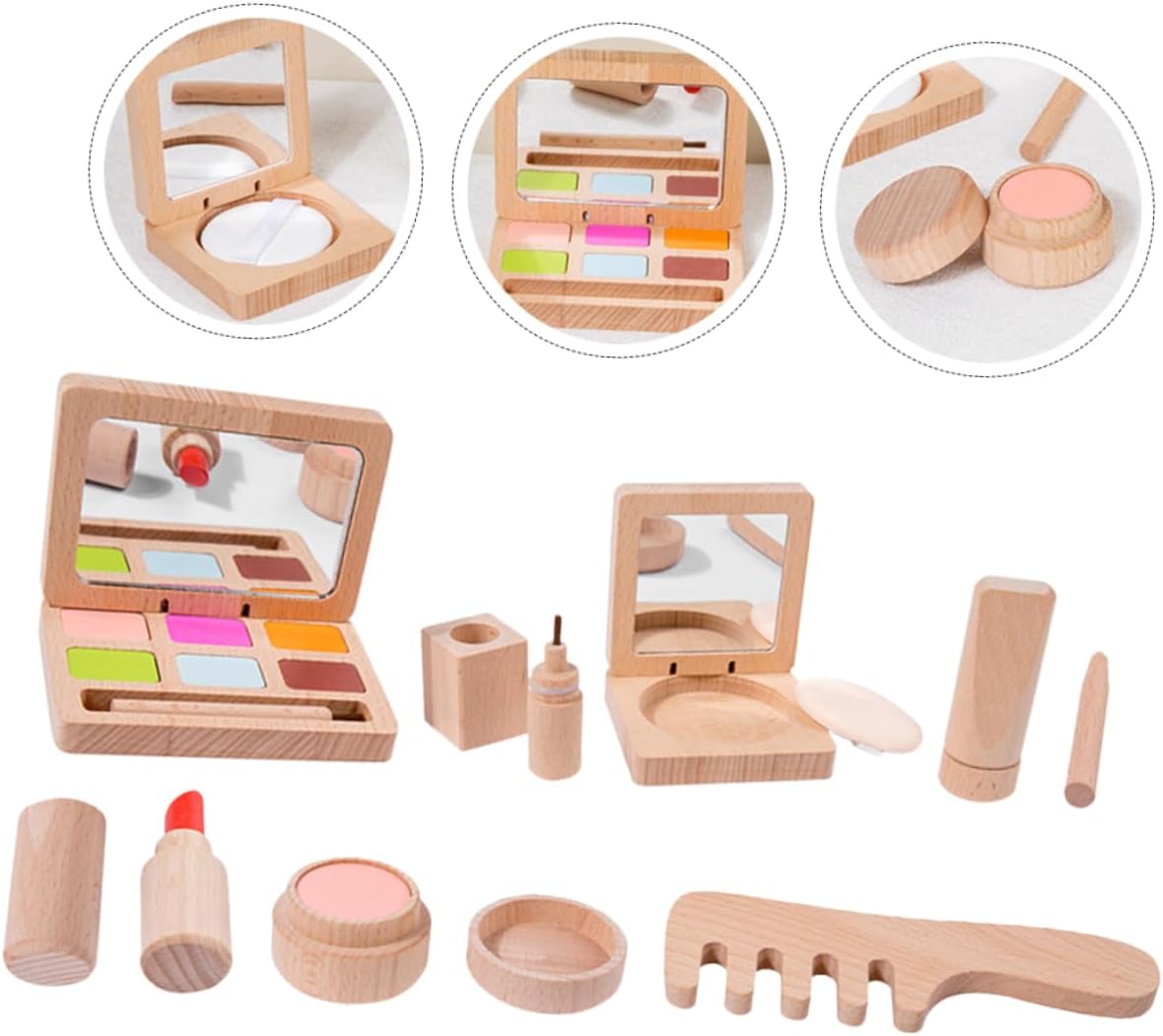 Trucco: aiuta i bambini a conoscere gli strumenti e le abilità del trucco attraverso giochi di ruolo, set di cosmetici per ragazze, giocattoli per il trucco per ragazze, con simulazione di scene che insegna qualcosa ai bambini e aumenta il loro interesse nell'applicazione del trucco. Giocattoli in legno per saloni di bellezza Giocattoli in legno per saloni di bellezza - contiene una varietà di strumenti comunemente usati dagli artisti della toeletta e può soddisfare le esigenze di gioco, Trucco per bambini dagli 8 ai 12 anni Salone di bellezza in legno: il set realistico per il trucco del salone di bellezza rende il gioco di ruolo più realistico e porta giochi di ruolo, Per i saloni di bellezza - appositamente progettato per, leggero e facile da usare, sicuro e delicato, un eccellente set da gioco per il trucco Choice