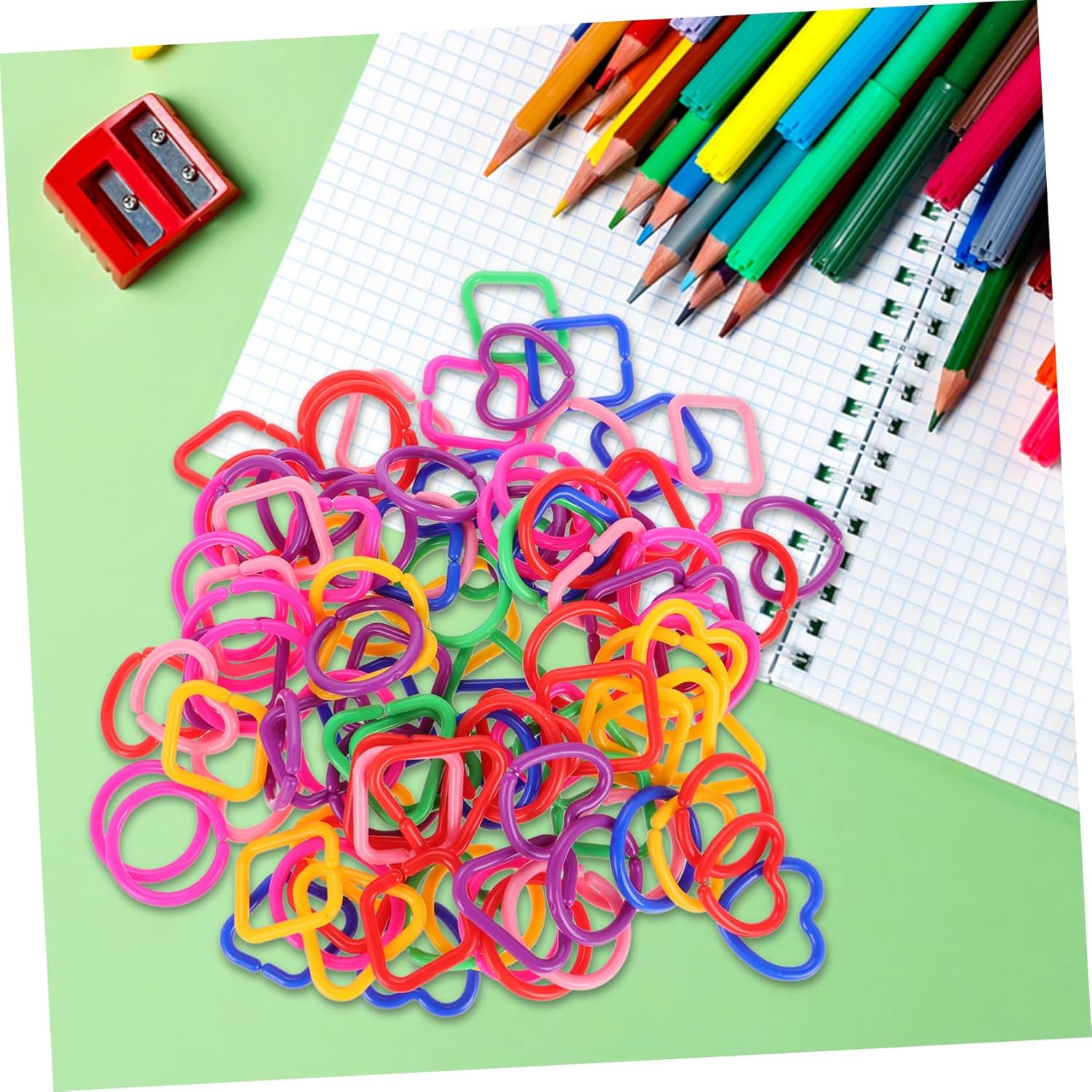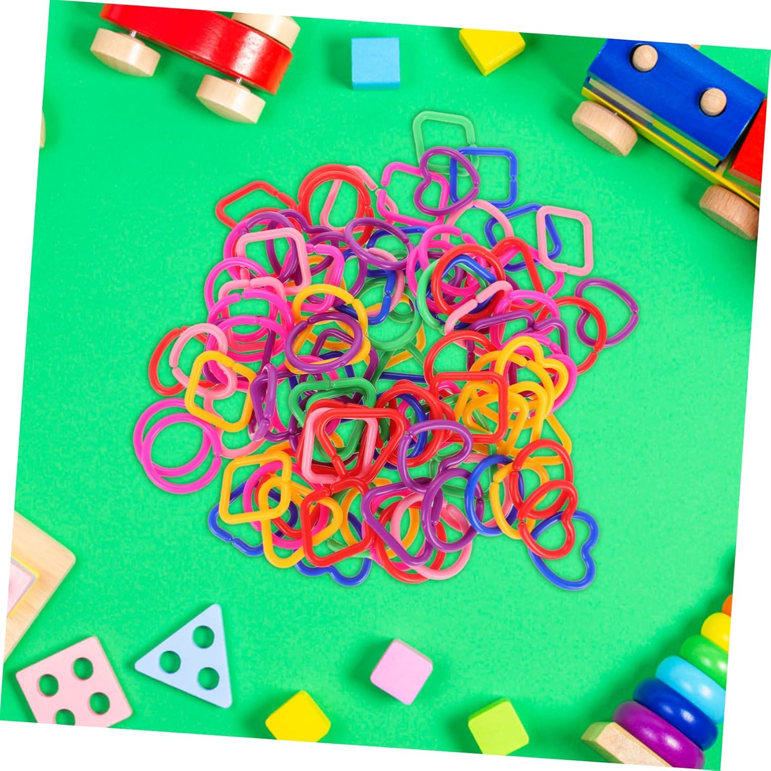 Osservazione migliorata: le catene di collegamento geometriche consentono ai bambini di osservare e comprendere forme e diversi, potenziando le loro capacità cognitive Creativo: i bambini possono mescolare e abbinare i collegamenti per formare varie forme, incoraggiando la creatività e il gioco fantasioso Abilità di coordinazione: infilare gli anelli nelle catenelle aiuta i bambini a migliorare la coordinazione occhio-mano e le capacità motorie Plastica: realizzati con materiali sicuri, questi giocattoli sono progettati per essere sicuri per i bambini, garantendo ai genitori la massima tranquillità Ambienti di apprendimento multipli: perfetti per la scuola e la casa, questi giocattoli offrono un'esperienza di apprendimento versatile