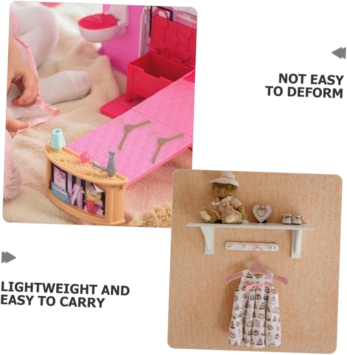 Eleganti e funzionali: unendo e praticità, queste grucce aggiungono un tocco raffinatezza a qualsiasi guardaroba per bambole, manichini da esposizione, mini grucce Soluzione archiviazione completa: queste grucce sono adatte per organizzare vestiti per bambole, accessori in miniatura e persino per animali domestici, accessori per mini case delle bambole, vestiti per manichini Compatti ed efficienti: questi ganci aiutano a mantenere i vestiti della ordinatamente organizzati, sfruttando al massimo negli armadi in miniatura, nell'esposizione degli , negli appendiabiti per vestiti delle bambole in plastica Installazione rapida e : progettati per una facile installazione, questi ganci possono essere rapidamente installati in qualsiasi guardaroba per bambole o armadio in miniatura, grucce per , piccolo armadio per bambole Facile installazione: progettati per la praticità, questi ganci possono essere facilmente installati in qualsiasi guardaroba per bambole o armadio in miniatura, risparmiando e fatica, ganci per vestiti per bambole, mobili per case delle bambole