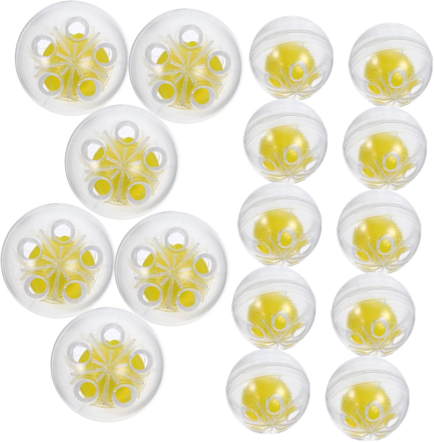 Accessori per la produzione di rumore: il suono forte può soddisfare efficacemente il tuo animale domestico e il tuo , giocattolo infantile. Giocattoli per neonati: solo possono essere usati per riparare le tue bambole di peluche rotte, ma possono anche essere usati accessori per giocattoli per animali domestici, giocattoli per bambini. Creatore di suoni per giocattoli: questi giocattoli a sonaglino per bambini contengono piccole palline di plastica per farli produrre suoni, sostitutivi del peluche. Accessorio sonaglio fai da te: questo articolo è realizzato con materiale di alta qualità per un uso duraturo, scatole ad anelli in plastica. Giocattoli per bambini: piccoli, il che significa che possono adattarsi passeggino, marsupio o alla culla, ecc., giocattolo a sonaglino.