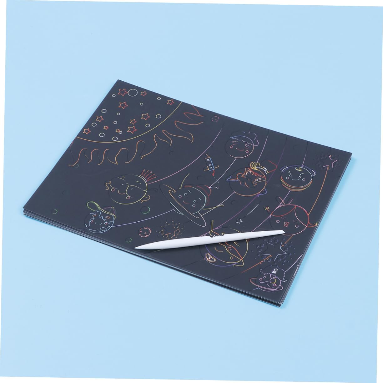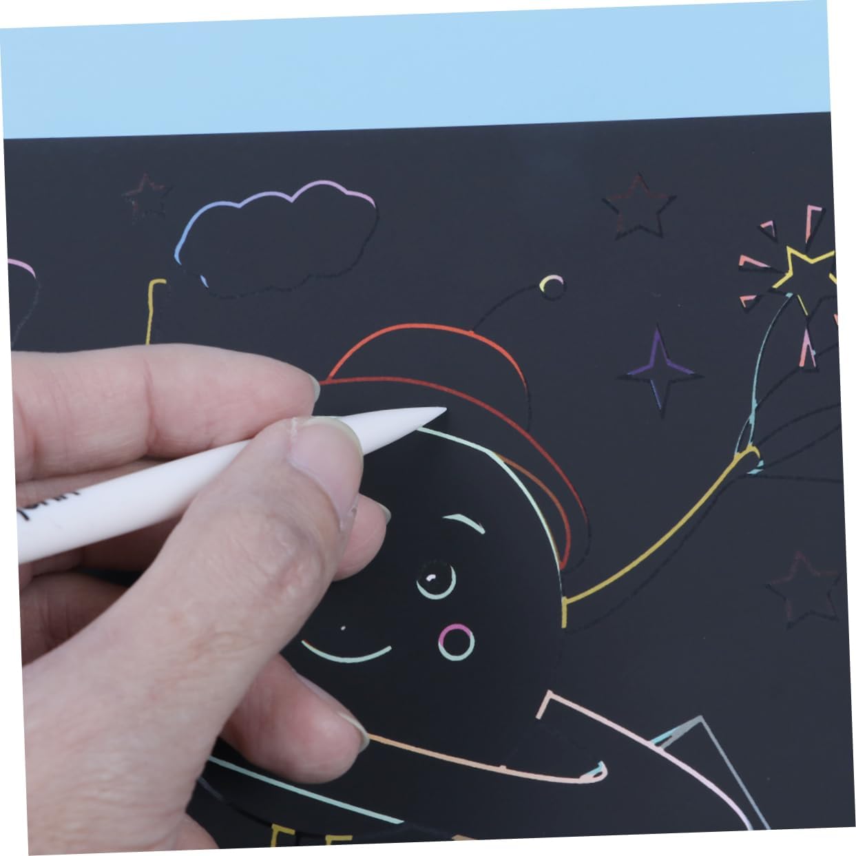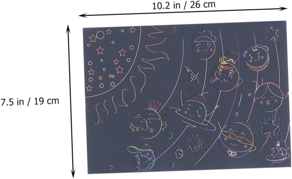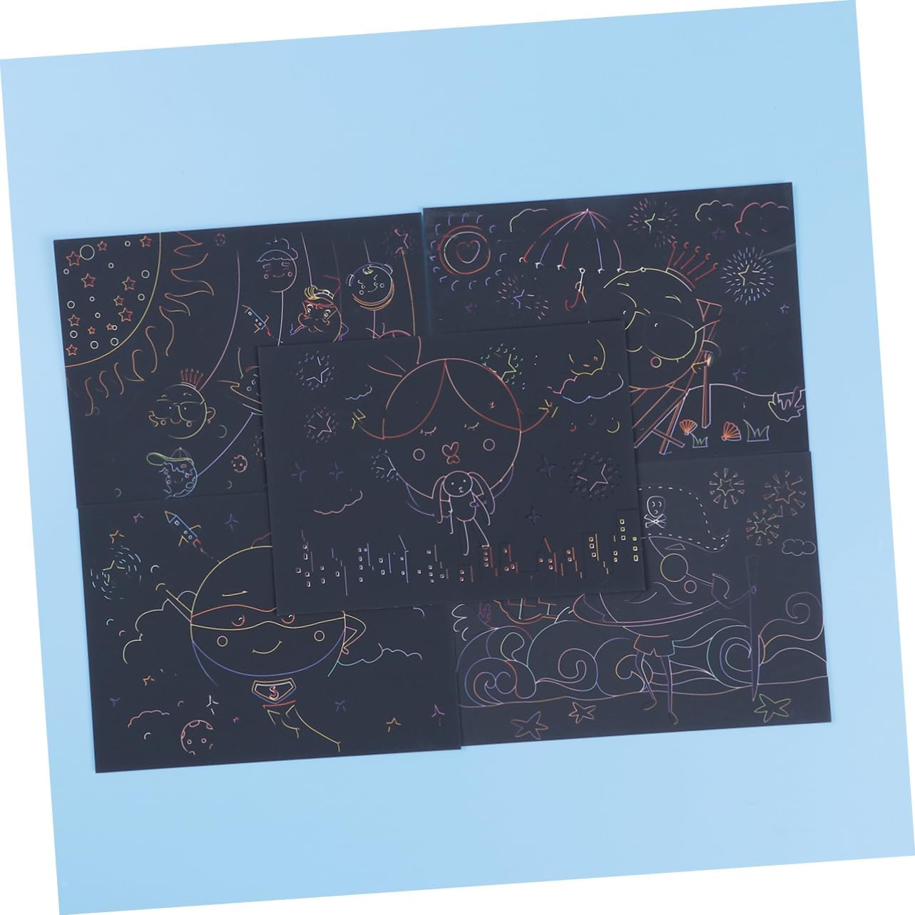 Carta per pittura gratta e vinci: puoi creare la tua cartolina o cornice unica come ornamento. fantastica cartolina creativa e regalo fai-da-te unico per i tuoi amici, interessante e fantasioso. Immagine antigraffio: la superficie della carta arcobaleno antigraffio è nera opaca, che può essere graffiata e dipinta con la penna. Gratta e vinci carta arcobaleno: adatta ai bambini per sviluppare i loro interessi e abilità pittoriche. Gratta e vinci per bambini: la carta è abbastanza spessa, quindi non preoccuparti di romperla graffiandola. Carta antigraffio: la carta antigraffio è un materiale pittorico e unico, che semplifica il processo di verniciatura originale.