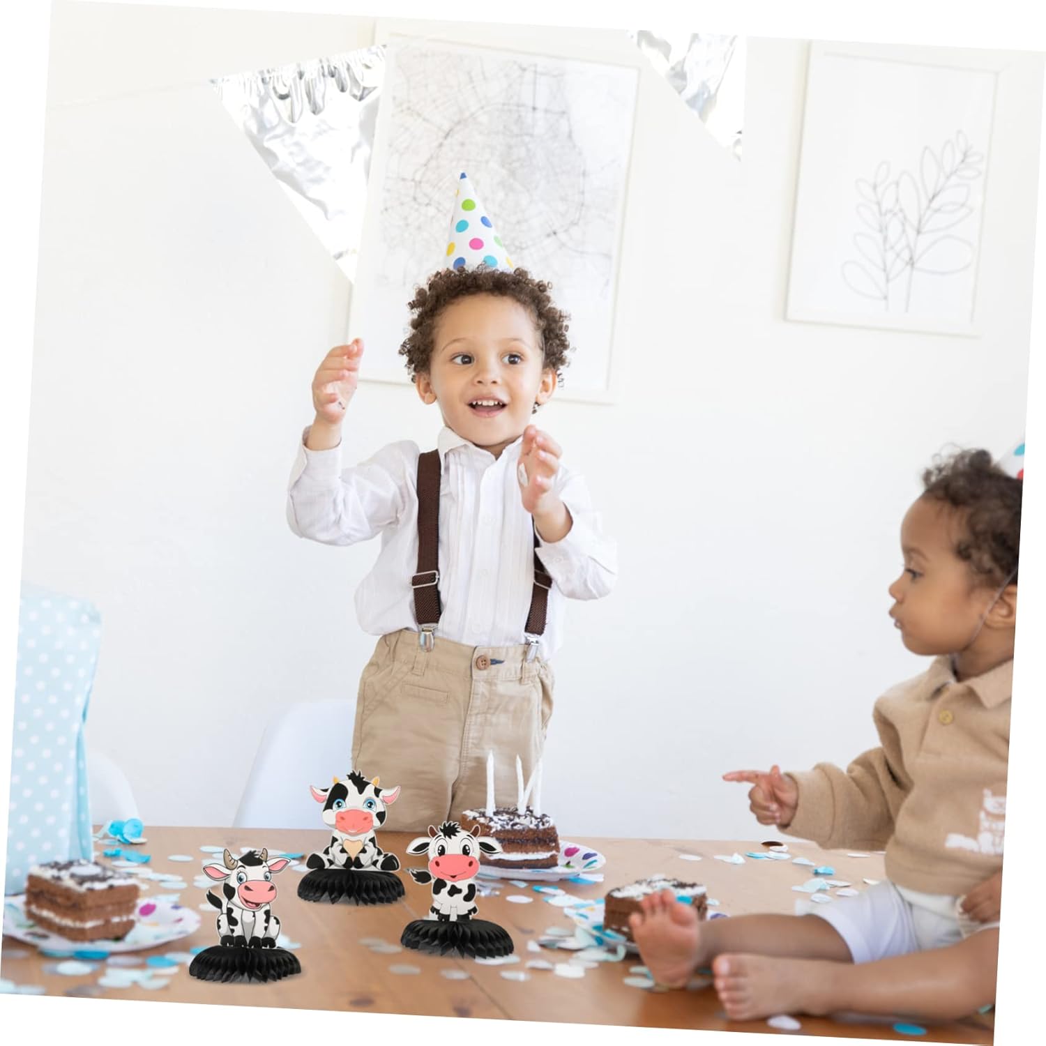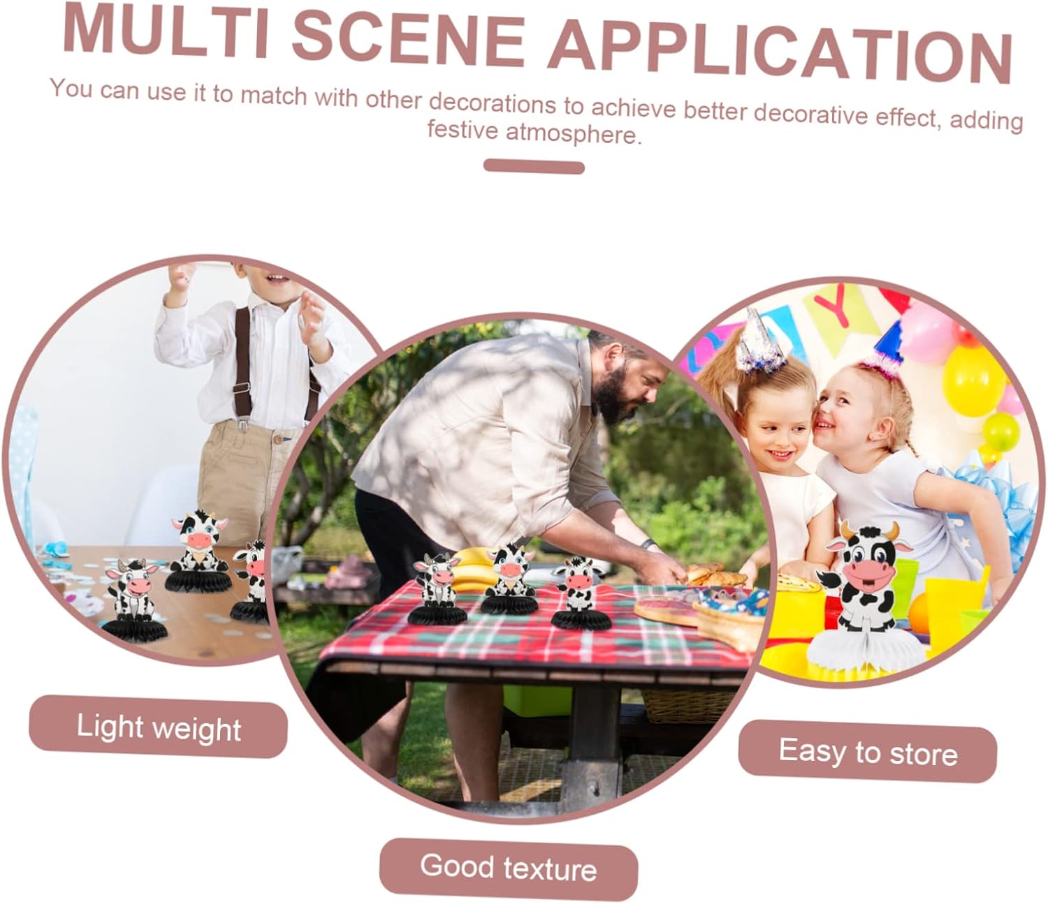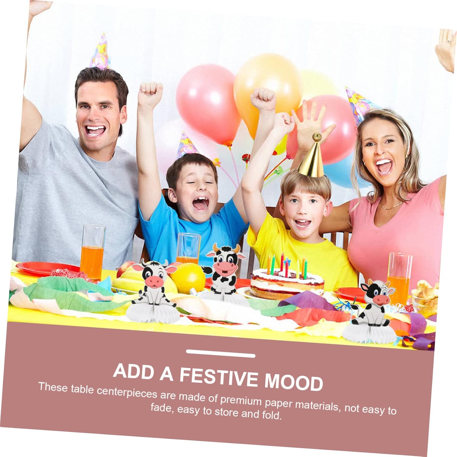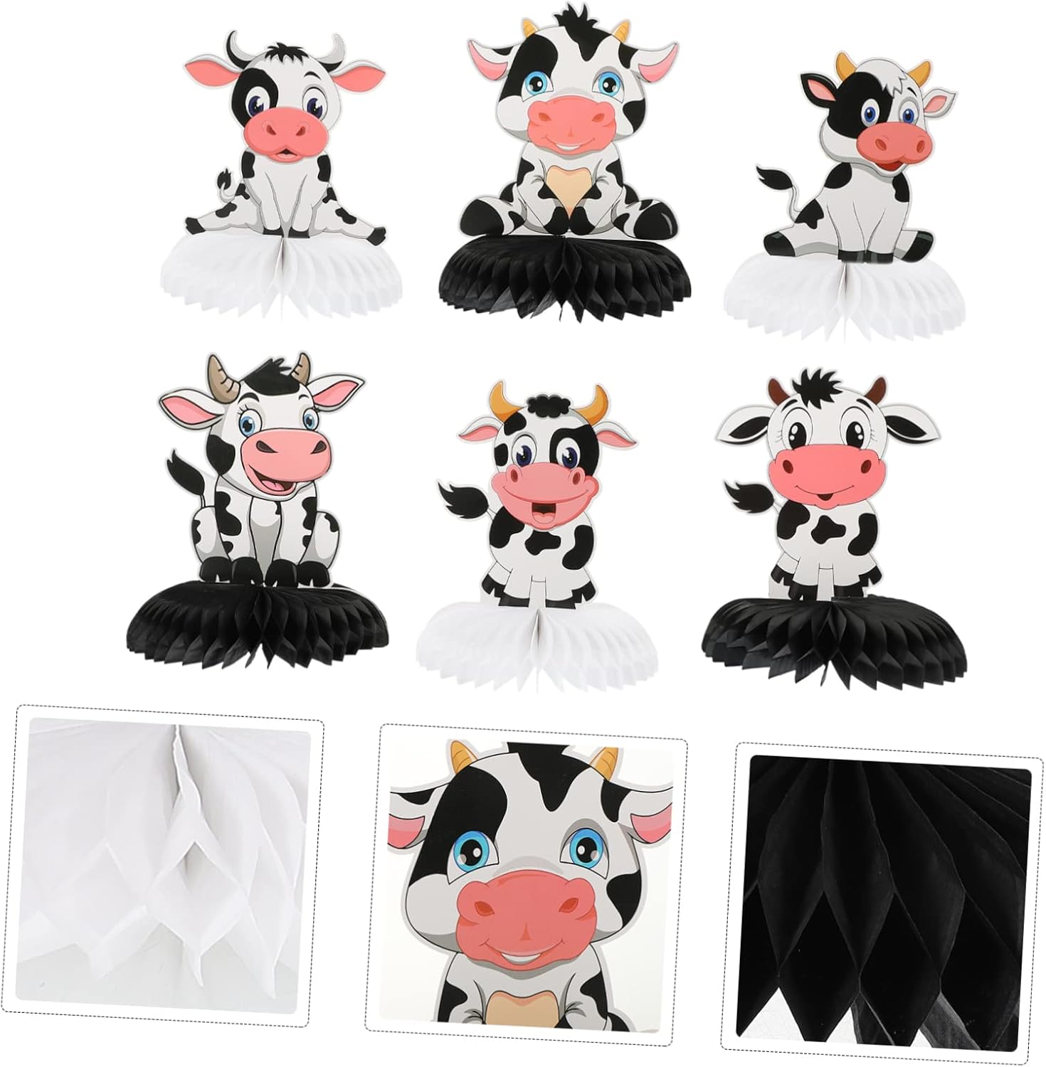 Palloncini di mucca: centrotavola a nido d'ape di compleanno con aspetto a nido d'ape e peso leggero, facile posizionare sul desktop. Topper scrivania: una scelta perfetta per la decorazione della festa di compleanno bambini, e sono anche le tue decorazioni domestiche perfette. Forniture per feste di compleanno in fattoria: questi ornamenti possono essere utilizzati per feste di compleanno per bambini, decorazioni per la casa, decorazioni per centri commerciali e così via. Mucca a nido d'ape: questo adorabile può facilmente attirare l'attenzione della gente, soddisfare le tue esigenze di decorazione. Nido d'ape in carta velina: utilizzando materiali cartacei e ottima fattura, sono sicuri e pratici usare.