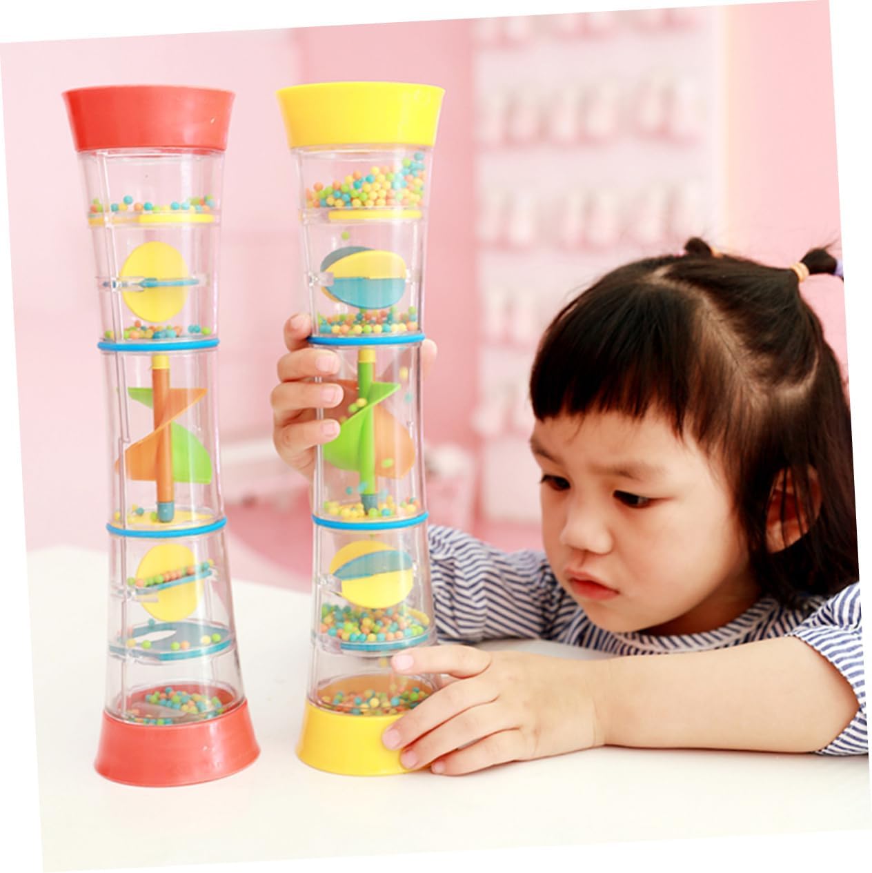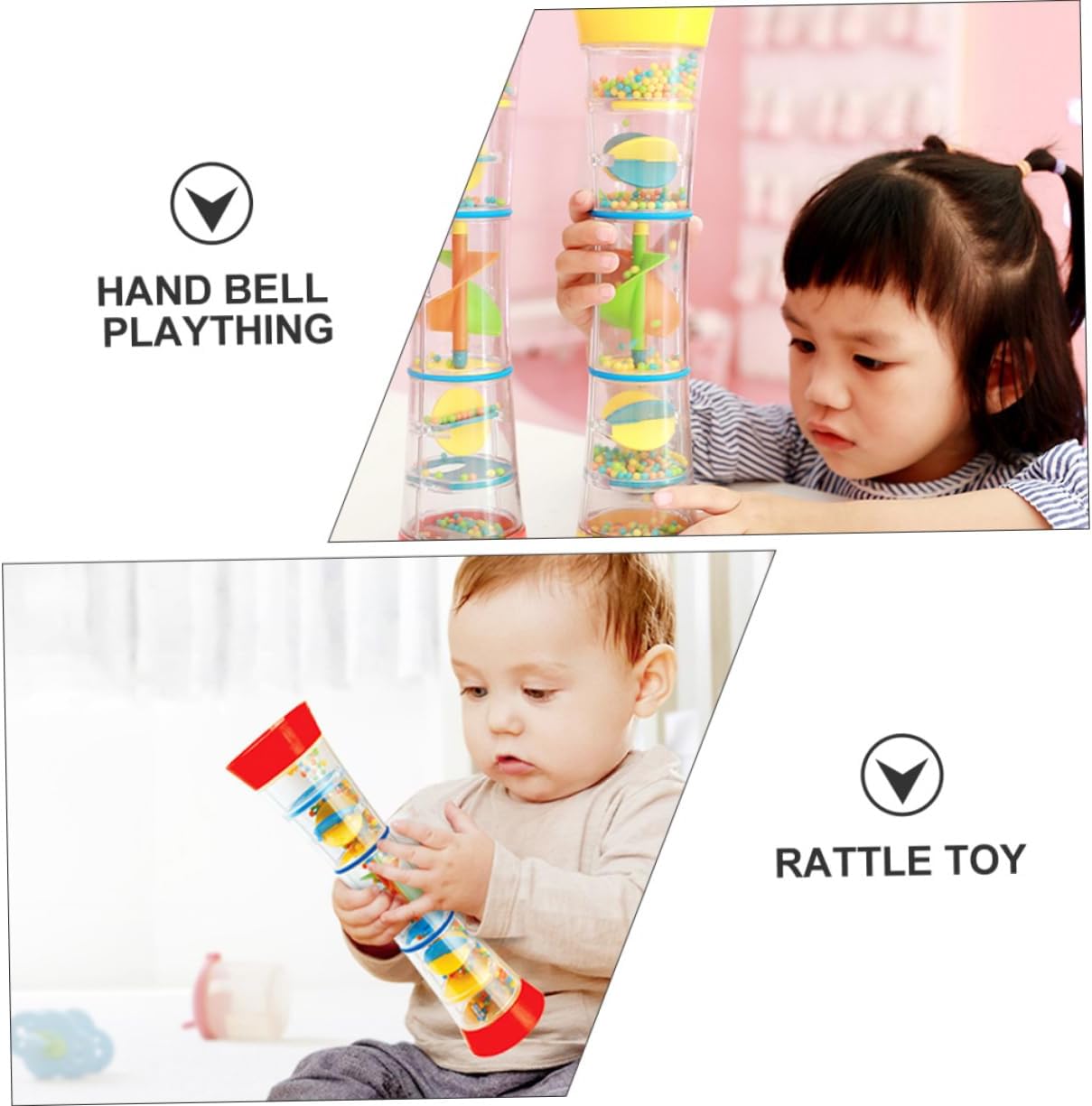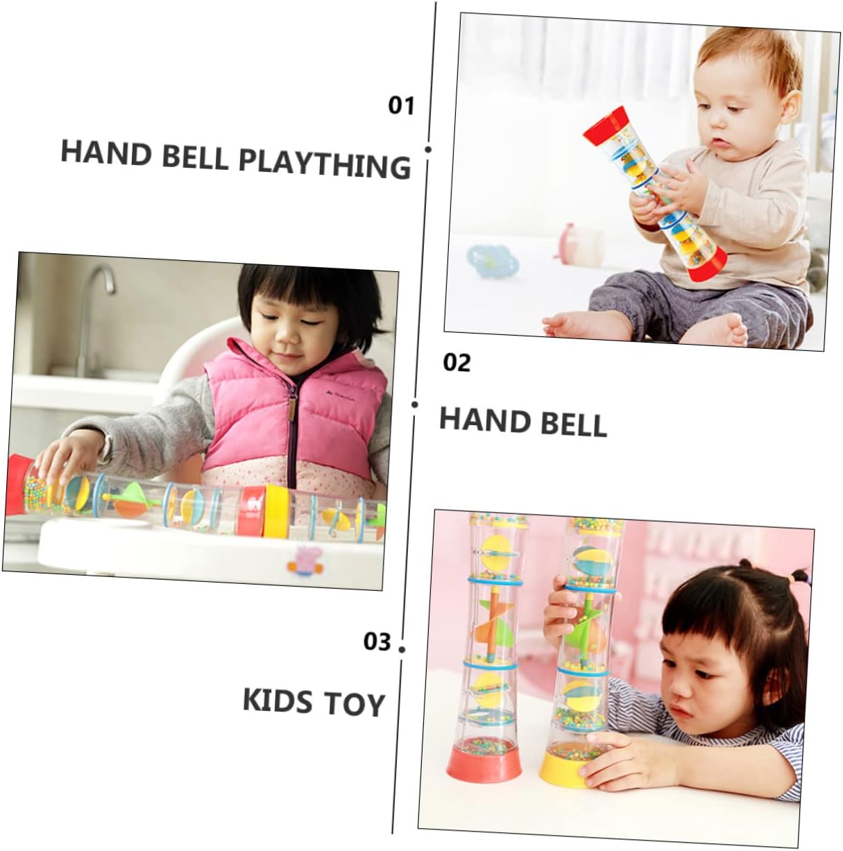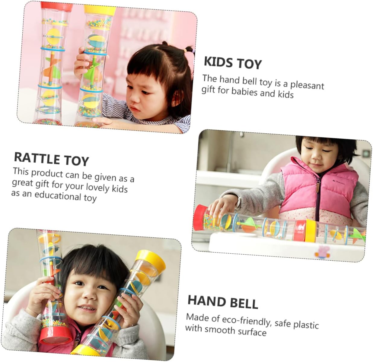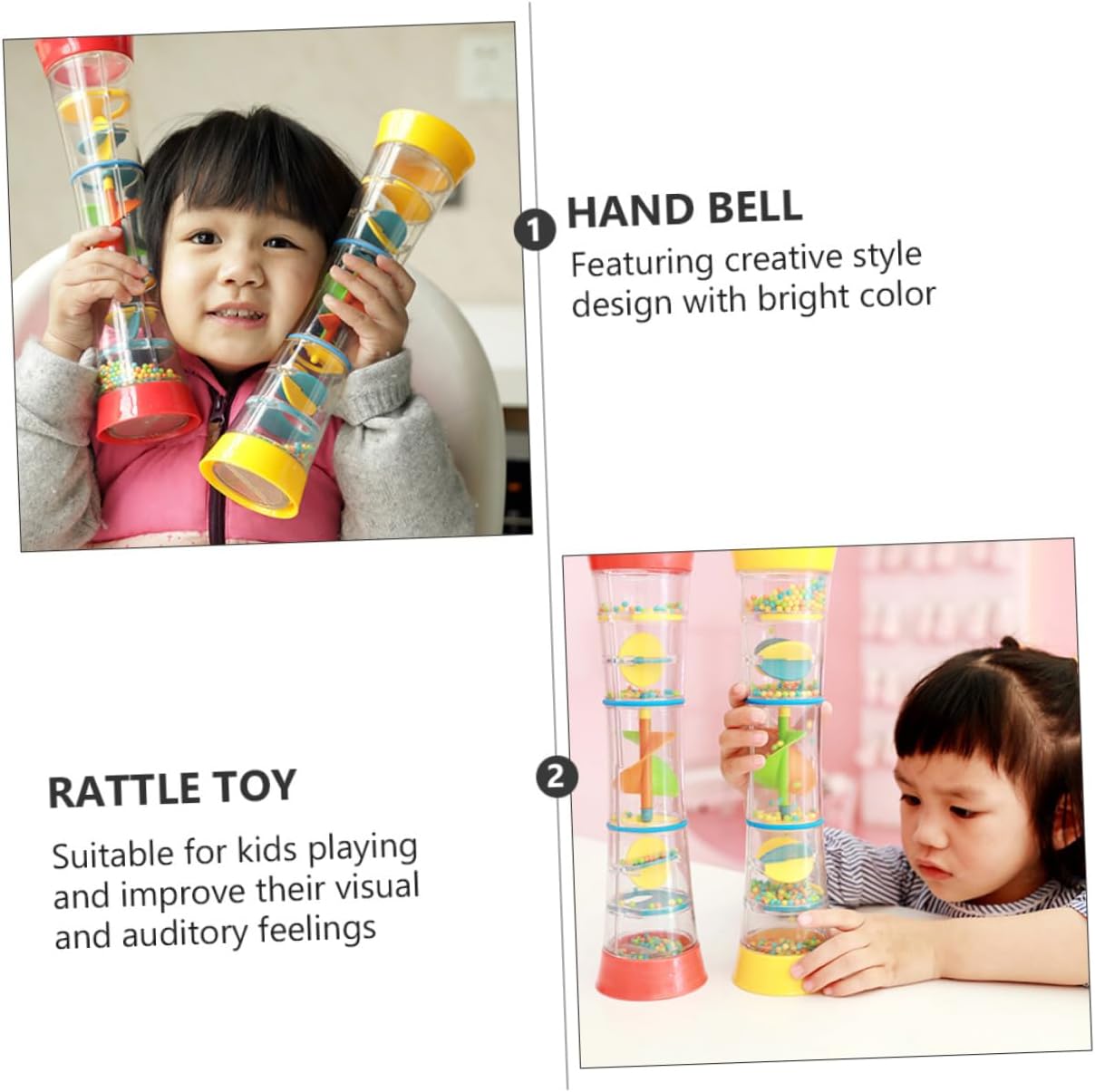 Giocattoli per passeggino: il giocattolo a sonagli è realizzato in materiale plastico naturale e di qualità per un uso duraturo e duraturo. Giocattolo con della pioggia: il giocattolo creativo con varie funzioni può suscitare l'interesse del bambino ed esercitare la capacità di pensiero del bambino. Giocattolo per bambini: può aiutare a incoraggiare il bambino a raggiungere e afferrare, risvegliare la consapevolezza uditiva e migliorare la coordinazione occhio-mano del bambino. Giocattoli jingle bell: sviluppo degli organi di senso del bambino, utili per la comunicazione genitore-figlio. Mano: facile da usare. questi emettono un piacevole quando li scuoti leggermente.