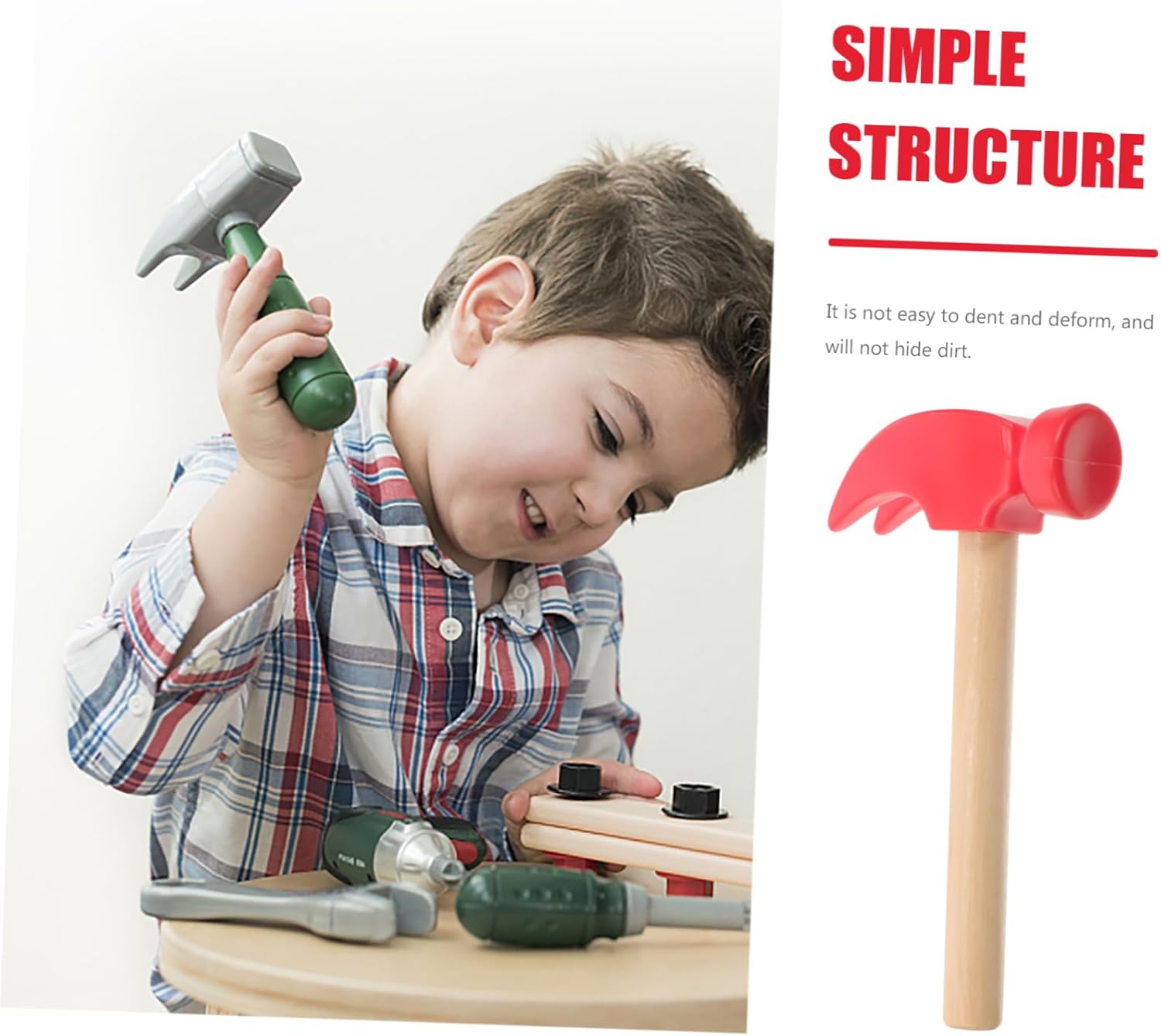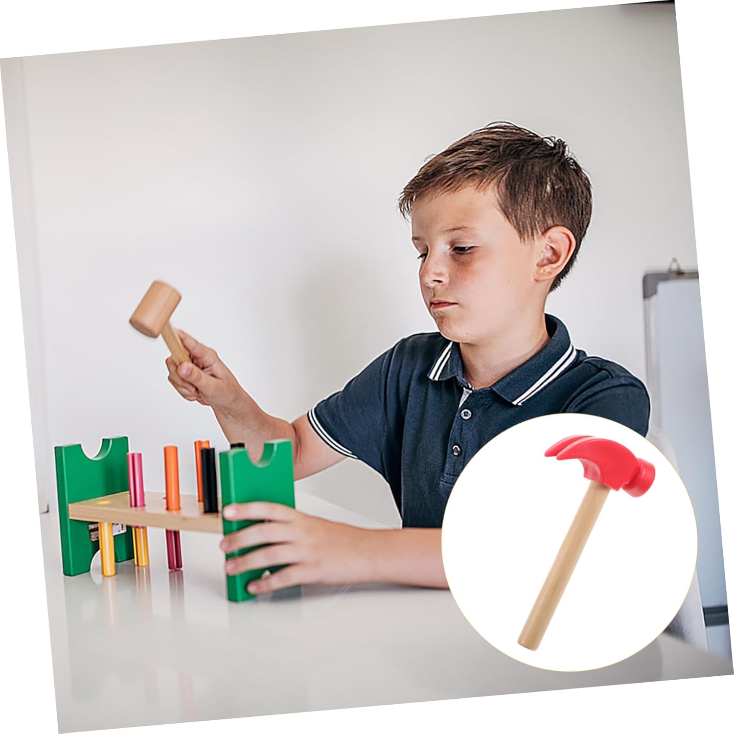 Giocattolo martello per bambini: lavorazione artigianale del legno tradizionale, pregevole fattura, superficie rotonda e liscia, sicuro da usare, giocattolo martello per bambini. Giocattolo martellante: comoda da impugnare, buona resistenza allo scivolamento, nessun infortunio alla mano, giocattoli martellanti Piccolo martello per bambini: questi martelli giocattolo miglioreranno la capacità di presa del tuo bambino, la capacità di coordinazione occhio-mano, la manipolazione, promuovono la destrezza, il movimento delle braccia, martello di legno Martello giocattolo: il piccolo martello di legno ha un design semplice, ma è molto pratico nell'uso, martellando i giocattoli Giocattoli da martellare: realizzati in legno naturale con finitura liscia, solidi, robusti e affidabili, martelli per bambini