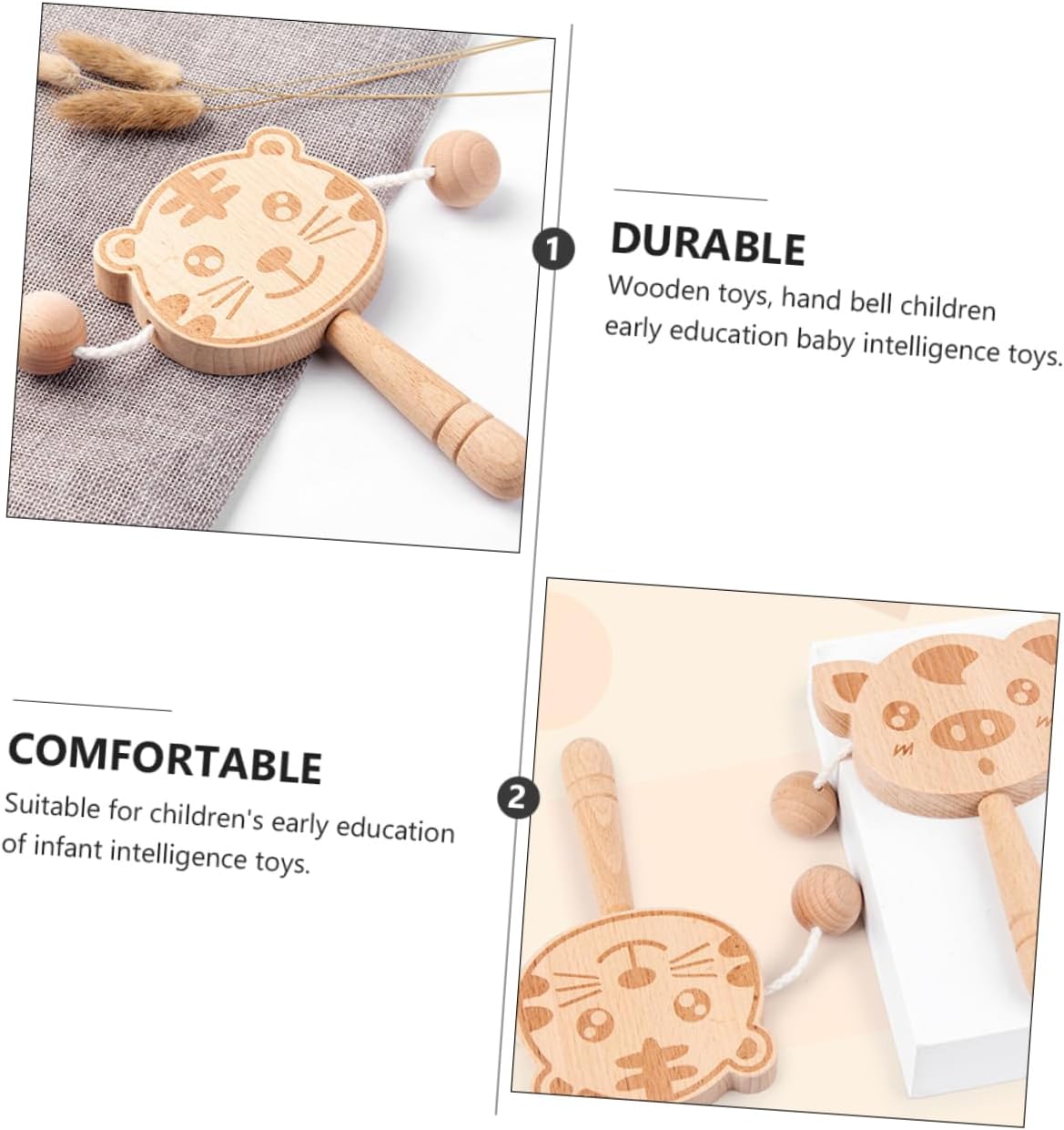 Campanelli a sonagli: adatti per l'educazione precoce dell'intelligenza, strumentali Realizzato in materiale per uso pratico, agitazione Campanello della stretta di mano: muovilo e emetterà suoni tintinnanti, che possono stimolare la capacità di ascolto, tamburo sonaglio Sonaglio:sviluppo degli organi di senso, per la comunicazione con i genitori,adorabile sonaglio Strumento musicale: i saranno interessati al suono e impareranno a dondolarlo da soli, educativo precoce